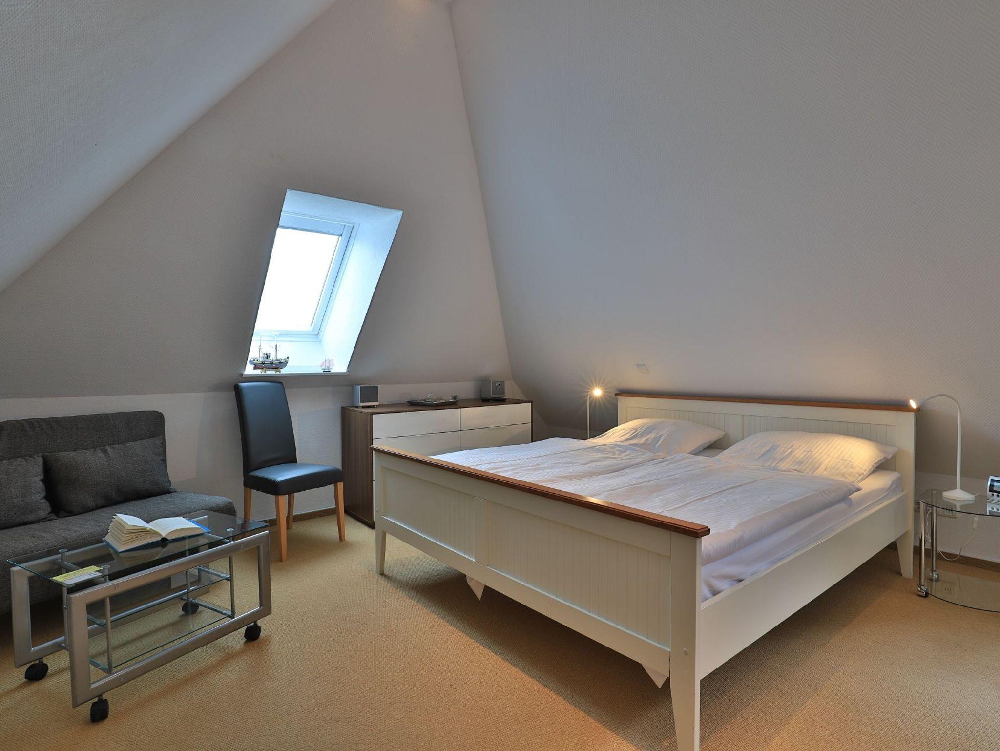 Die einladende ?Ferienwohnung Peter Pan? mit Meerblick, Sauna und Balkon in Süd-/Westlage, überzeugt durch eine komfortable Ausstattung sowie hochwertige Möblierung. Bis zu 5 Personen verbringen auf einer großzügigen Wohnfläche von 80 qm eine entspannte Auszeit. Die Maisonettewohnung bietet in der 1. Wohnebene ein, im gehobenen Stil, eingerichtetes Wohnzimmer mit TV- DVD Gerät und Musikanlage, eine offene Küchenzeile mit Geschirrspüler, Ceranfeld ? Herd mit Backofen, Mikrowelle, Kaffeemaschine und weitere Küchendetails. Der Internetzugang über Wlan ist kostenfrei. Ebenso sind ein Schlafzimmer mit Doppelbett und Fernseher sowie 1 Duschbad, Sauna, Waschmaschine und Abstellraum in der 1. Ebene. In das ausgebaute Dachgeschoss gelangt man über eine Raumspartreppe. Hier befindet sich das 2. Schlafzimmer mit Doppelbett und zusätzlicher Schlafcouch sowie einem 3. Fernsehgerät. Zusätzlich ist in dieser 2. Wohnebene ein Wannenbad vorhanden. Gäste mit Hund sind in der Ferienwohnung herzlich willkommen. Ein kostenfreier PKW Stellplatz befindet sich am Haus.