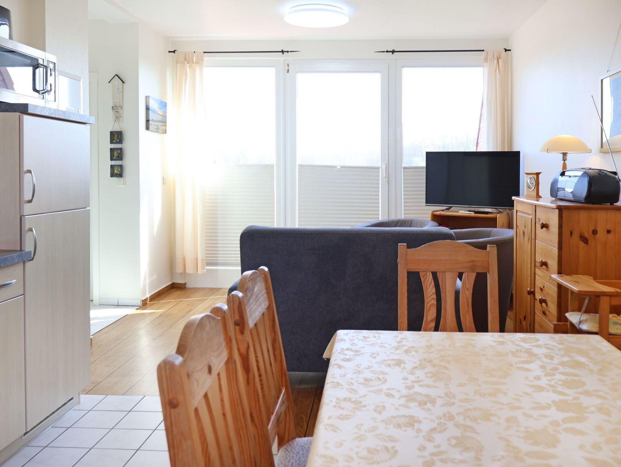 Die familienfreundliche Ferienwohnung -Zollhaus 4- mit Balkon, befindet sich im 1. Obergeschoss des Hauses. Die Wohnfläche umfasst 57 qm. Der gemütliche Wohn- und Essbereich mit behaglicher Einrichtung wie Sofa, Sessel und Esstisch, zu der selbstverständlich auch ein Fernseher, kostenfreies WLAN und Radio gehören, lädt zum Wohlfühlen ein. Die in den Wohnraum integrierte Küchenzeile ist komplett ausgestattetet mit Herd, Backofen, Mikrowelle, Kaffeemaschine, Toaster, Wasserkocher sowie Kochgeschirr und Besteck. Zwei separate Schlafzimmer- 1x Doppelbett und 1x zwei Einzelbetten- bieten entspannte Nächte für bis zu 4 Personen. In zwei Kleiderschränken können Sie Ihre Urlaubsgarderobe unterbringen. In dem attraktiven Ferienappartement befindet sich auch ein Duschbad, in dem die Nutzung einer Waschmaschine kostenfrei möglich ist. Ebenso steht Ihnen am Haus ein PKW- Stellplatz kostenfrei zur Verfügung. Bitte beachten Sie, dass im -Alten Zollhaus in der Wohnung 4- nicht geraucht werden darf und Haustiere nicht gestattet sind.