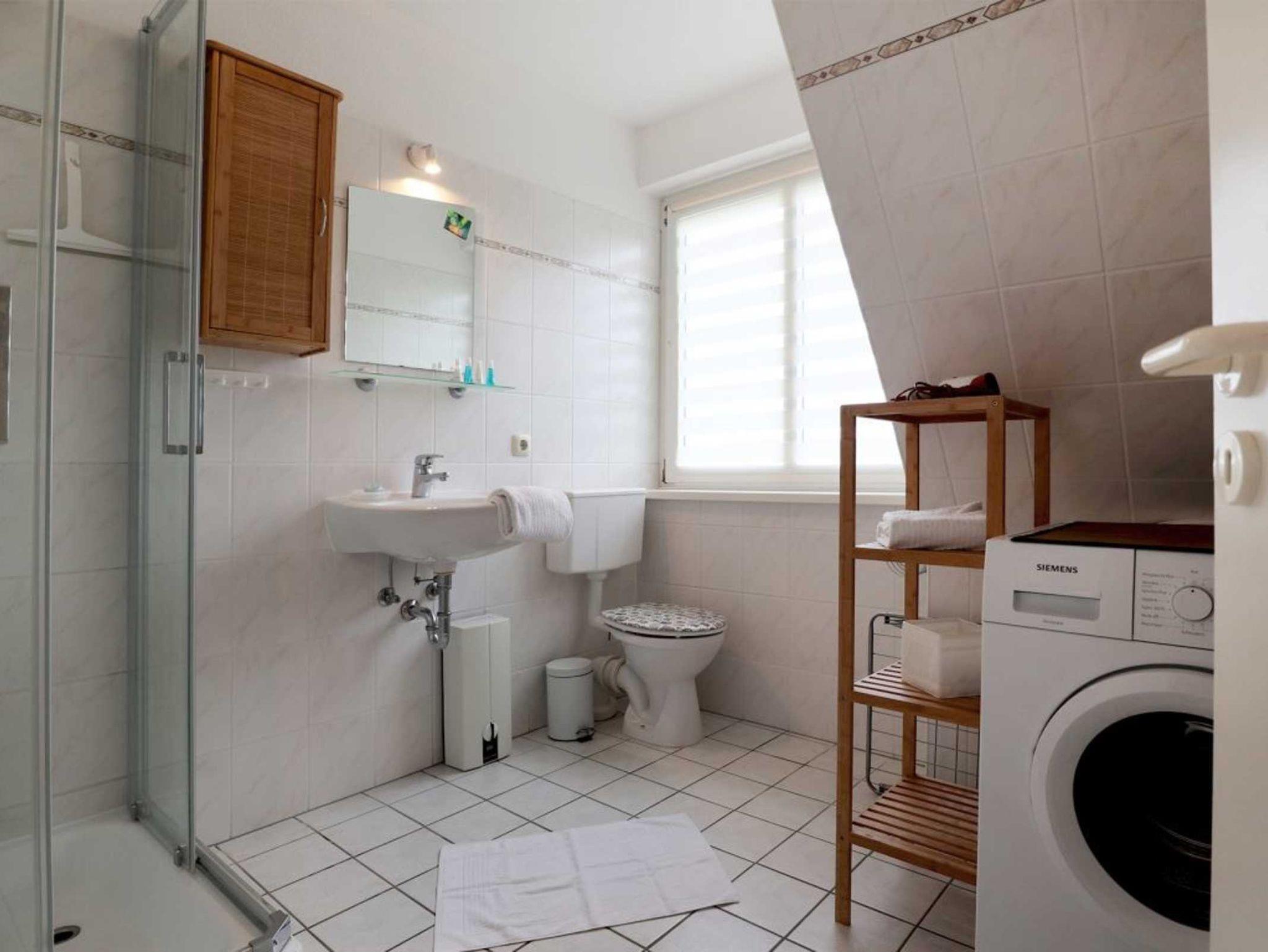 Zwei separate Schlafzimmer (1x mit Doppelbett und Kleiderschrank, 1x mit Etagenbett- kein Kleiderschrank) ermöglichen entspannte Nächte. Für die kleinen Gäste stehen ein Hochstuhl bereit. Zugehörig ist ein hell gefliestes Duschbad mit Tageslicht. Eine Waschmaschine ist hier kostenlos nutzbar. Ihren PKW können Sie kostenfrei direkt neben dem Haus parken. Wir empfehlen die Belegung mit maximal 4 Personen davon 2 Kinder.