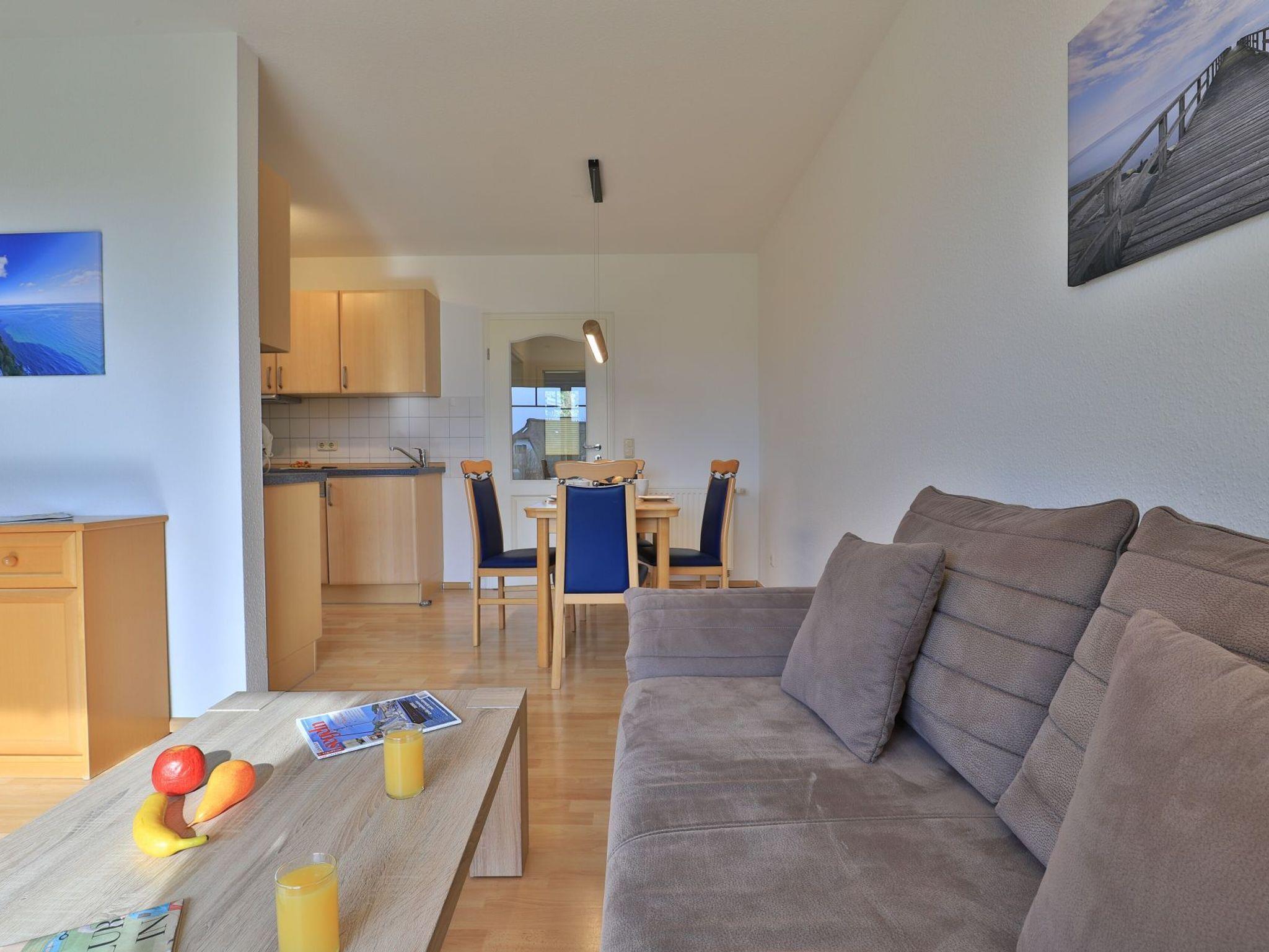 Herzlich Willkommen in der modernen 3-Zimmer Ferienwohnung ?Barendorf Meyer 1? mit großzügiger Terrasse in Süd/-Westlage. Mit bis zu 4 Personen können Sie hier auf einer Wohnfläche von 60qm erholsame Ferien in kristallklarer Ostseeluft verbringen. Mit seinen 2 separaten Schlafzimmern -1x Doppelbett, 1x zwei Einzelbetten, Kleiderschränke- bietet das Apartment zudem gute Rückzugmöglichkeiten. Große Fenster lassen viel Tageslicht in das freundliche Feriendomizil, das zum Wohlfühlen mit einer bequemen Couch, Flat-TV und Radio mit CD im Wohn/-Essbereich einlädt. Am separaten Esstisch genießt man gerne das Beisammen sein in geselliger Runde. Gut ausgestattet ist zudem die komplette Küche, die sich in den Wohnbereich integriert. Hier stehen Geschirrspüler, Kühlschrank, Ceranfeld Herd mit Backofen, Kaffeemaschine, Toaster ebenso bereit, wie ausreichend Geschirr, Töpfe usw. In dem geräumigen, hell gefliesten Tageslichtbad mit Dusche beginnt der Morgen stets gut gelaunt. Zum familienfreundlichen Angebot gehören auch ein Kinderhochstuhl sowie ein Bollerwagen mit dem unsere kleinsten Gäste bequem zum nur 700 Meter nahen Strand gelangen. Kostenfrei steht ein PKW Stellplatz am Haus 13 zur Verfügung.