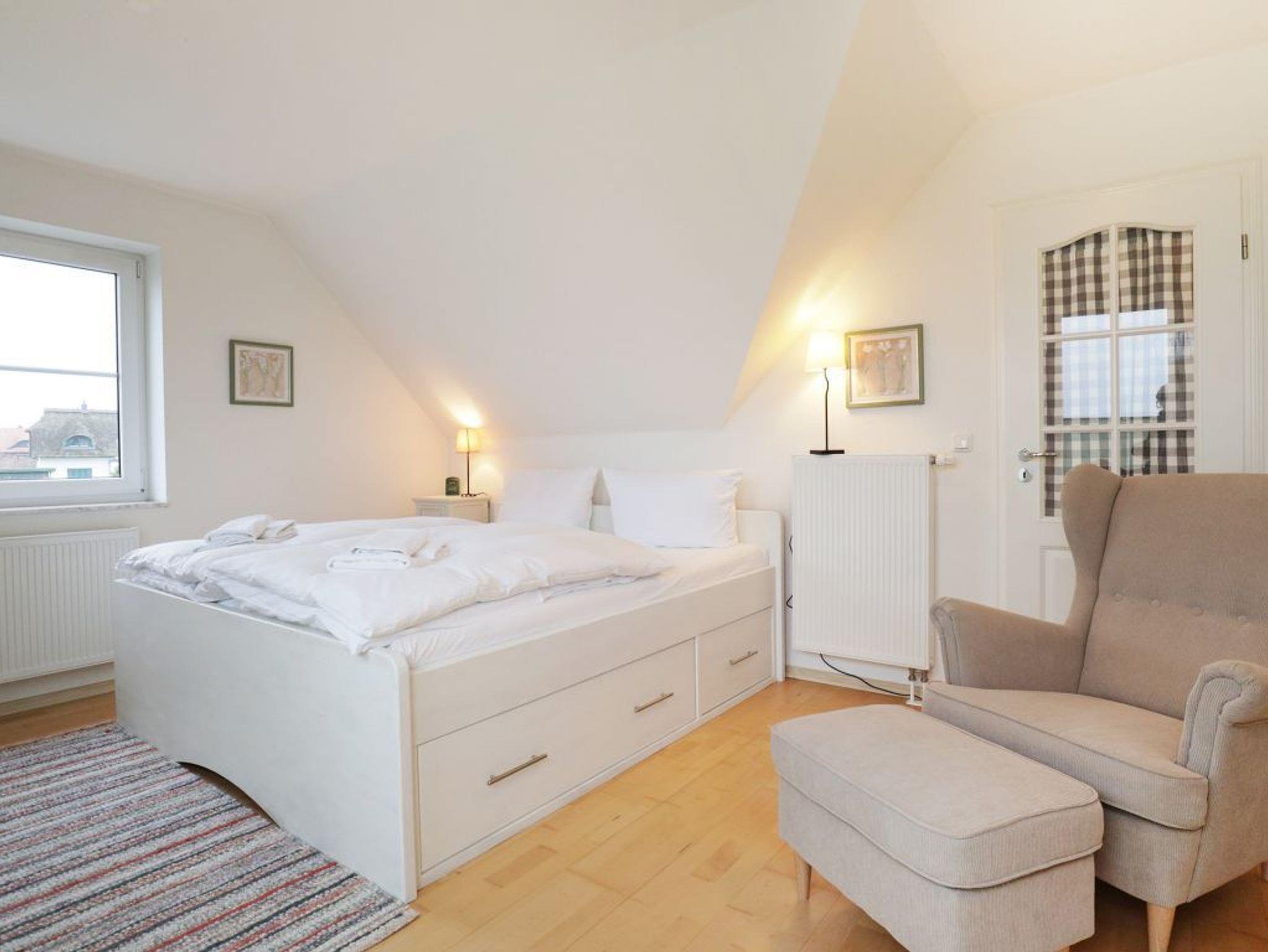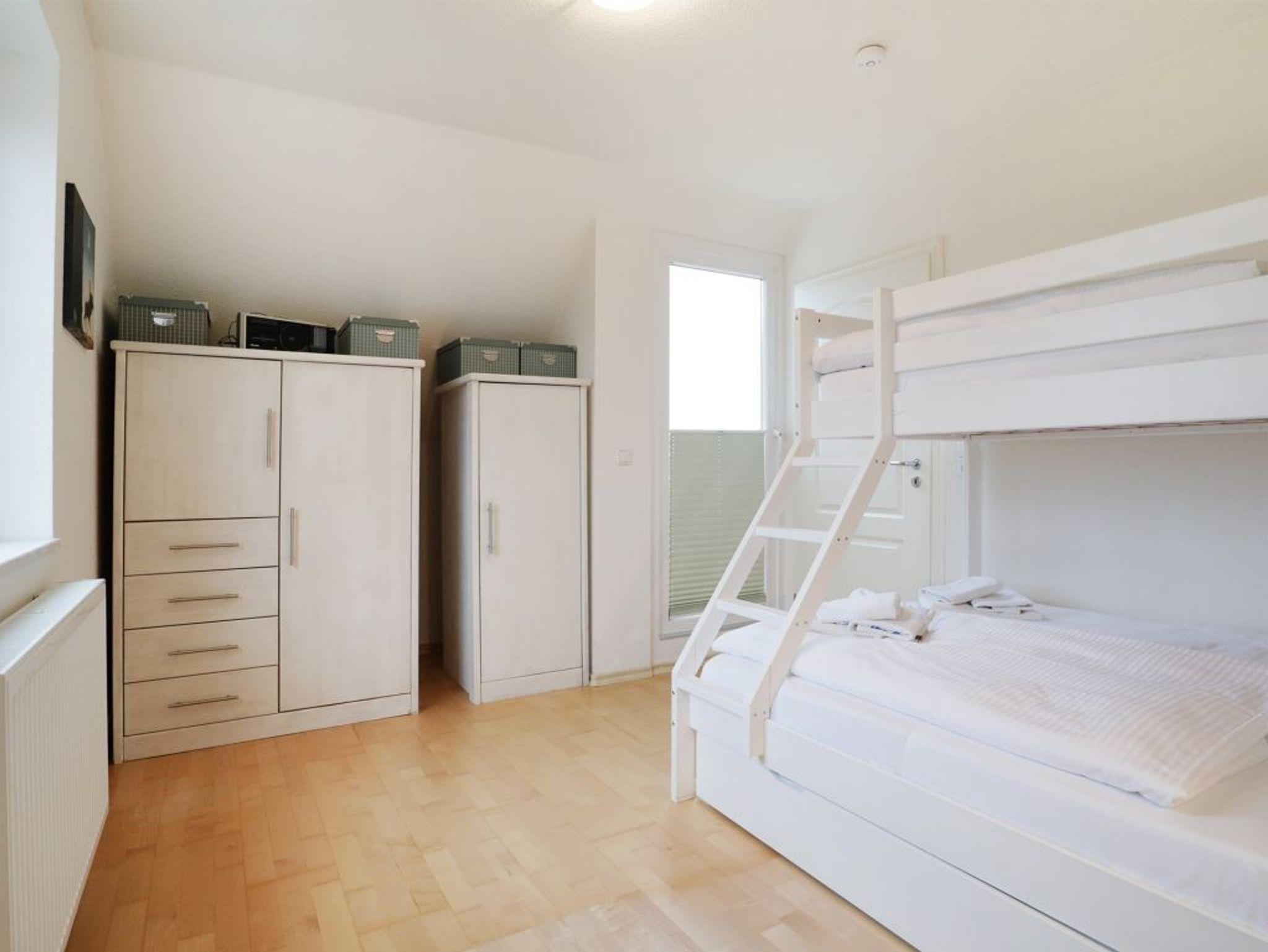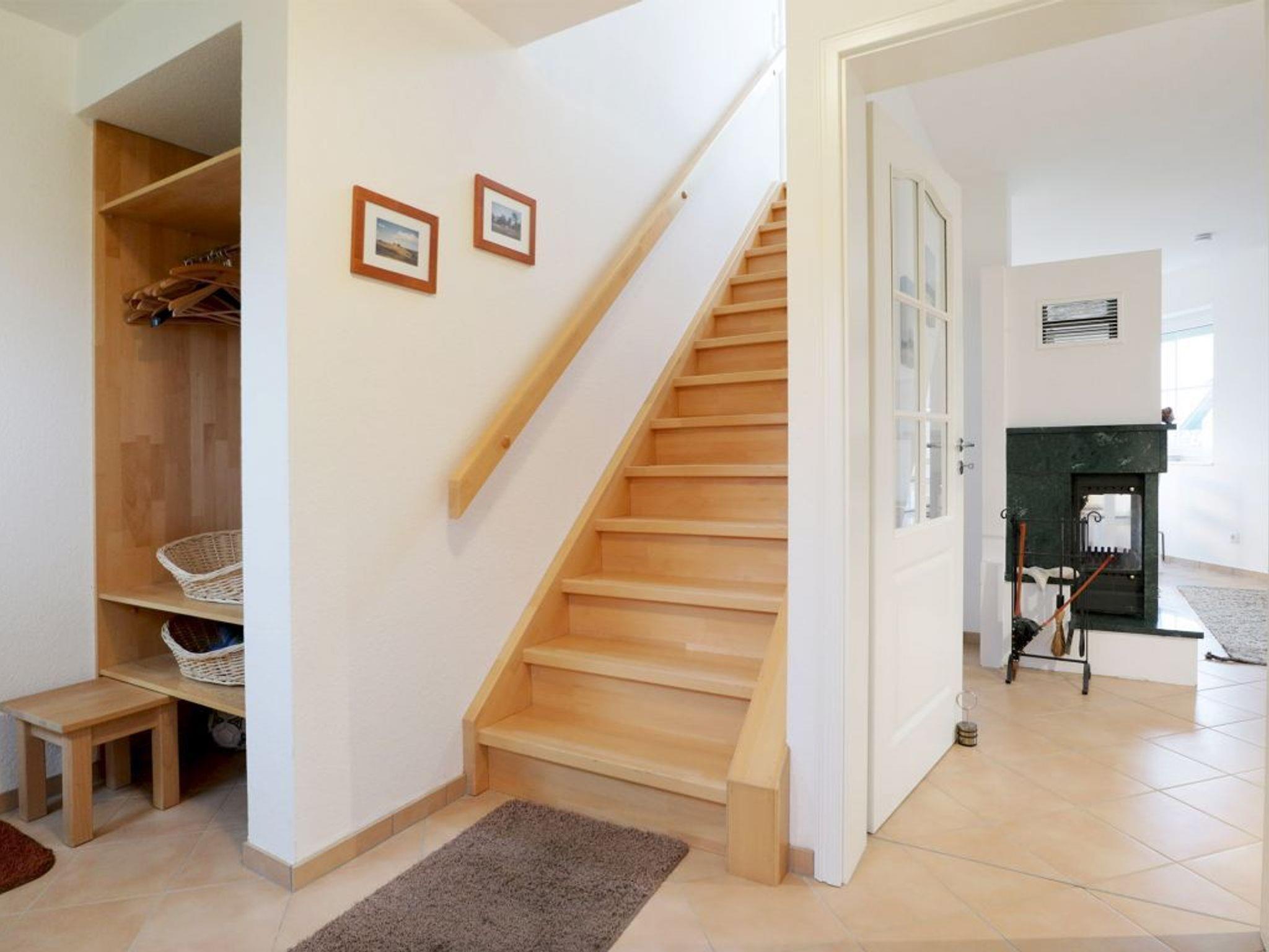 WLAN nutzen Sie kostenfrei. Die integrierte Küchenzeile ist sehr gut ausgestattet mit Geschirrspüler, Herd mit Backofen, Kühlschrank mit kleinem Gefrierfach, Kaffeemaschine, Wasserkocher usw. Auch eine Musikanlage, Fernsehgerät, sowie ein weiteres TV-Gerät in einem der Schlafzimmer sind vorhanden. Die sich im Obergeschoss befindenden Schlafbereiche sind zum einen mit einem Doppelbett und des Weiteren mit einem Etagenbett eingerichtet. Zudem besitzt das Obergeschoss ein sehr großzügiges Tageslicht Vollbad.