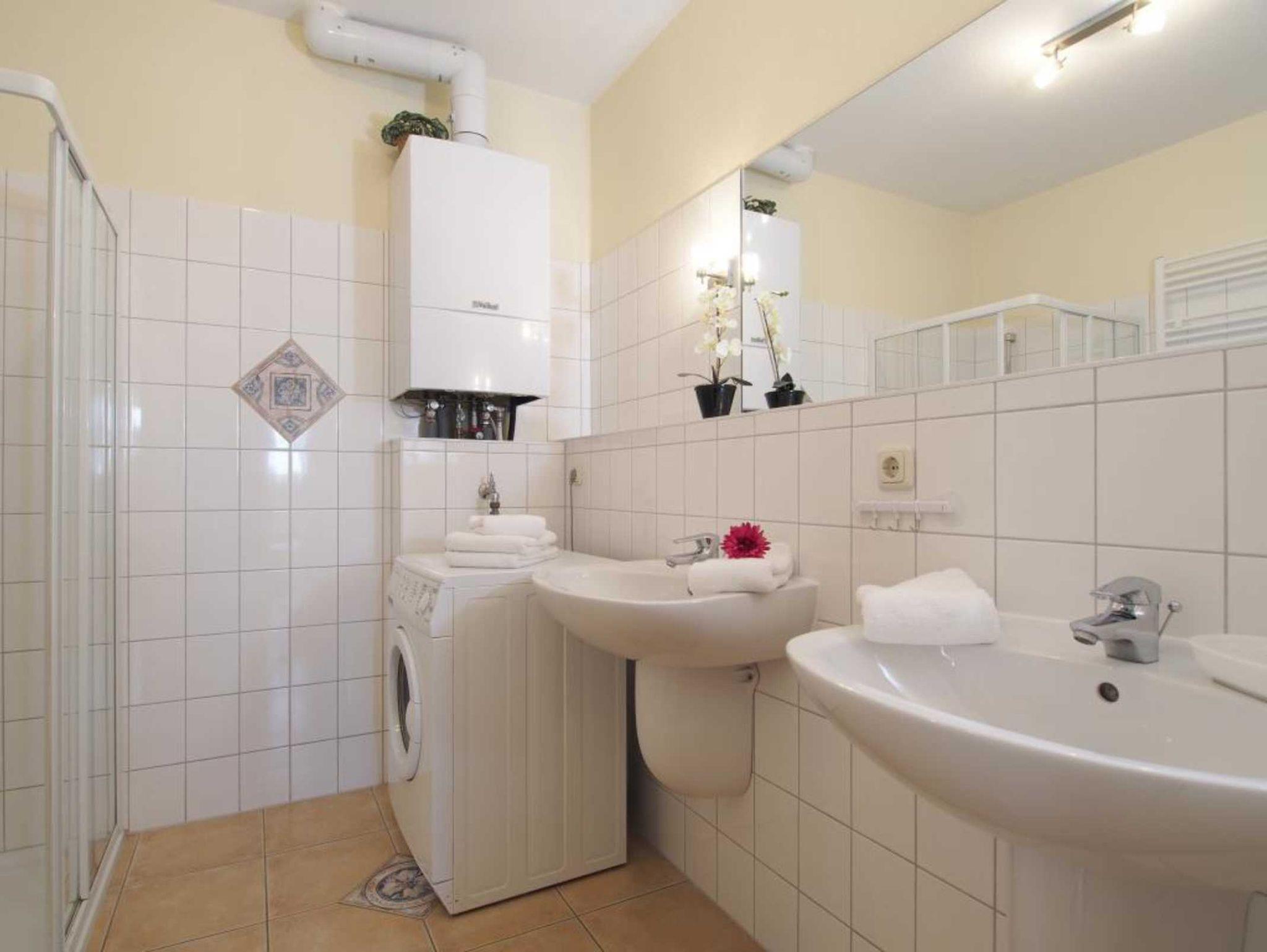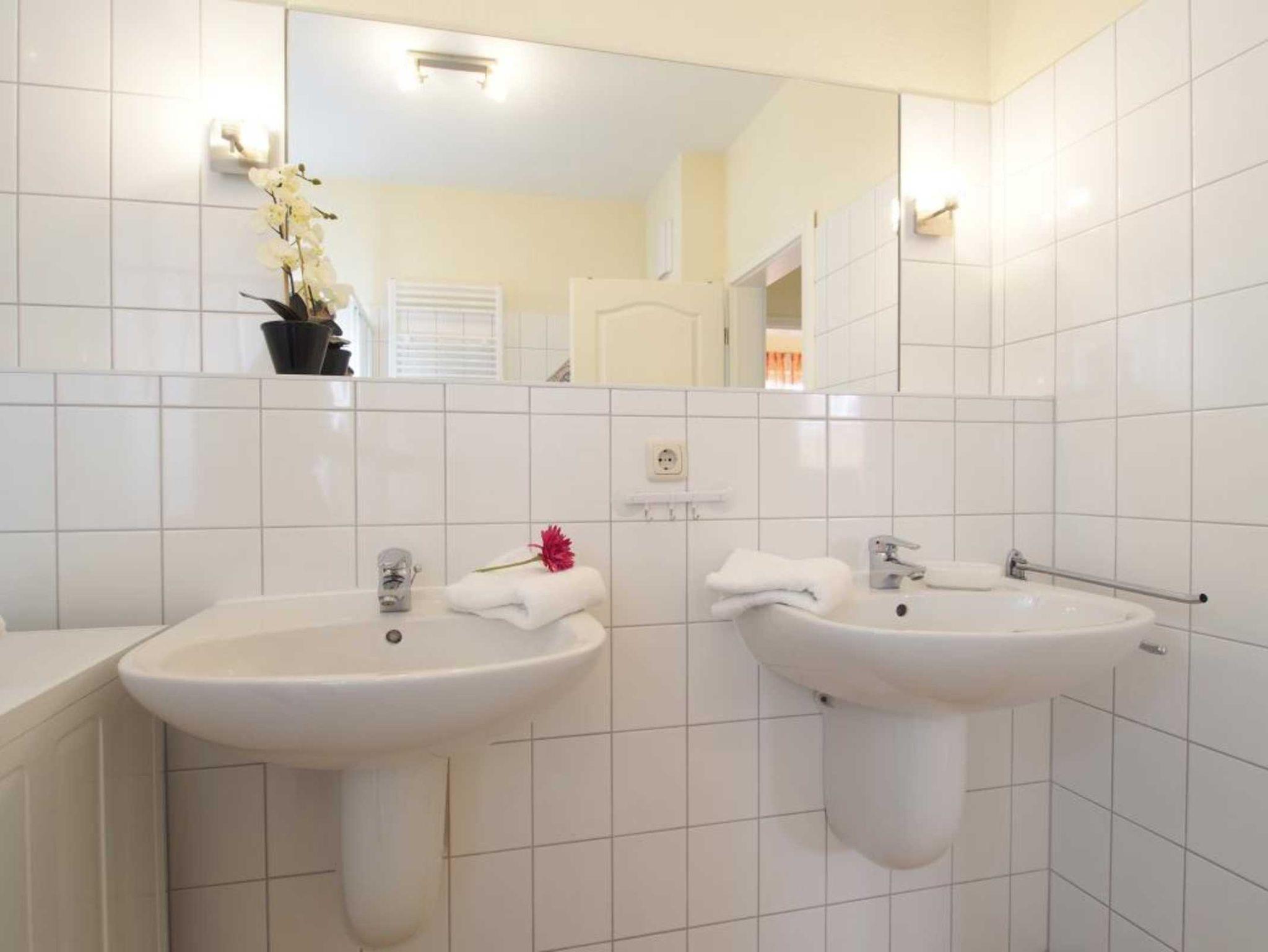 Das großzügige Duschbad ist hell gefliest und mit zwei Waschtischen, Dusche, WC sowie Waschmaschine ausgestattet. Für kleine Kinder stehen Kinderreisebett und Hochstuhl in dem Feriendomizil bereit. Bitte beachten sie, dass es sich hier um eine Nichtraucher Wohnung handelt. Ein PKW Stellplatz wie auch Fahrradabstellmöglichkeiten befinden sich am Haus.