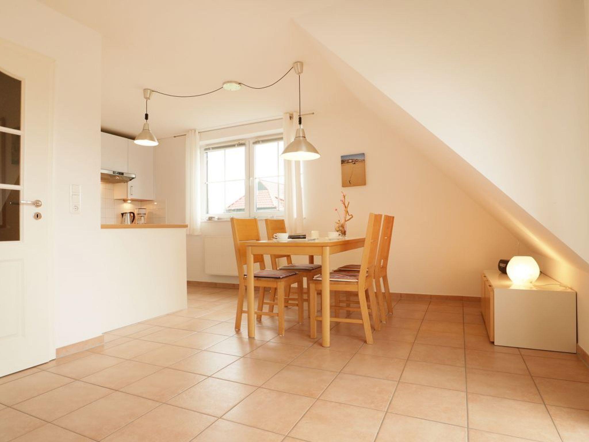 Das 3 -Zimmer - Ferienappartement erstreckt sich über zwei Ebenen. Die komfortable Ausstattung für vier Personen empfängt Sie mit einem hellen Wohnbereich mit Essecke und offener Küchenzeile (Kühlschrank, Mikrowelle, Geschirrspüler, Toaster, Kaffeemaschine uvm.).