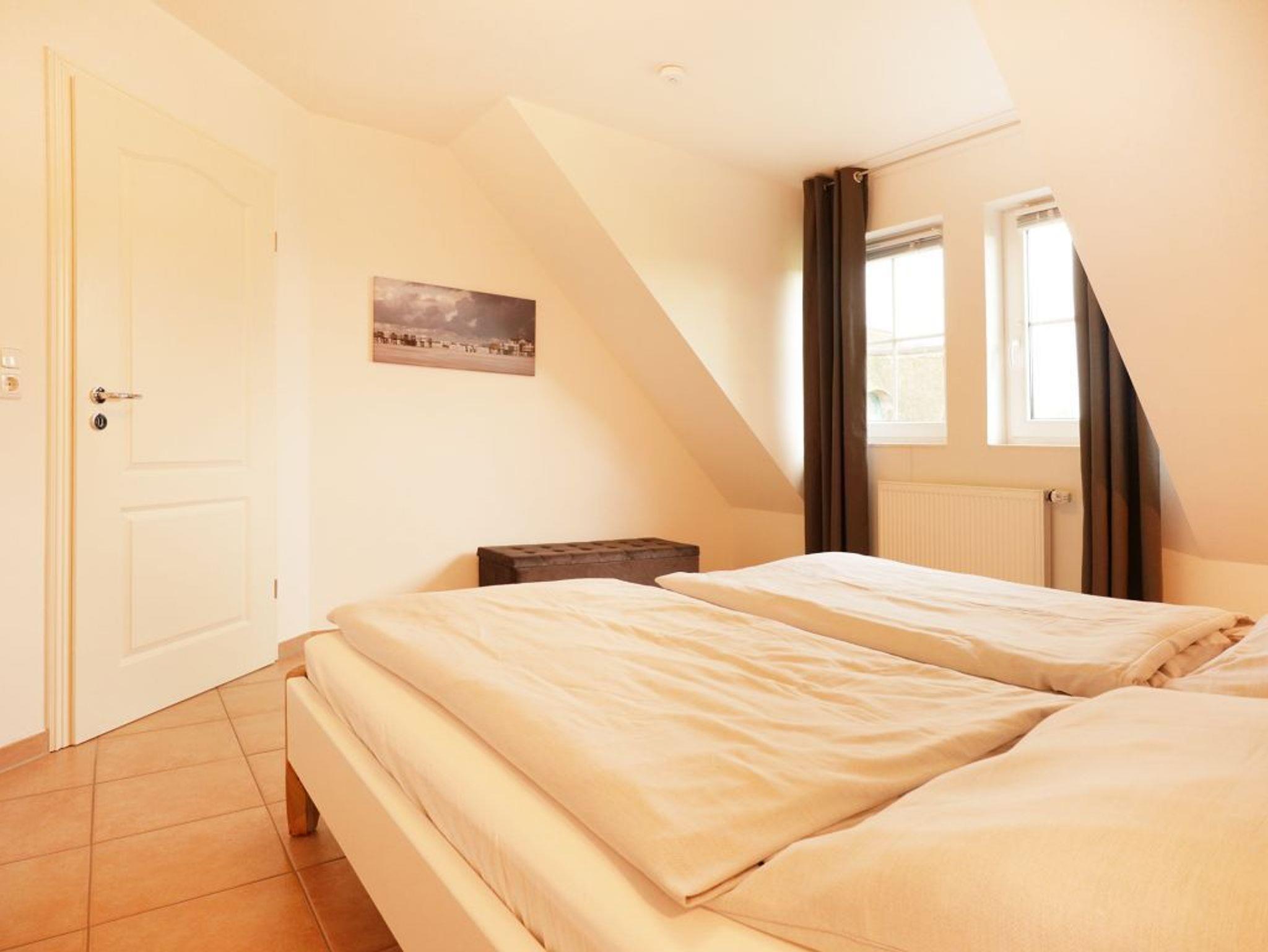 Wohnebene. Über eine Wendeltreppe erreichen Sie das zweite Schlafzimmer in welchem sich zwei Einzelbetten sowie zwei gemütliche Sitzsäcke befinden. Im Duschbad der Wohnung befindet sich auch eine Waschmaschine. Vom Balkon haben Sie einen