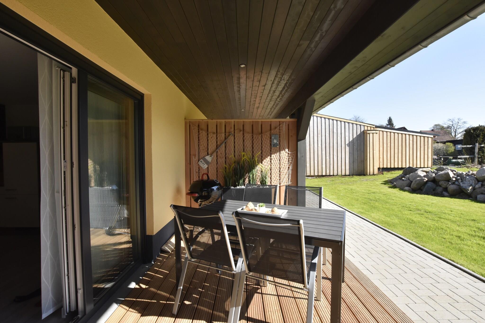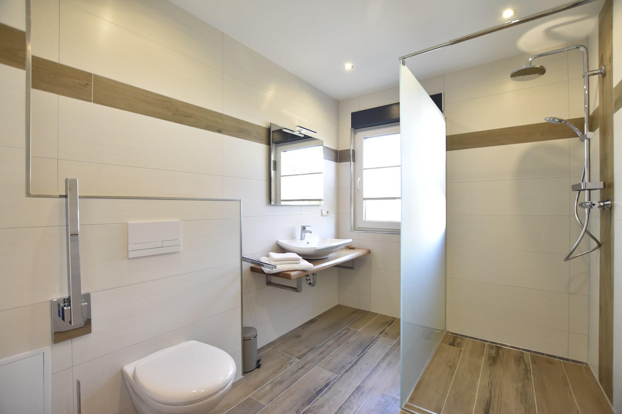 2019 neu gebautes, ebenerdiges und barrierefreies Ferienhaus nur wenige Fahrminuten von der Ostsee entfernt. Es erwartet Sie ein modernes und gemütliches 5-Raum-Ferienhaus, aufgeteilt in 2 Haushälften. Perfektes Urlaubsziel für Gruppen oder 2 Familien, die Ihren Urlaub an der Ostsee zusammen verbringen möchten. Beide Einheiten besitzen einen Kamin, eine offene und voll ausgestattete Küche sowie Terrasse mit Strandkorb und einen großen Garten. Das Haus verfügt über 3 Schlafzimmer mit 2 Doppelbetten und einem Etagenbett. Die Badezimmer verfügen jeweils über eine ebenerdige Dusche sowie eine Halterung an der Toilette. Durch die extra breiten Türen und die großzügige Bauweise ist das Haus perfekt für Menschen mit Behinderung geeignet. Es steht ein Waschraum mit Waschmaschine zur Verfügung. Im Garten finden Sie einen abschließbaren Fahrradabstellraum. Für die kleinen Gäste stehen 2 Babybetten sowie 2 Hochstühle bereit. Neben dem Haus gibt es einen öffentlichen Spielplatz. Lage: Ruhige und dennoch zentrale Lage, am Stadtrand der Hansestadt Wismar. Ruhe und Natur finden hier alle Gäste, die dem Trubel des Alltags entfliehen wollen. Mit dem Auto sind es ca. 5 Minuten zum Hafen und zur Hansestadt Wismar. Der Strand, verschiedene Einkaufsmöglichkeiten usw. lassen sich in wenigen Minuten über die Rad- und Wanderwege erreichen. Das Freizeitbad "Wonnemar" ist eine ausgezeichnete Bäder- und Saunalandschaft und bietet der ganzen Familie Vergnügen. Der Indoorspielplatz "Mumpitz" ist in 3 Autominuten erreichbar. Die Hansestadt Wismar bietet eine historische Altstadt und einen alten Hafen.