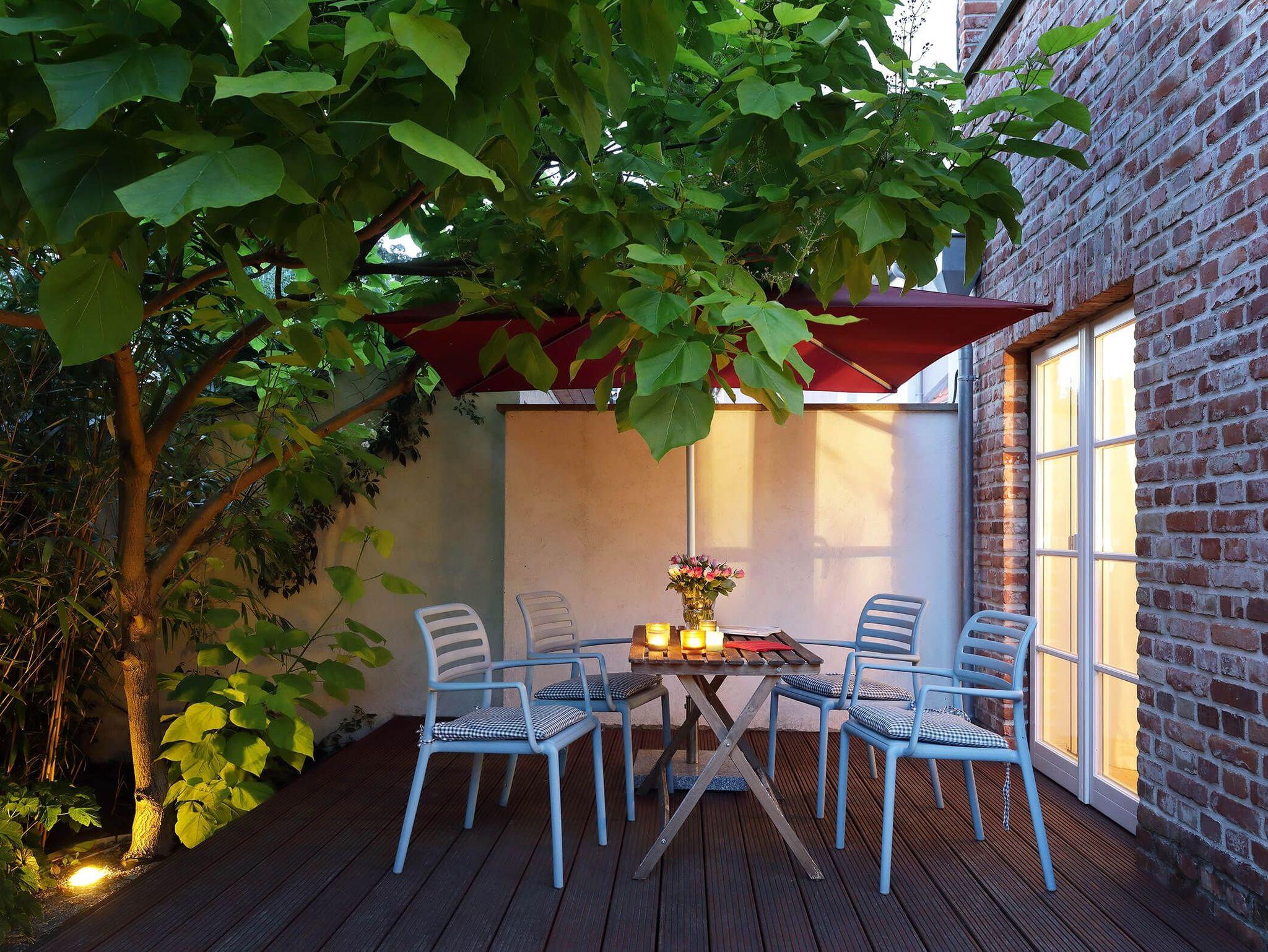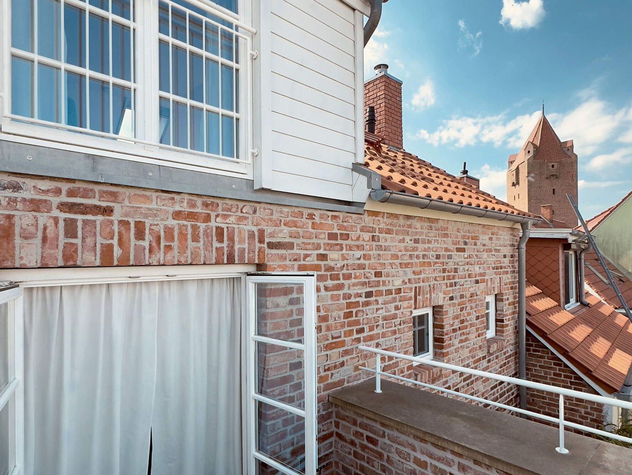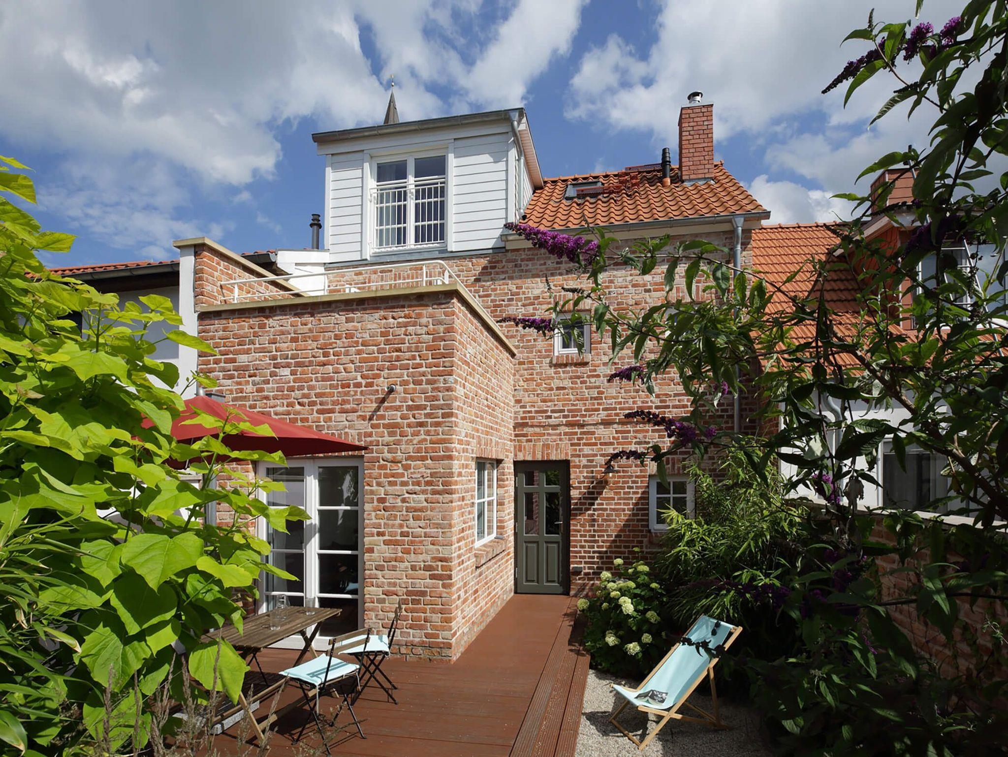 Das Witt Hus in Barth bietet familienfreundlichen Komfort mit Garten, Grill und Blick vom Balkon über die Stadt.