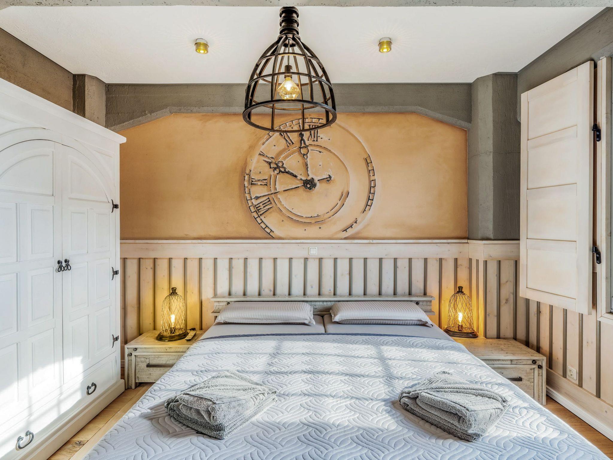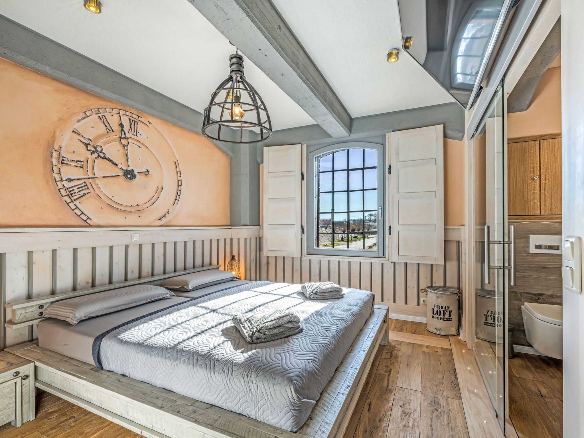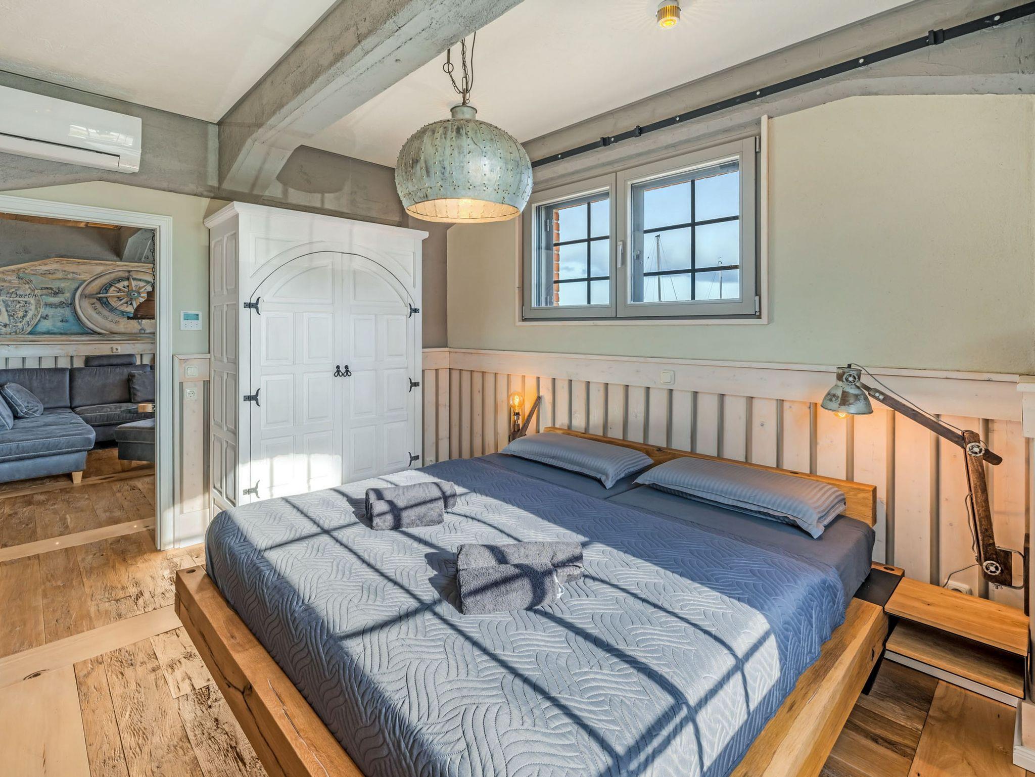 Beide Schlafzimmer sind mit komfortablen Doppelbetten ausgestattet, bestehend aus zwei Matratzen (90x200) mit unterschiedlichen Härtegraden. So findest du ganz individuell deinen persönlichen Schlafkomfort. Eines der Schlafzimmer verfügt über ein Bad en suite, das zweite Bad ist separat zugänglich. Beide Bäder sind modern gestaltet und jeweils mit WC sowie einer ebenerdigen Regendusche ausgestattet. Die Einrichtung ist bewusst martim und hochwertig gehalten und unterstreicht den besonderen Charakter des historischen Speichergebäudes.