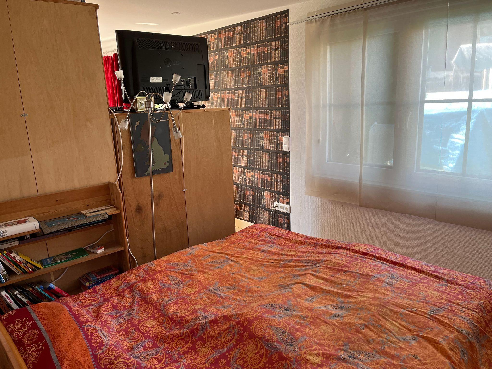 Im Schlafbereich steht ein Doppelbett aus Kiefernholz (2 m x 1,80m) mit 2 Matratzen à 90 cm. In
