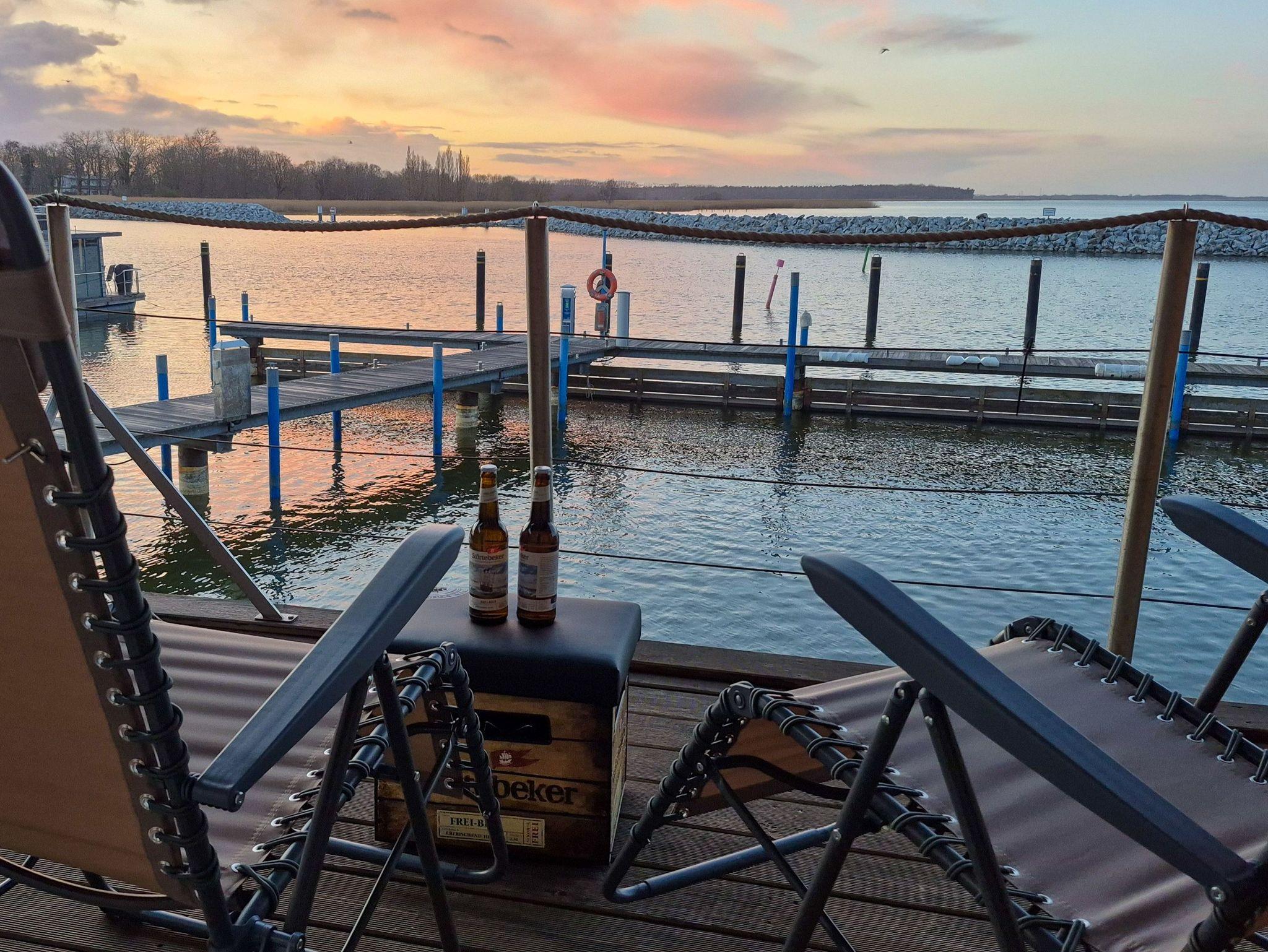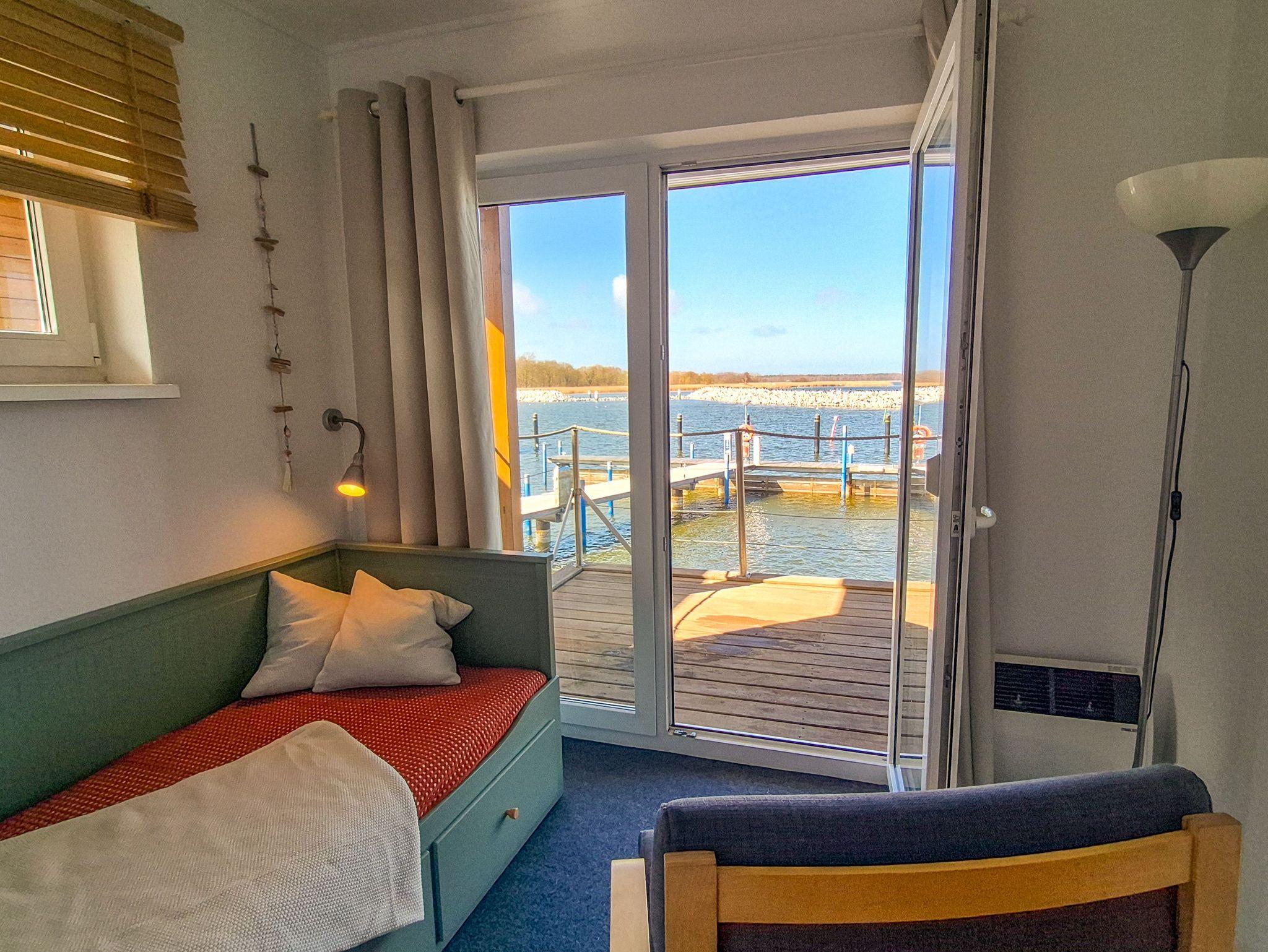 Genießen Sie maritimen Urlaub auf einem charmanten Hausboot mit Seeblick im Hafen von Barth.