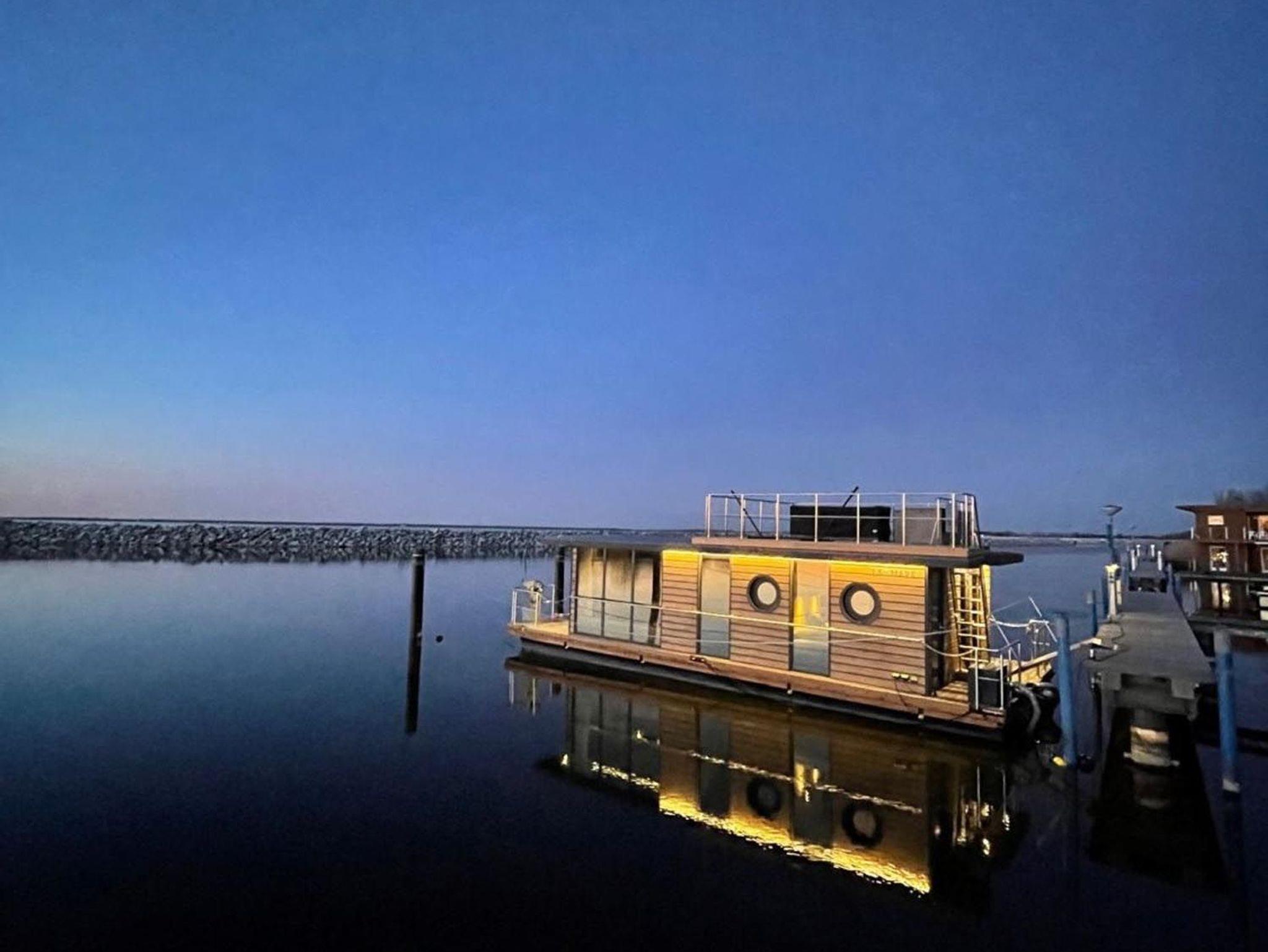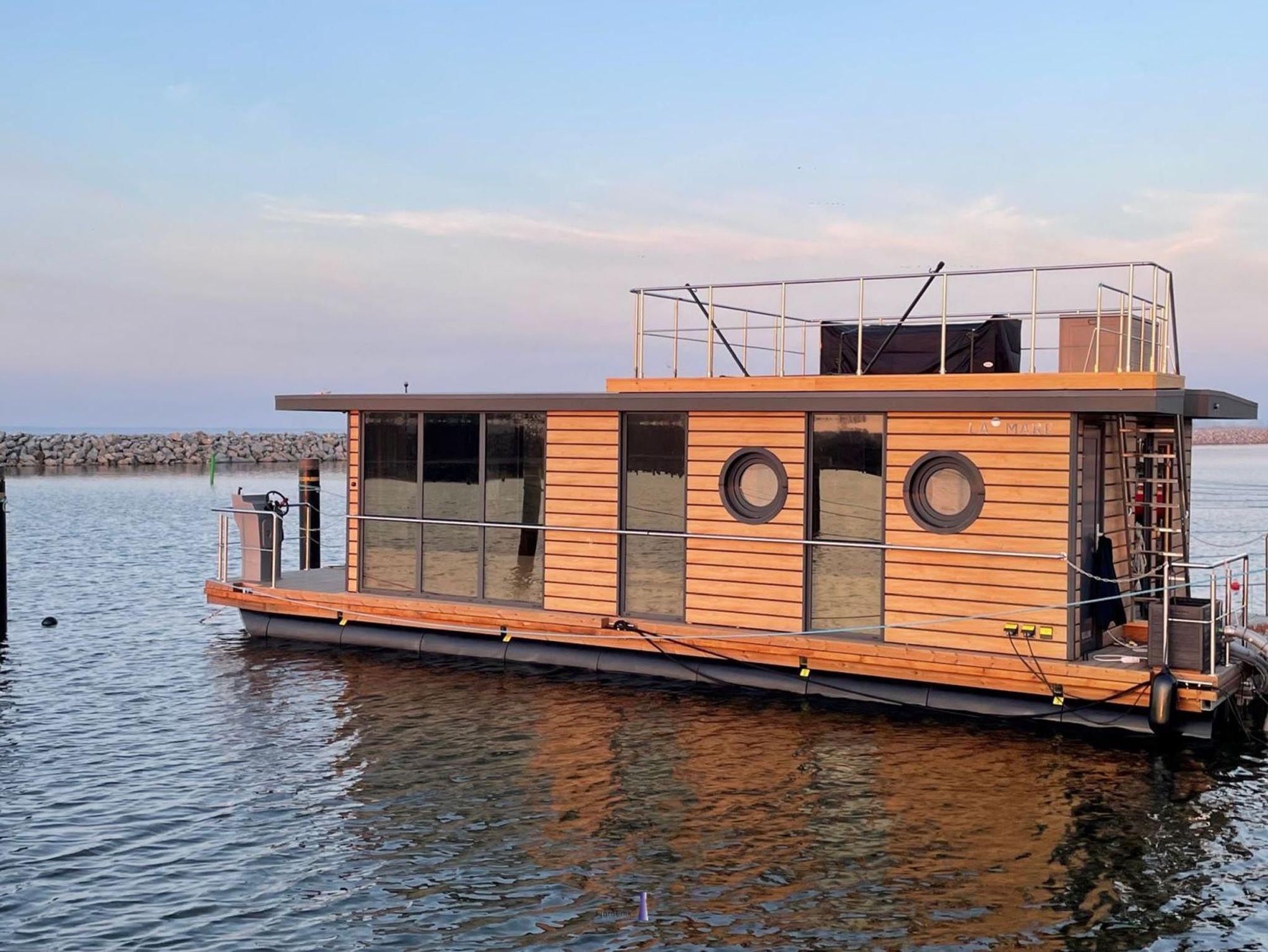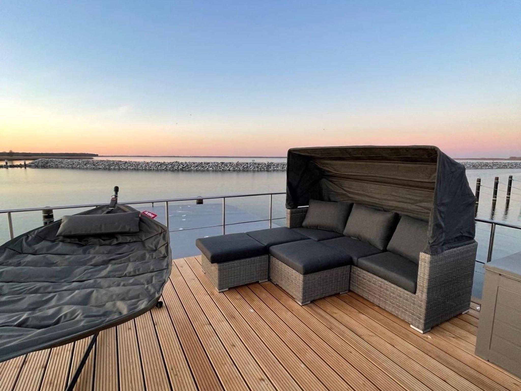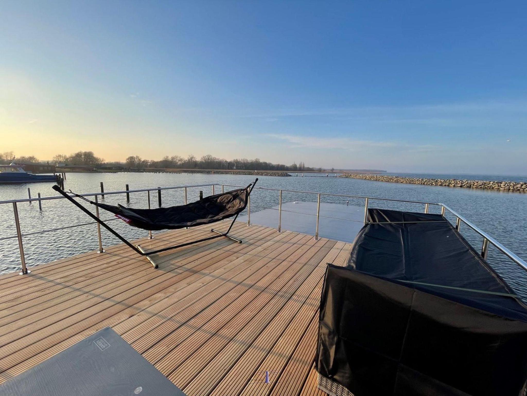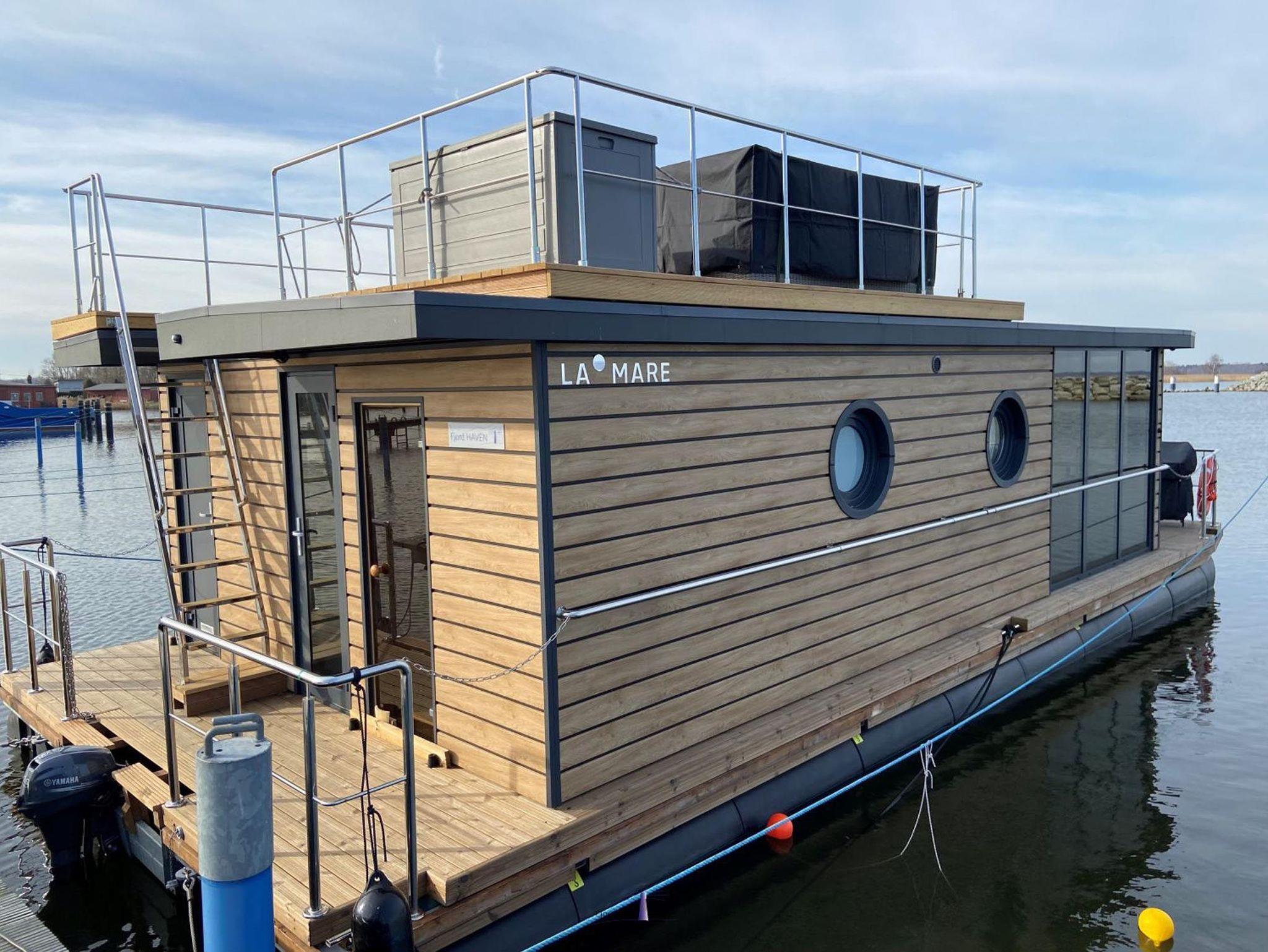 Erleben Sie Entspannung und Komfort auf dem modernen Hausboot Fjord HAVEN mit Sauna und Sonnenterrassen am Barther Bodden.