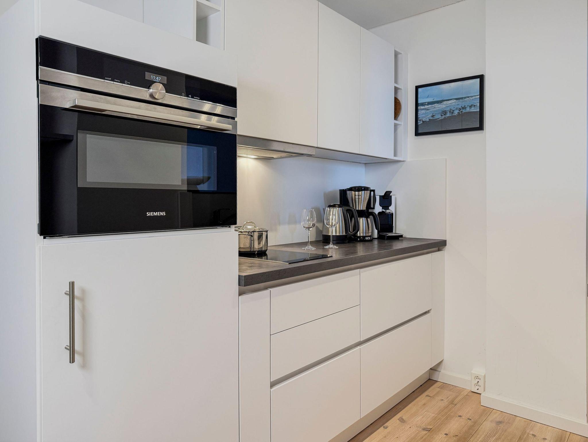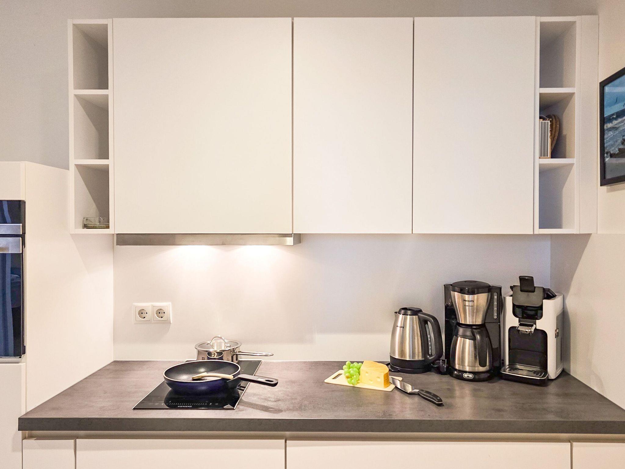 • Küche: Separate, voll ausgestattete Küche mit Backofen, Kochfeld, Mikrowelle, Kühlschrank, Geschirrspüler, Filterkaffeemaschine und Pad-Kaffeemaschine