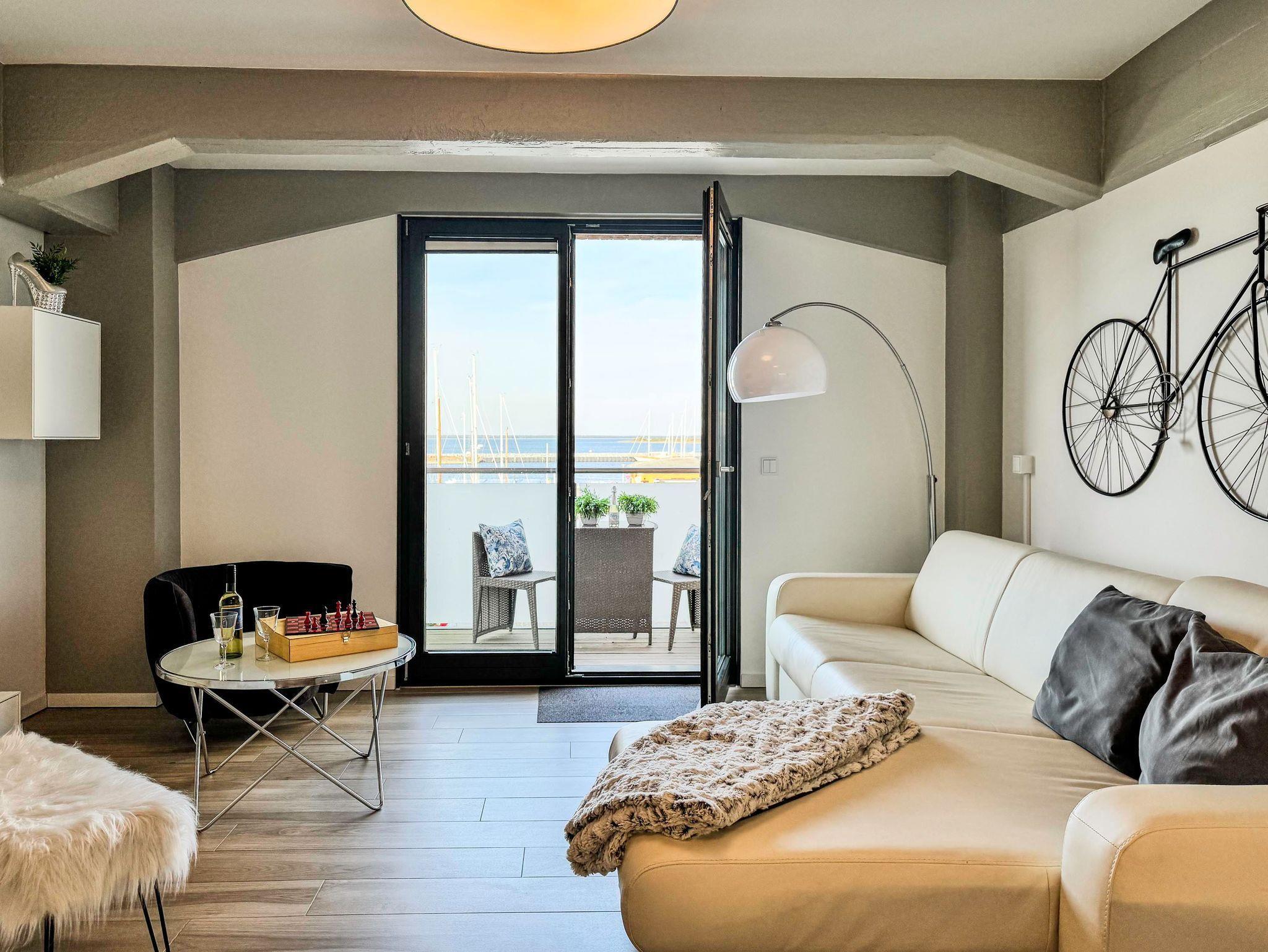 Moderne Ferienwohnung mit Hafenblick und Balkon in Barth an der Ostsee.