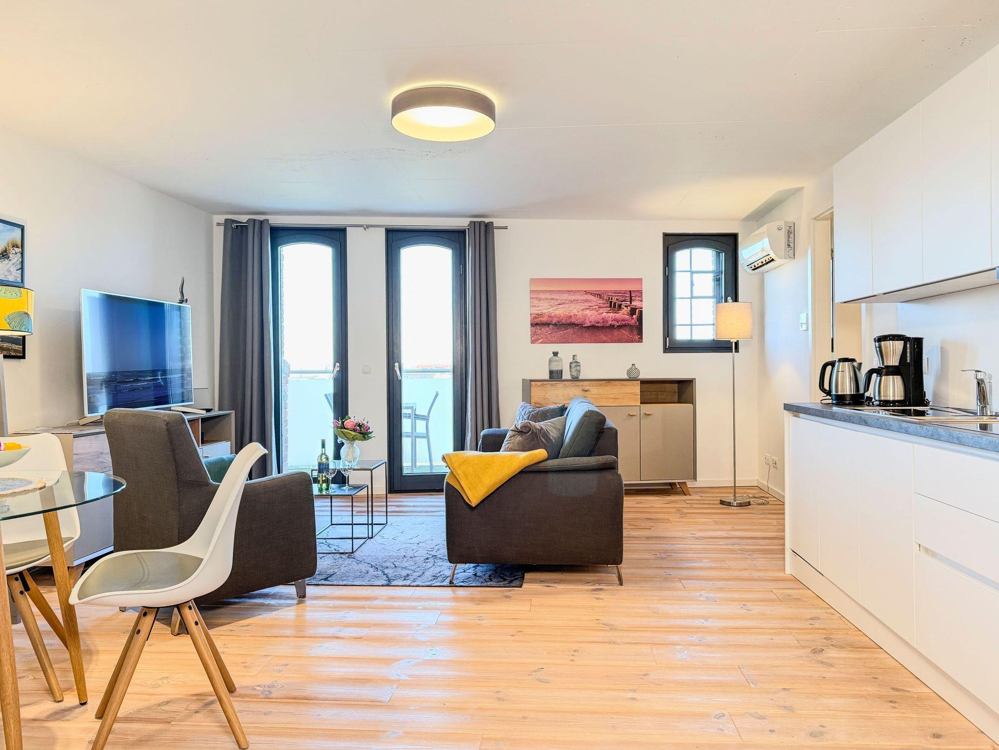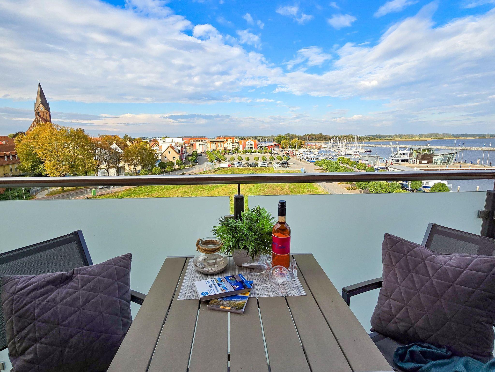 Stilvolles Apartment mit Balkon und seitlichem Boddenblick in Barth, ideal für entspannte Ostseeferien.