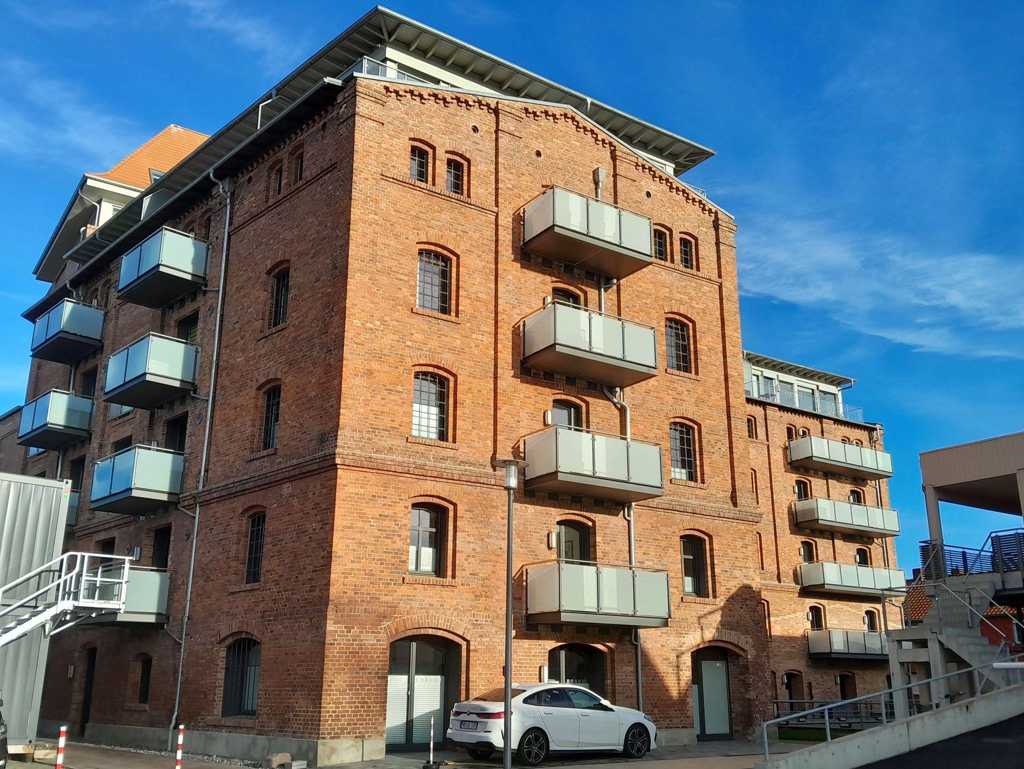 Exklusives Apartment mit seitlichem Wasserblick im sanierten Getreidespeicher am Barther Hafen.