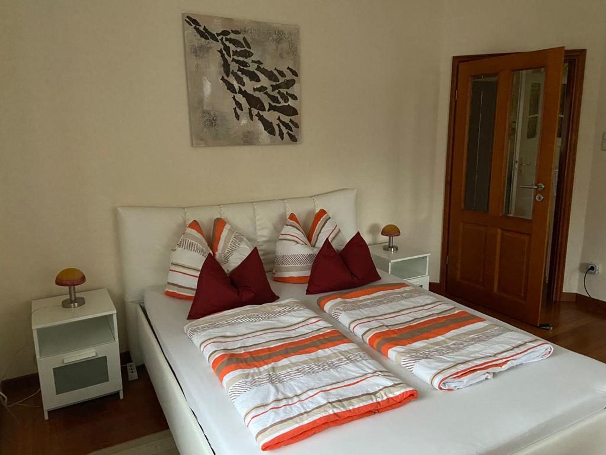 Aufbettung im Wohnzimmer mit Dauerschlafcouch (1,60 m ) möglich. Im Schlafraum ist ein Doppelbett 1,60 m vorhanden. Die Wohnung ist komplett mit Pakettfußboden ausgelegt. Kinderreisebett und Kinderhochstuhl auf Anfrage.