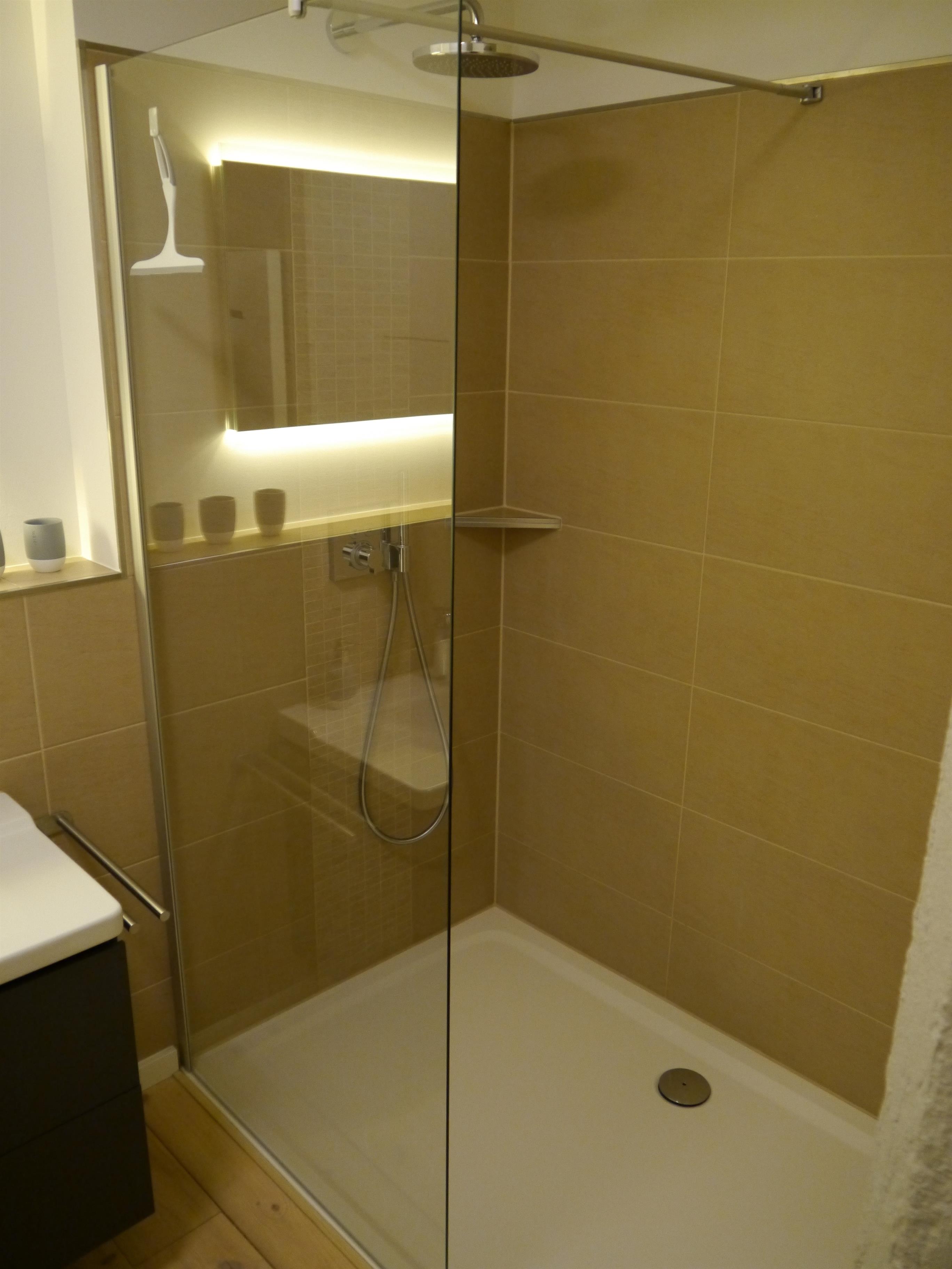 Das Bad befindet sich eine große ebenerdige Dusche.