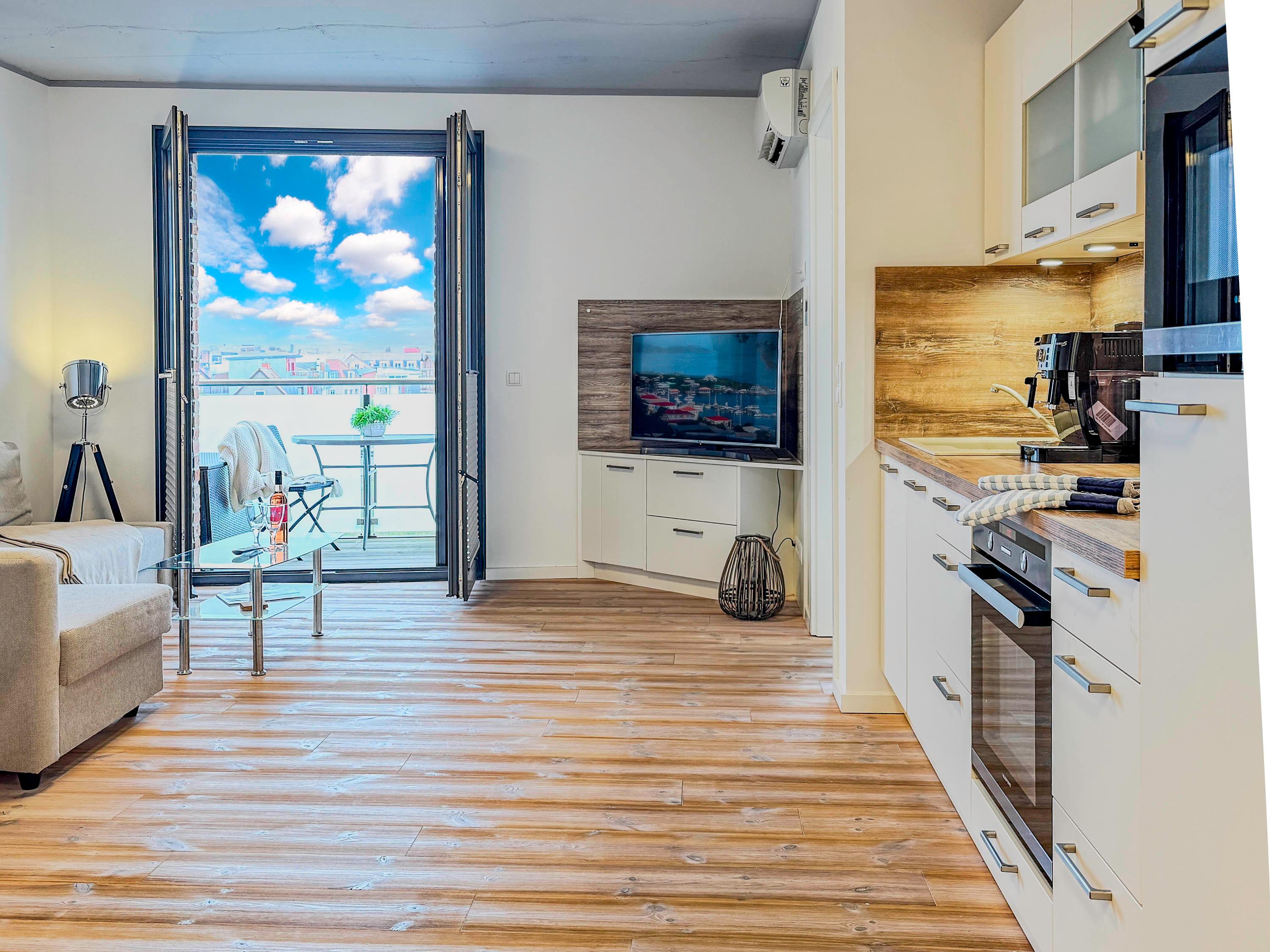 Dieses gemütliche Apartment im 3. Obergeschoss bietet auf ca. 61 m² Platz für bis zu 3 Personen und besticht durch einen seitlichen Wasserblick vom Balkon.