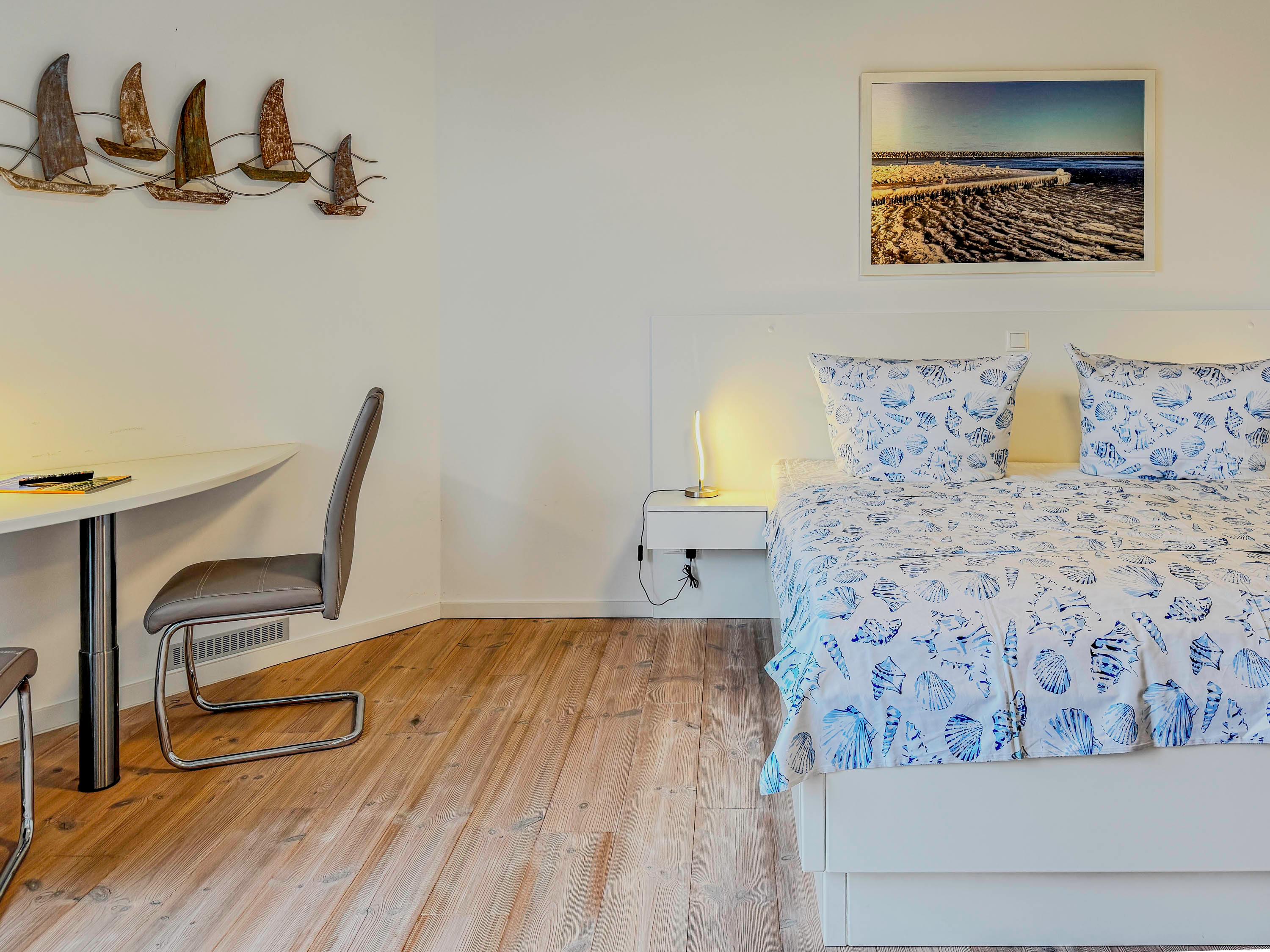 Die Speicherresidenz App. 3.7 empfängt Sie mit einer einladenden Atmosphäre. Der Wohnbereich mit Schlafcouch und Essplatz lädt zu gemütlichen Abenden ein. In der voll ausgestatteten Küchenzeile können Sie Ihre Lieblingsgerichte zubereiten, die Sie anschließend auf dem Balkon mit seitlichem Wasserblick genießen können. Das separate Schlafzimmer bietet komfortable Ruhe, während das moderne Badezimmer mit Dusche zusätzlichen Komfort bietet.