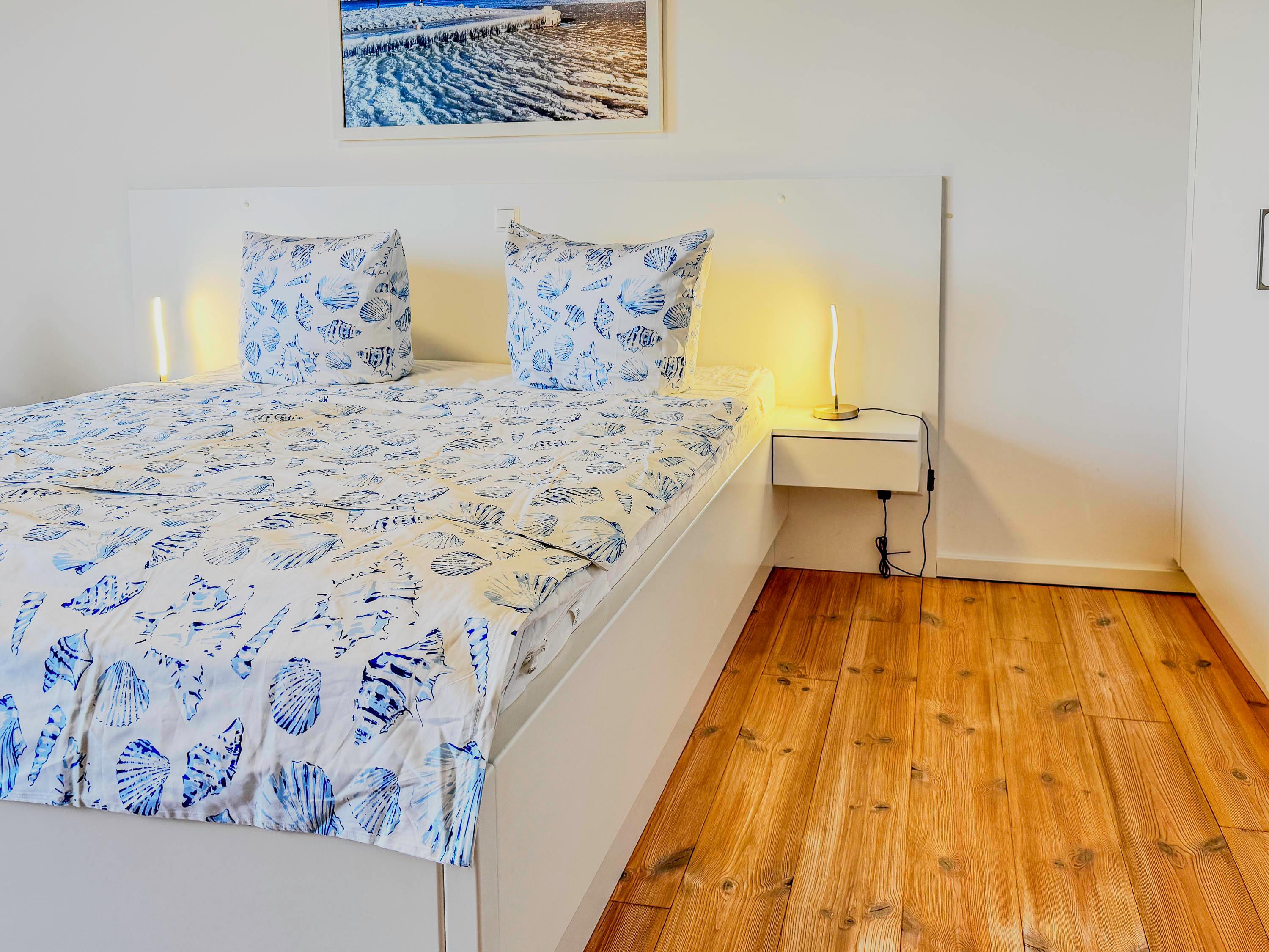 Schlafzimmer: Ein separates Schlafzimmer mit komfortablem Doppelbett (180 x 200 cm)