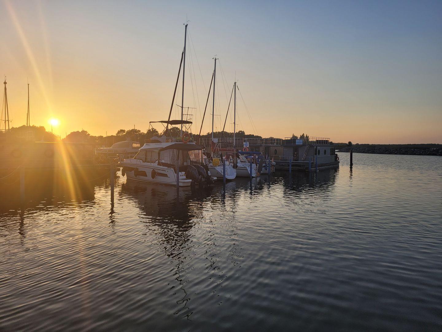 Komfortable schwimmende Ferienhäuser mit herrlichem Boddenblick im Barther Yachthafen.