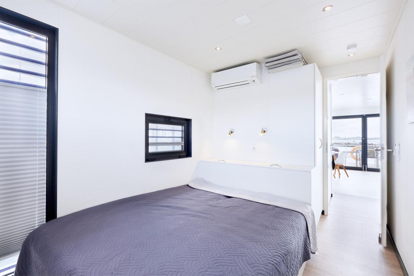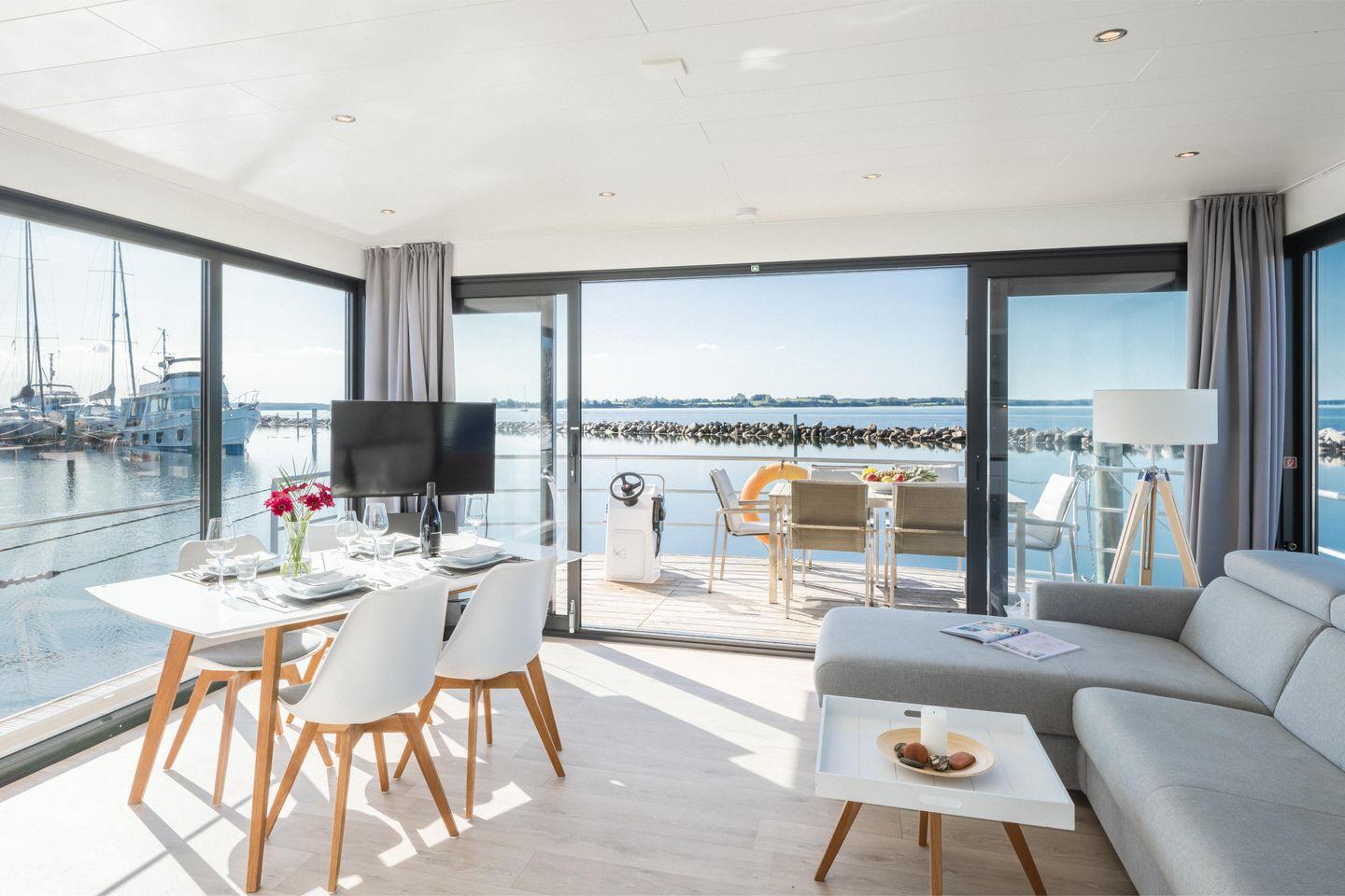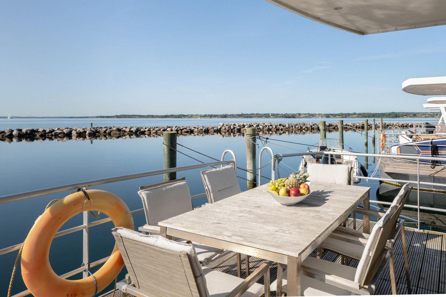 Das festliegende Hausboot "Fjordblik" bietet Ihnen ein einzigartiges Urlaubserlebnis auf dem Wasser – direkt im malerischen Yachthafen von Barth.