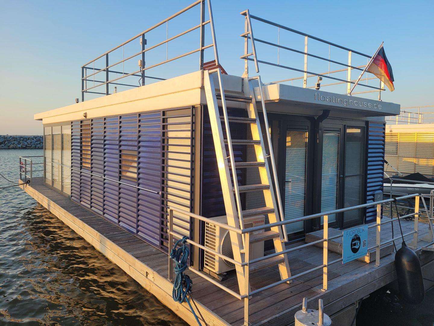 Hausboot "Fjordblik" -komfortables schwimmendes Ferienhaus im Barther Yachthafen