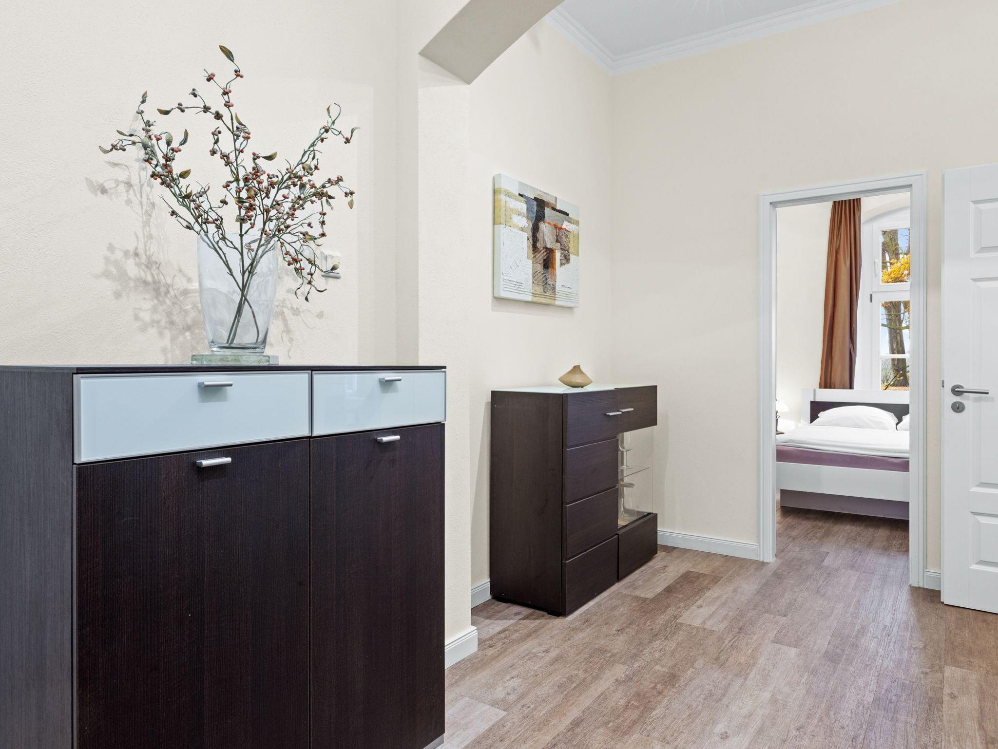 Willkommen in Ihrer Ferienwohnung ? schon beim Eintreten empfängt Sie der großzügige, einladende Eingangsbereich. Hier können Sie erst einmal ankommen, durchatmen und die besondere Atmosphäre des Schlosses auf sich wirken lassen.