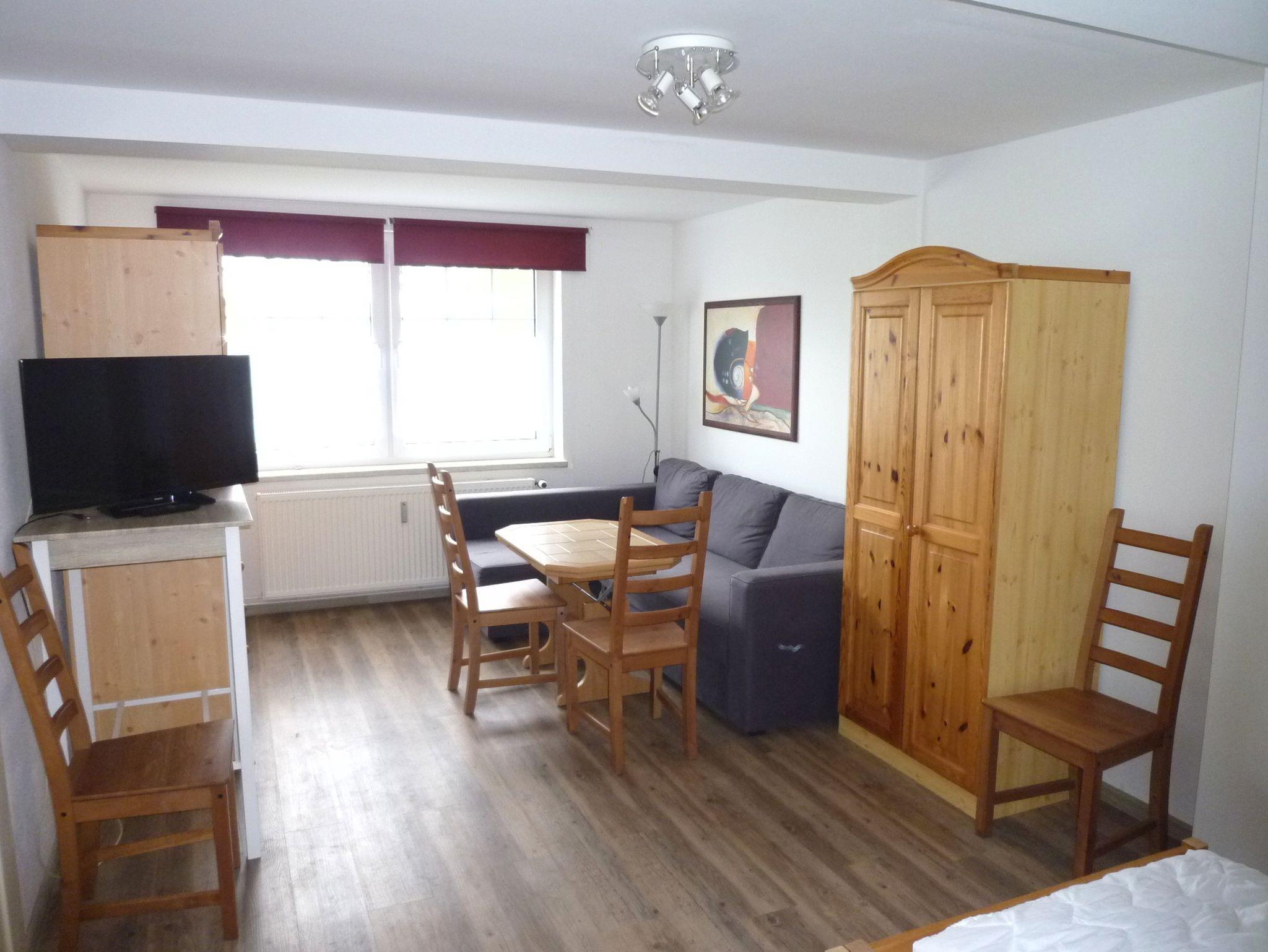 Die Ferienwohnung verfügt über ein Schlafzimmer mit einem Doppelbett, ein Wohnzimmer mit Schlafcouch und Fernsehr mit Sat-TV und über ein kombiniertes Wohn- & Schlafzimmer mit Doppelbett, Schlafcouch und Fernseher mit Sat-TV.