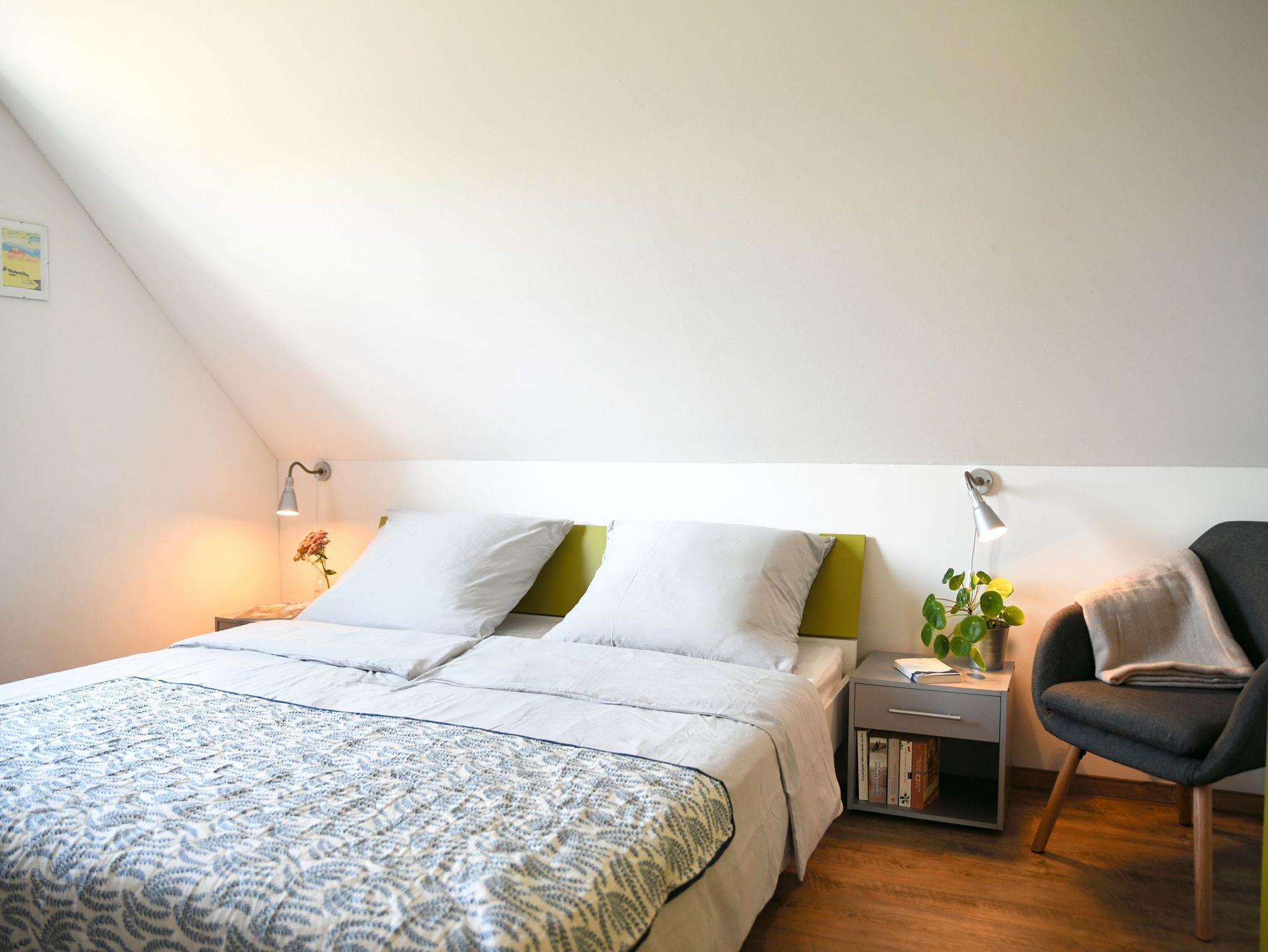 Die Lage und Ausstattung sind perfekt für Familien, Wassersportler, Aktivurlauber und Naturfreunde. Das Strand-Ferienhaus verfügt über drei separate Schlafzimmer. Zwei mit jeweils einem Doppelbett (1,80m x 2,00m) und eines mit einem Einzelbett (0,90m x 2,00m). Der helle und weitläufige Wohn- und Essbereich mit Kamin, Sofaecke, TV und Esstisch heißt die Gäste beim Betreten des Hauses willkommen. Die Küche ist mit Geschirrspüler, Herd, Backofen, Mikrowelle, Toaster, Kaffeemaschine und Wasserkocher komplett ausgestattet und bietet viel Platz für gemeinsames Kochen und Schlemmen im Urlaub. Vom Wohnzimmer aus gelangt man direkt auf die möblierte Sonnenterrasse. Ein Bad und die großzügige Sauna befinden sich im Erdgeschoss und das zweite Bad befindet sich im Obergeschoss. Hier gelangt Ihr auch zu den Schlafzimmern.