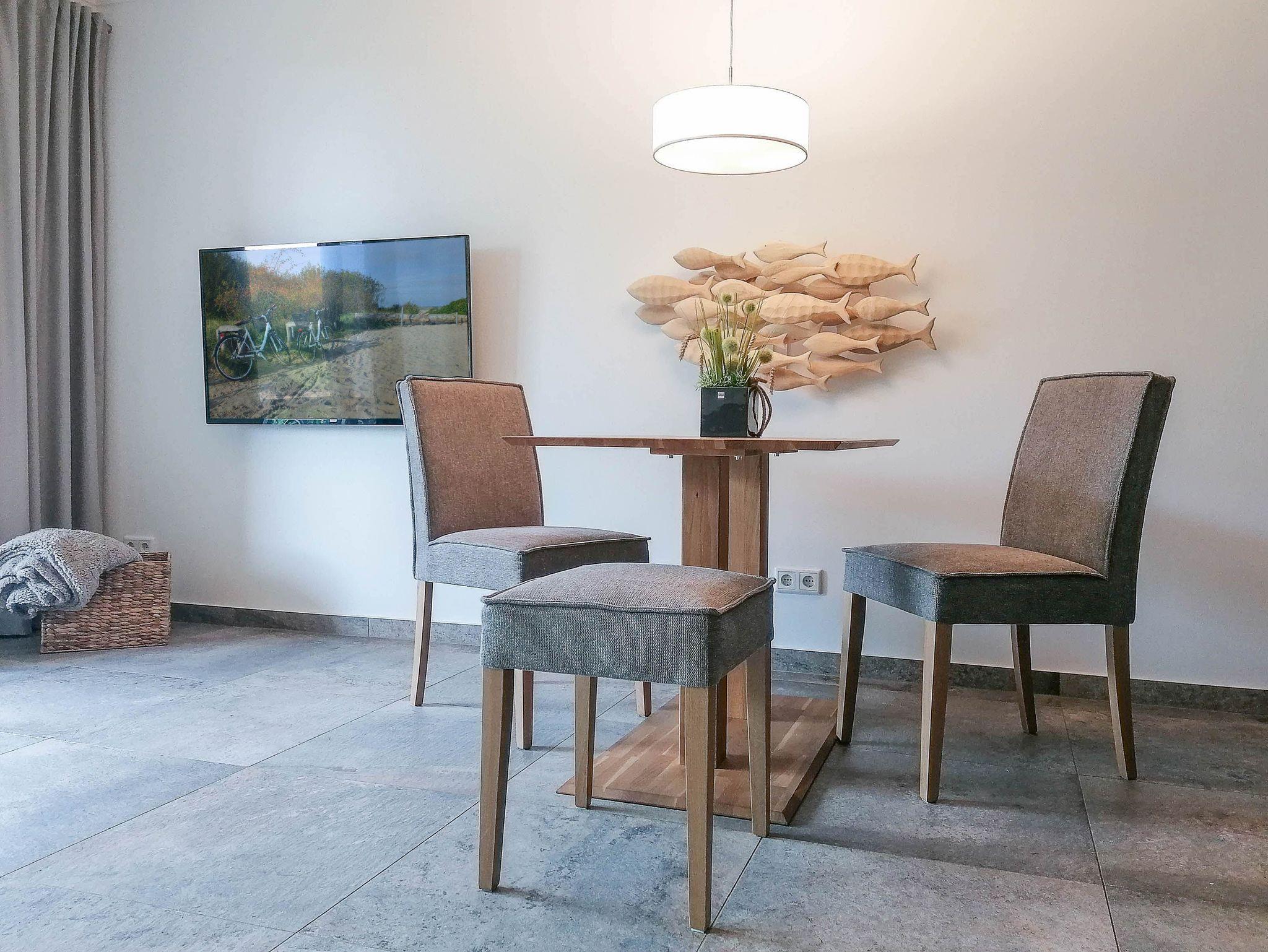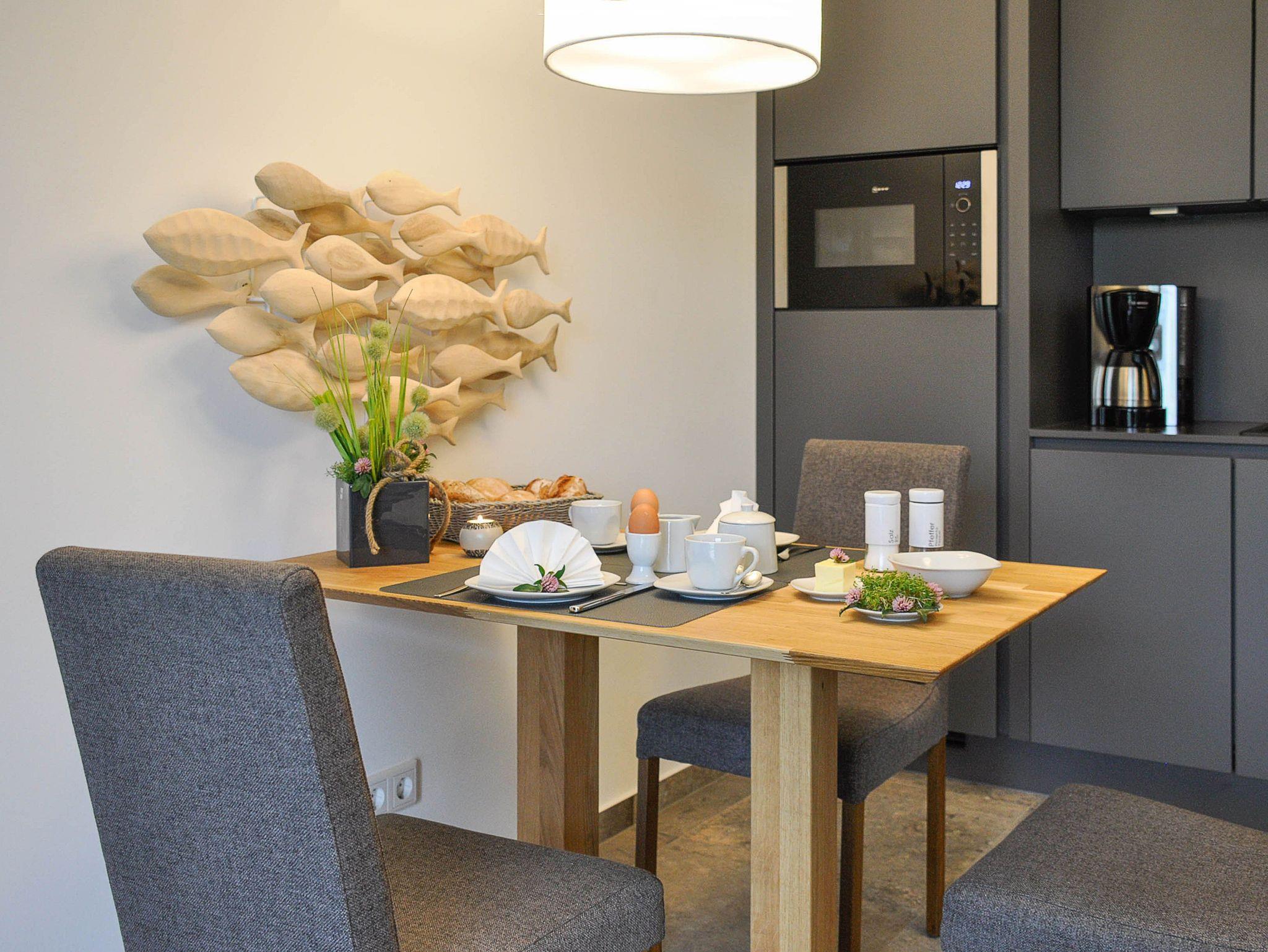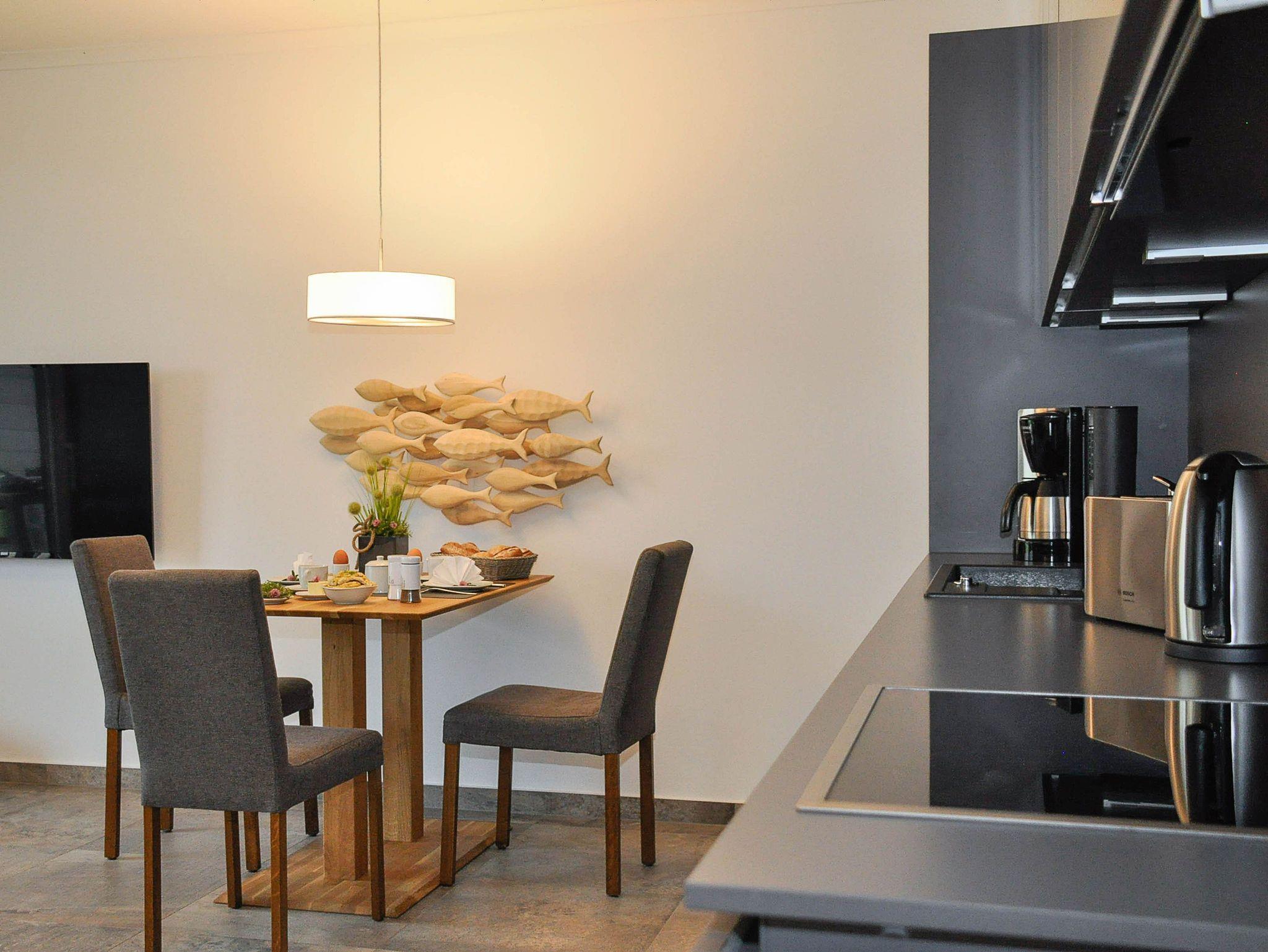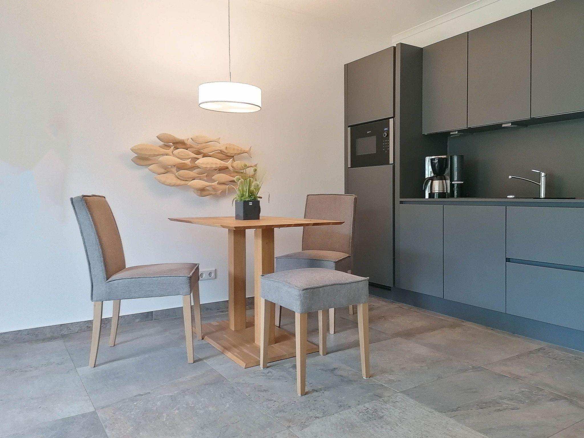 Herzlich willkommen in der Wohnung Nr. 4 Auszeit in der Sunset Residence! Das modern und komfortabel ausgestattete 2-Raum-Appartement ist ebenerdig und komplett stufenfrei. Auf komfortablen 66qm können zwei erwachsene Personen ihre Auszeit in idyllischer Ruhe genießen. Das Highlight dieser liebevoll eingerichteten Wohnung ist die möblierte Terrasse mit Liegewiese und Ostseeblick. Die Wohnung verfügt über eine ganzflächige Fußbodenheizung (Wärmeversorgung primär über Geothermie), eine eigene, gesicherte WLAN-Verbindung, die kostenfrei nutzbar ist (ohne Rechtsanspruch).