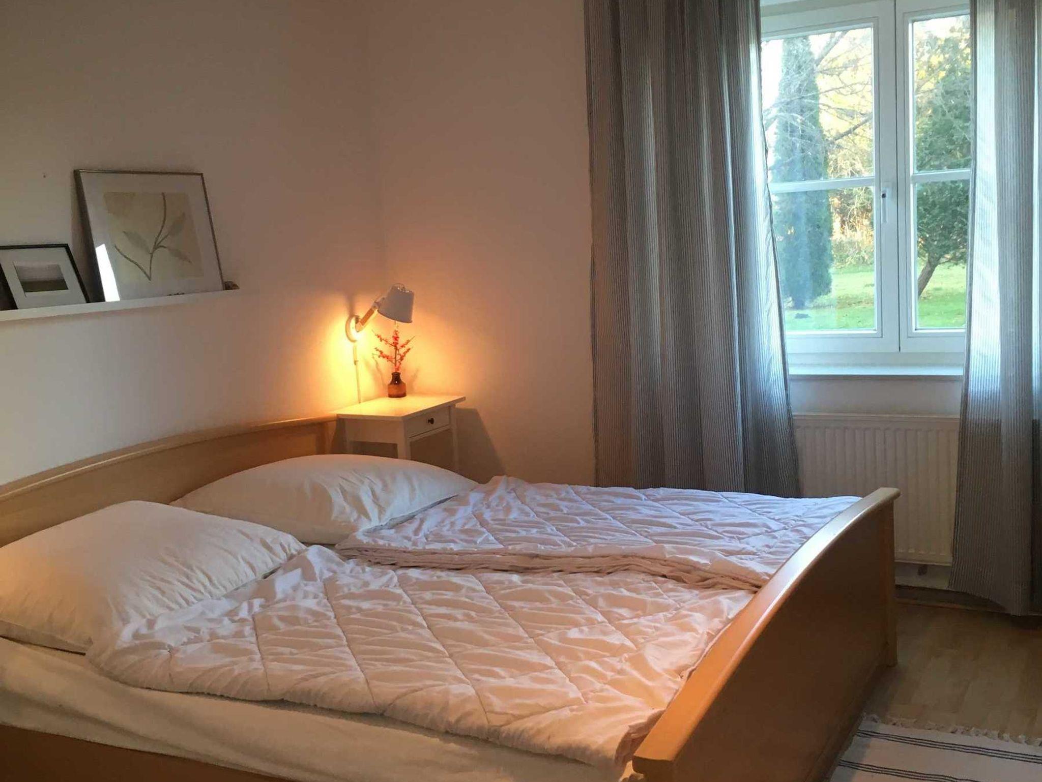 Die Terrasse führt direkt auf den großen Garten im Park, mit altem, knorrigen Eichenbaumbeständen und einem kleinen Teich. Zur Dämmerung kommen manchmal Rehe oder auch ein Wildhase auf Stippvisite auf das Gelände. Im großen, hellen eingerichteten Wohn- und Essbereich befindet sich eine Küchenzeile mit zwei Herdplatten, einer Mikrowelle, einem Geschirrspüler, den üblichen E-Geräten (Kaffeemaschine etc.) sowie ein Esstisch für vier Personen. Zur Unterhaltung stehen Ihnen ein LCD-Fernseher und eine Stereoanlage sowie Bücher, ein paar Spiele und Informationsmaterial über die Umgebung zur Verfügung.