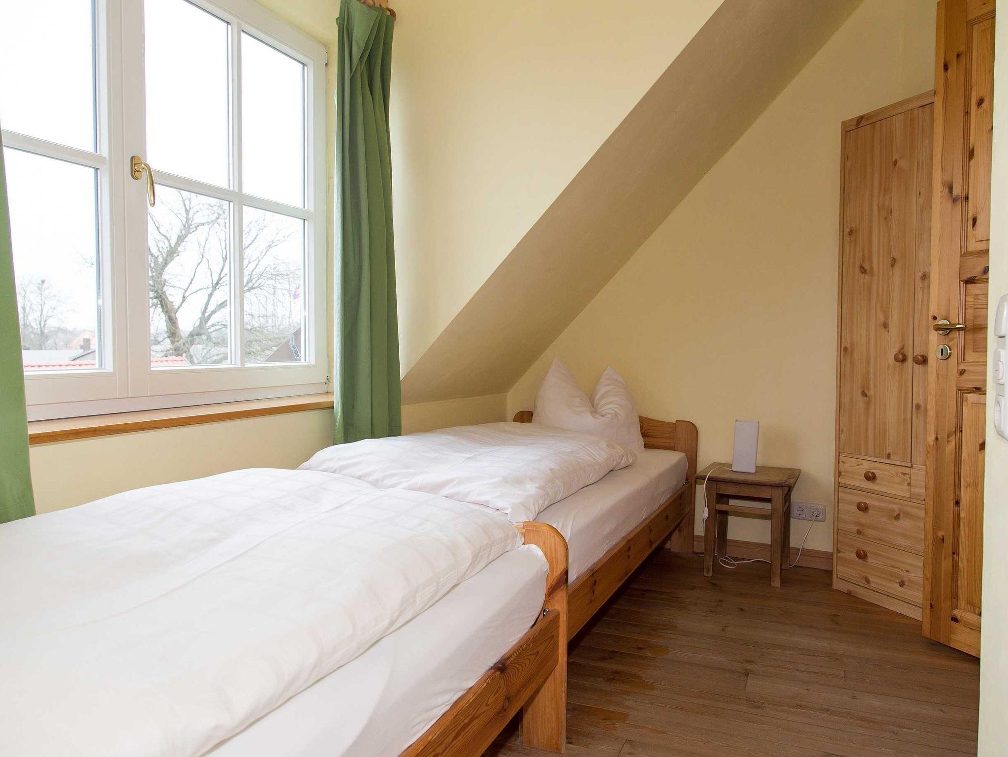 2 Schlafräume mit Doppelbett bzw. 2 Einzelbetten. Duschbad und WC. WLAN-Internet.