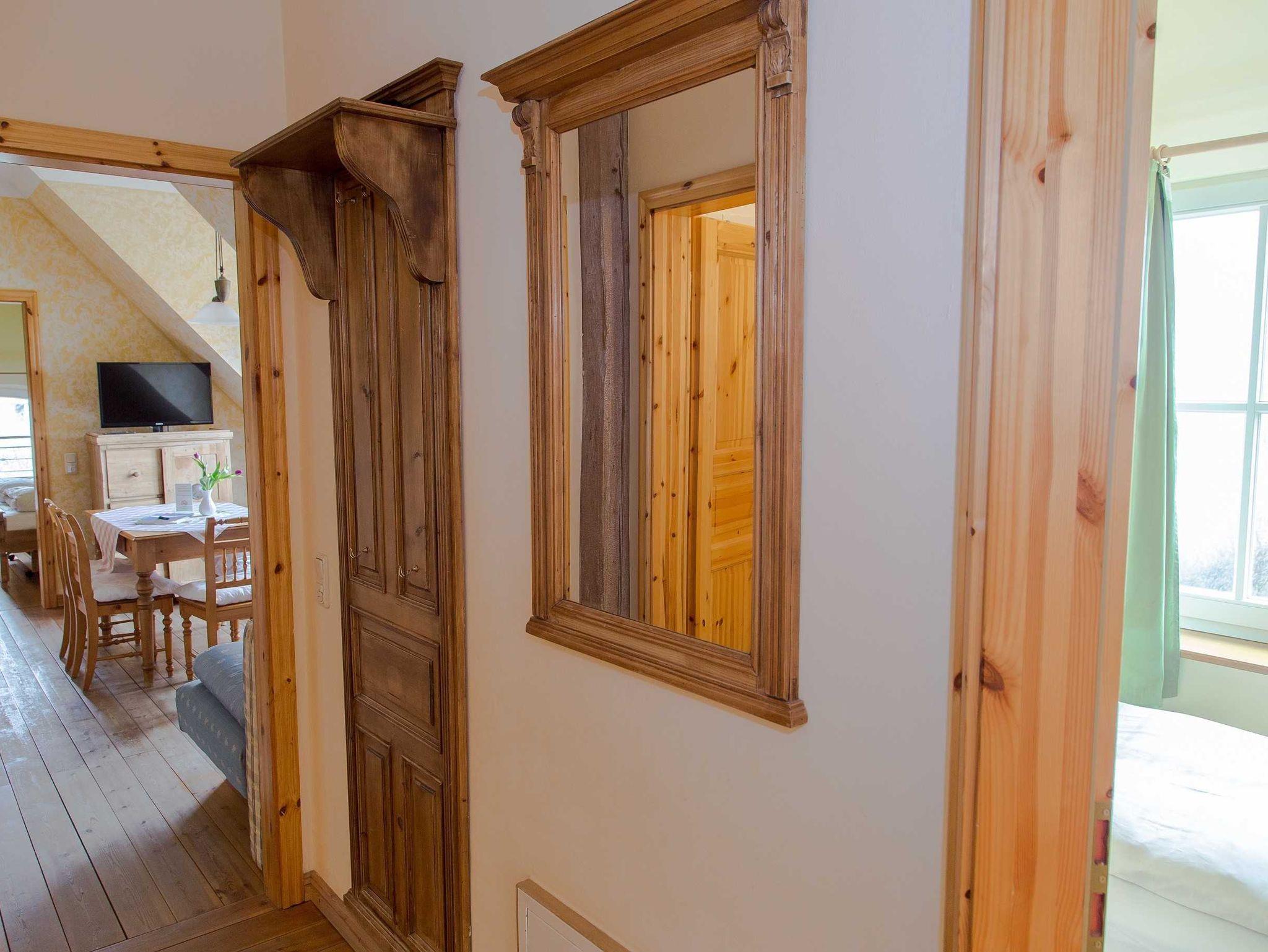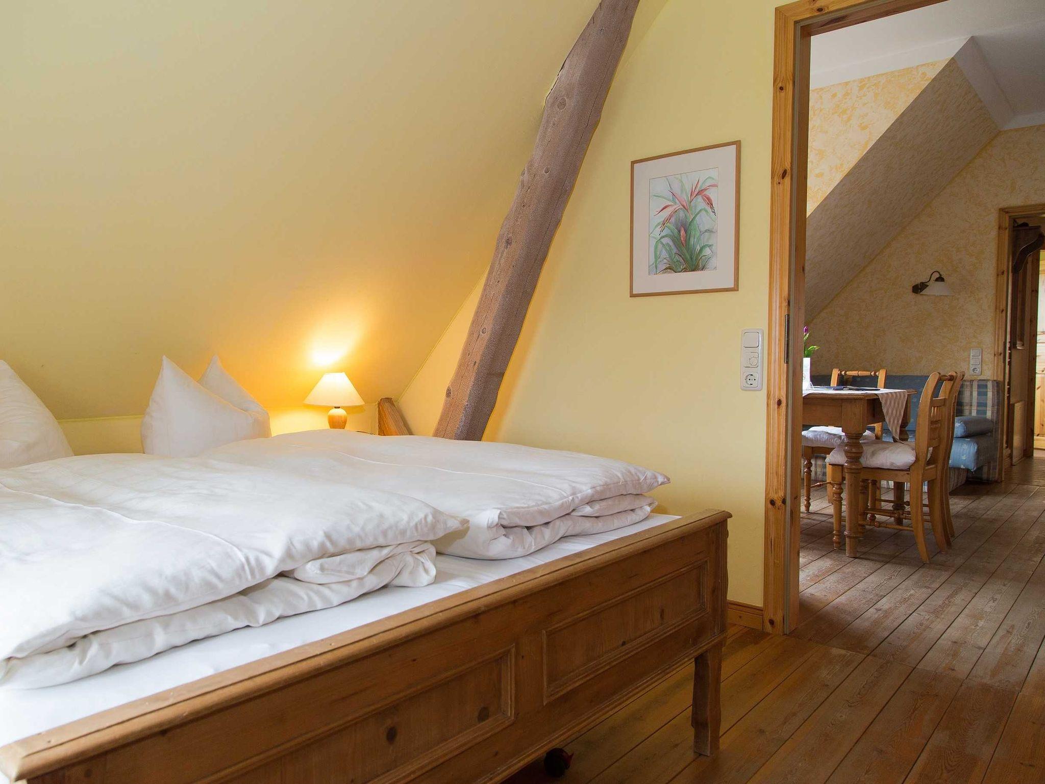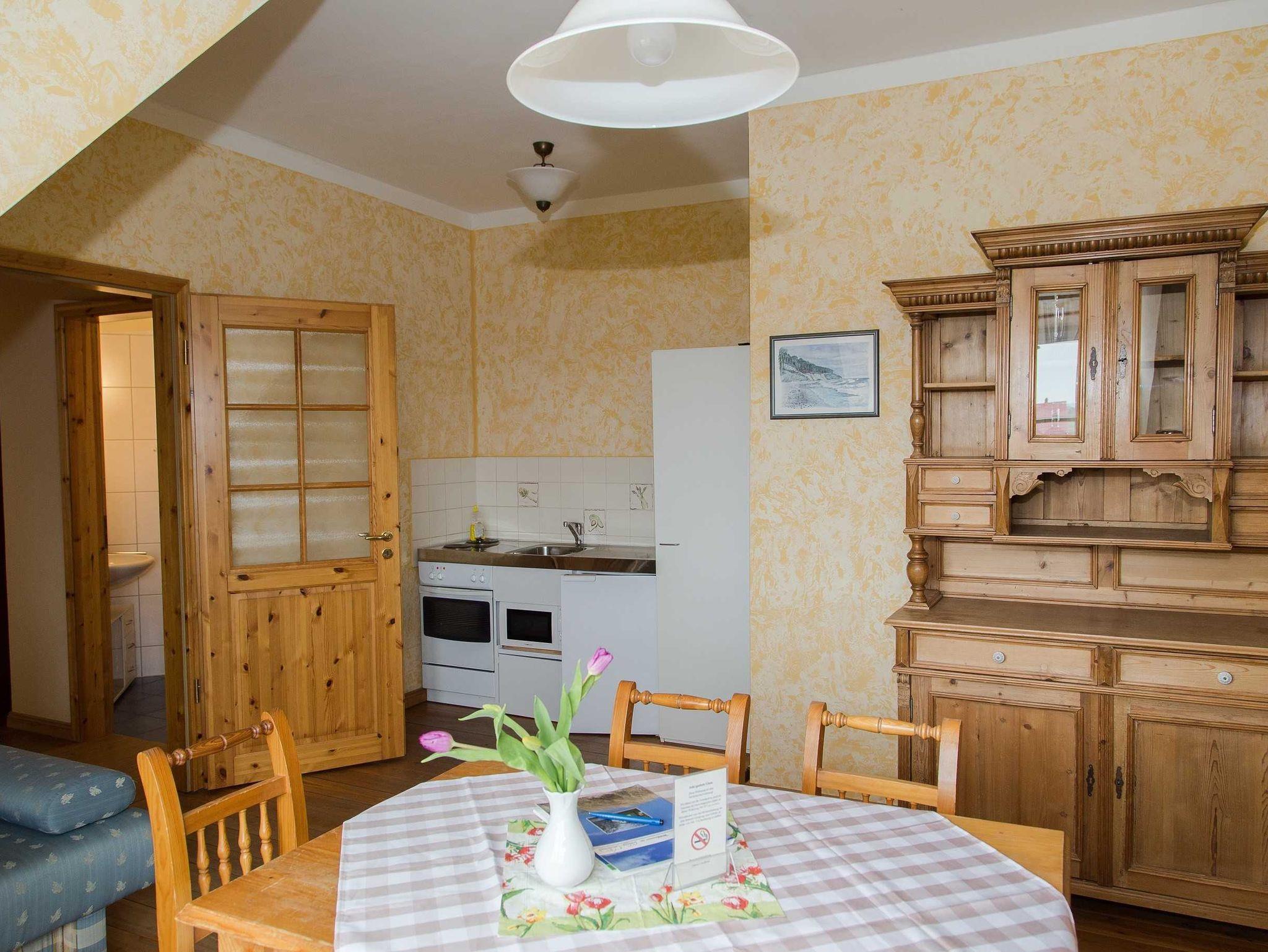 Mit Miniküche und Mikrowelle, Bad mit Du/WC. Sat-TV, Internetzugang W-LAN. Fußbodenheizung. Eine große Gemeinschaftsterrasse und der weitläufige Garten mit Blick auf die Ostseebucht Salzhaff.