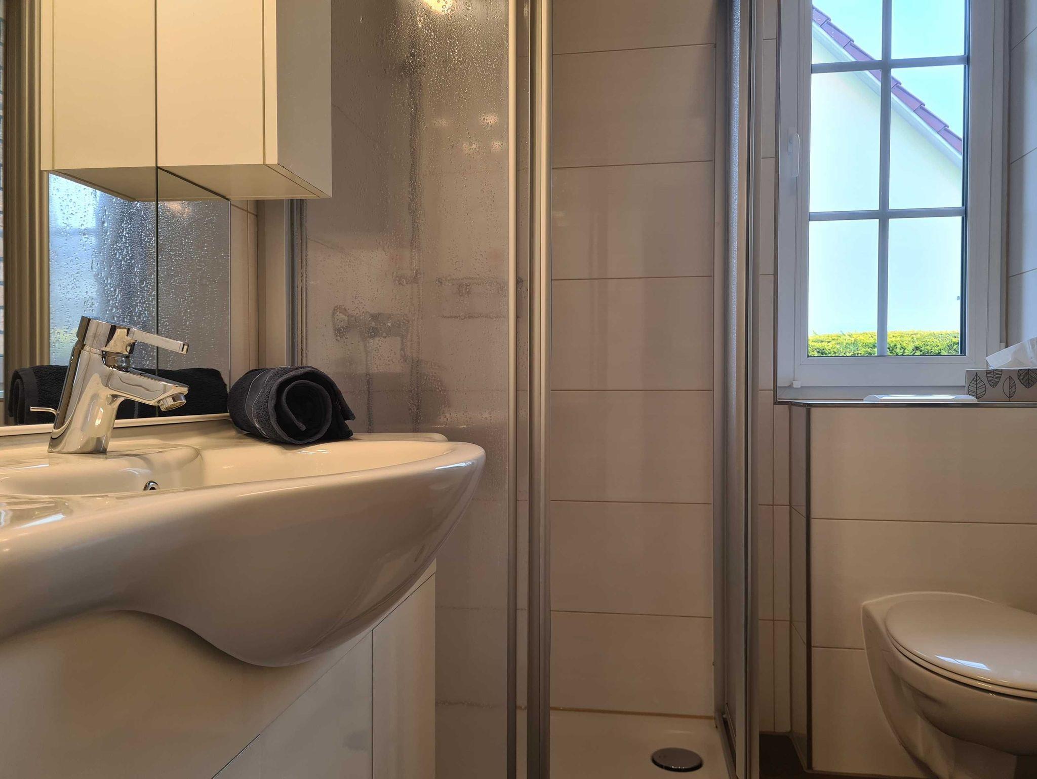 Fahrradunterstellmöglichkeit, sichtgeschützte Terrasse mit Sitzmöbeln und Grill, Außensteckdose für E-Bikes. Die Haustür erreichen Sie über eine Treppe. Parken 2026 wegen Carporterneuerung: Stellplatz am Grundstück nur zur An- und Abreise (kostenloser Parkplatz vorübergehend nur 80m entfernt)