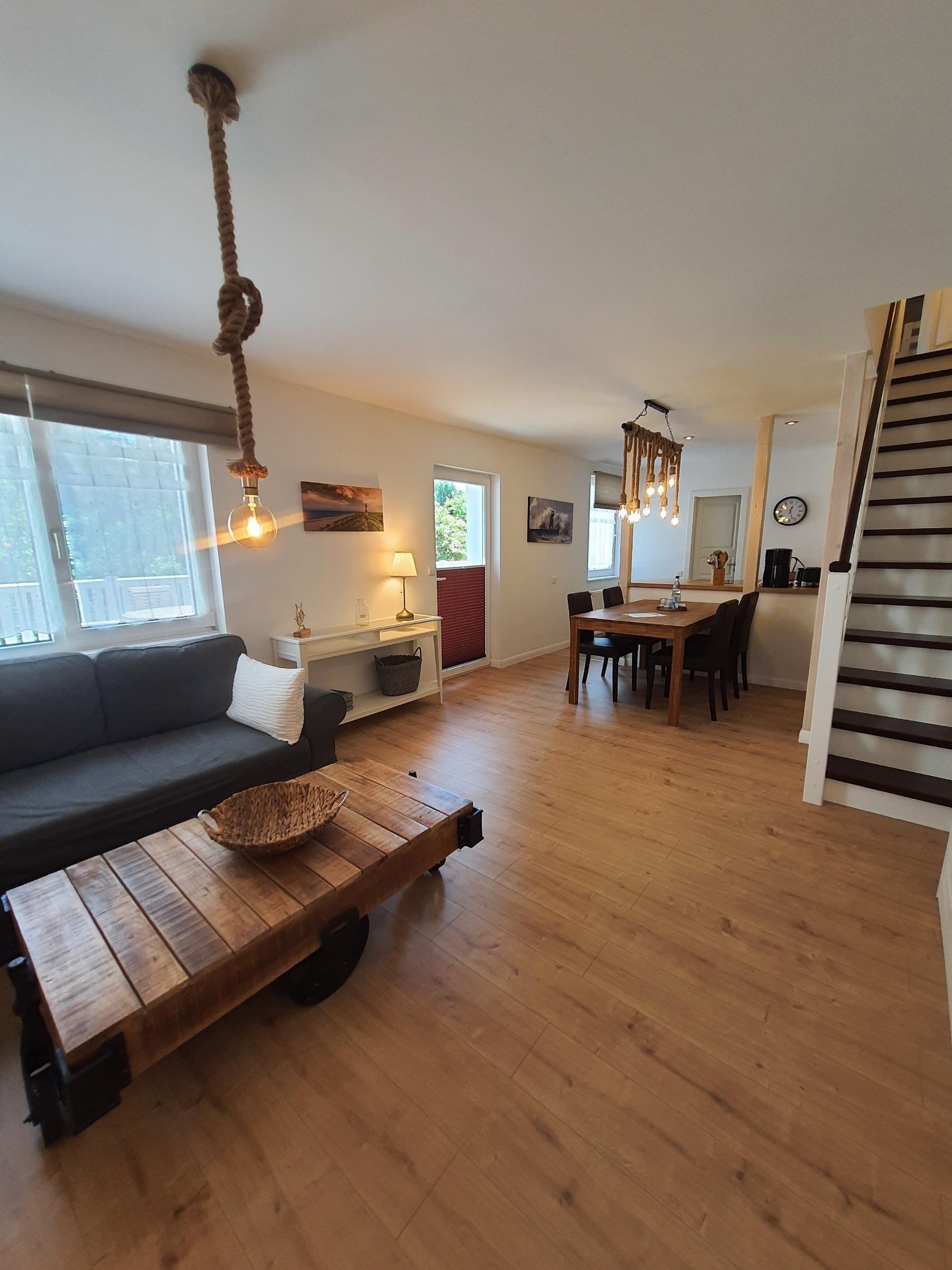 Mit ca. 55 m² ist die Wohnung "Kranich" eine der größeren Wohnungen im Haus Ostseebrise. Über 2 Etagen teilt sich die Wohnung in einen gemütlichen Wohnbereich sowie eine offene Küche mit angeschlossenem Esstisch im Erdgeschoss und den Schlafbereich im oberen Geschoss auf. Zusätzlich gehört zu dieser Wohnung eine ca. 32m² große Terrasse. Klare Strukturen und liebevolle Details sorgen in Ihrem Urlaub für Wohlfühlatmosphäre.