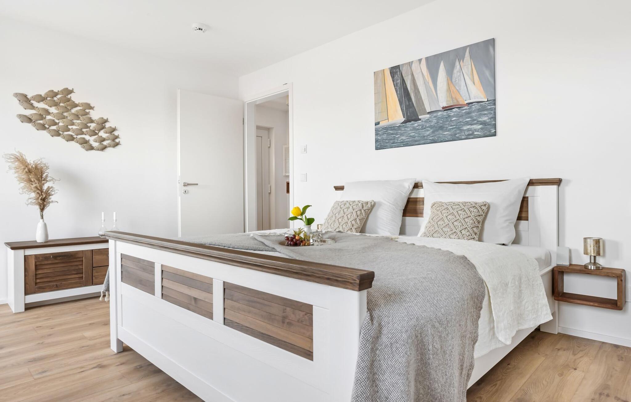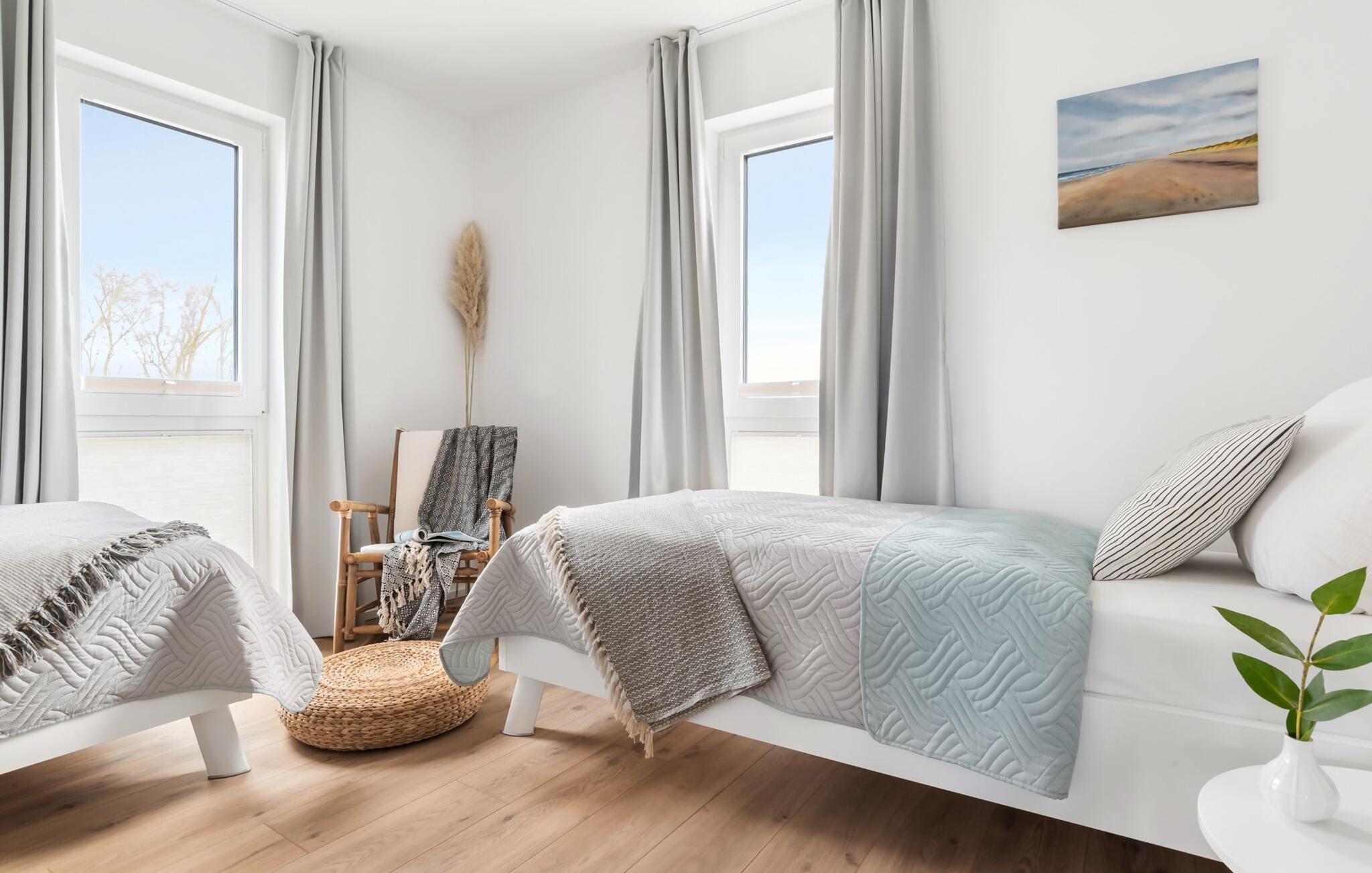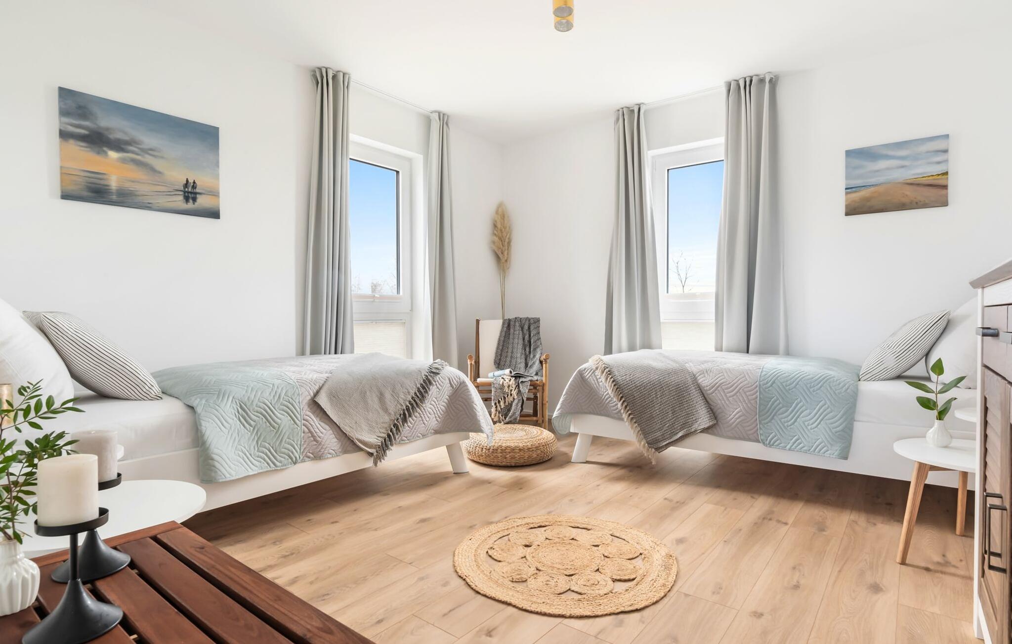 Diese atemberaubende Ferienwohnung im Beach House Stil bietet alles, was ihr für einen unvergesslichen Urlaub an der Ostsee benötigt. Durch die moderne, skandinavische Einrichtung und Surf-Style Akzente beginnt das Urlaubsfeeling gleich beim Betreten der Wohnung. Dank der offenen Raumgestaltung und den bodentiefen Fensterfronten wirkt die Wohnung ganztägig hell und einladend. Mit Platz für bis zu sechs Personen eignet sich diese Maisonettewohnung als idealer Rückzugsort für die gesamte Familie.