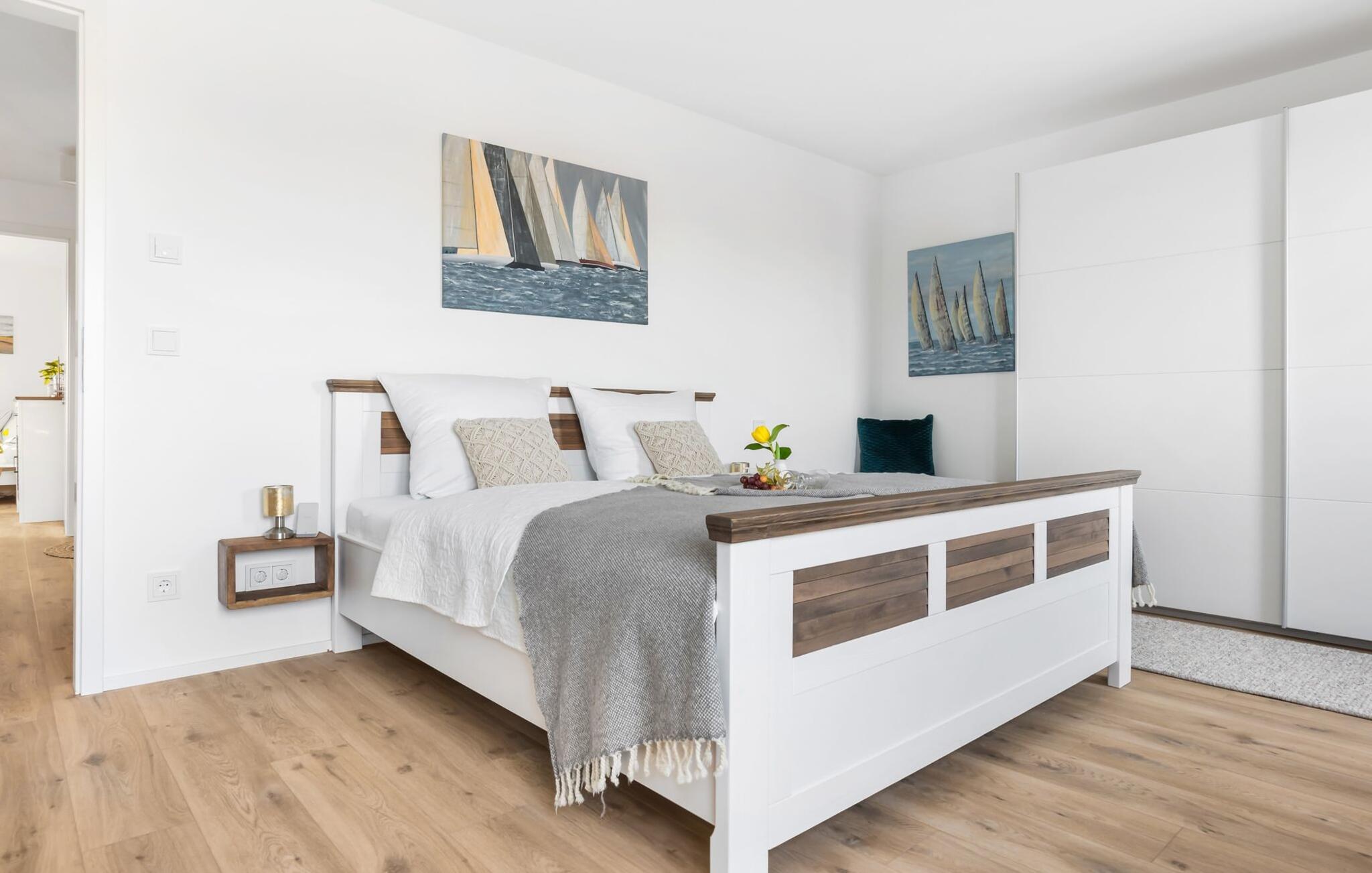 Moderne Maisonette-Ferienwohnung im Beach House Stil mit Dachterrasse und Meerblick im OstseeResort Olpenitz.