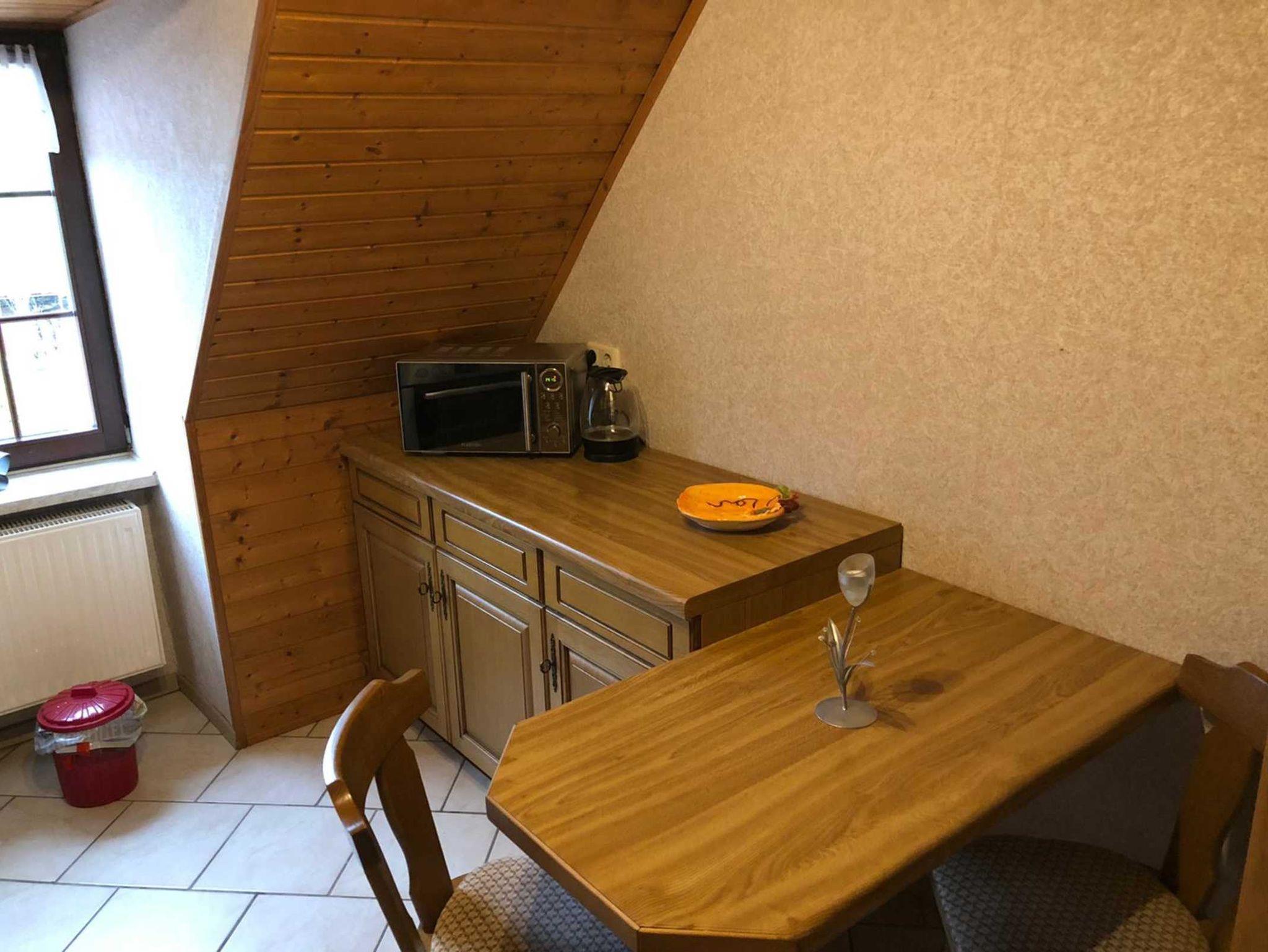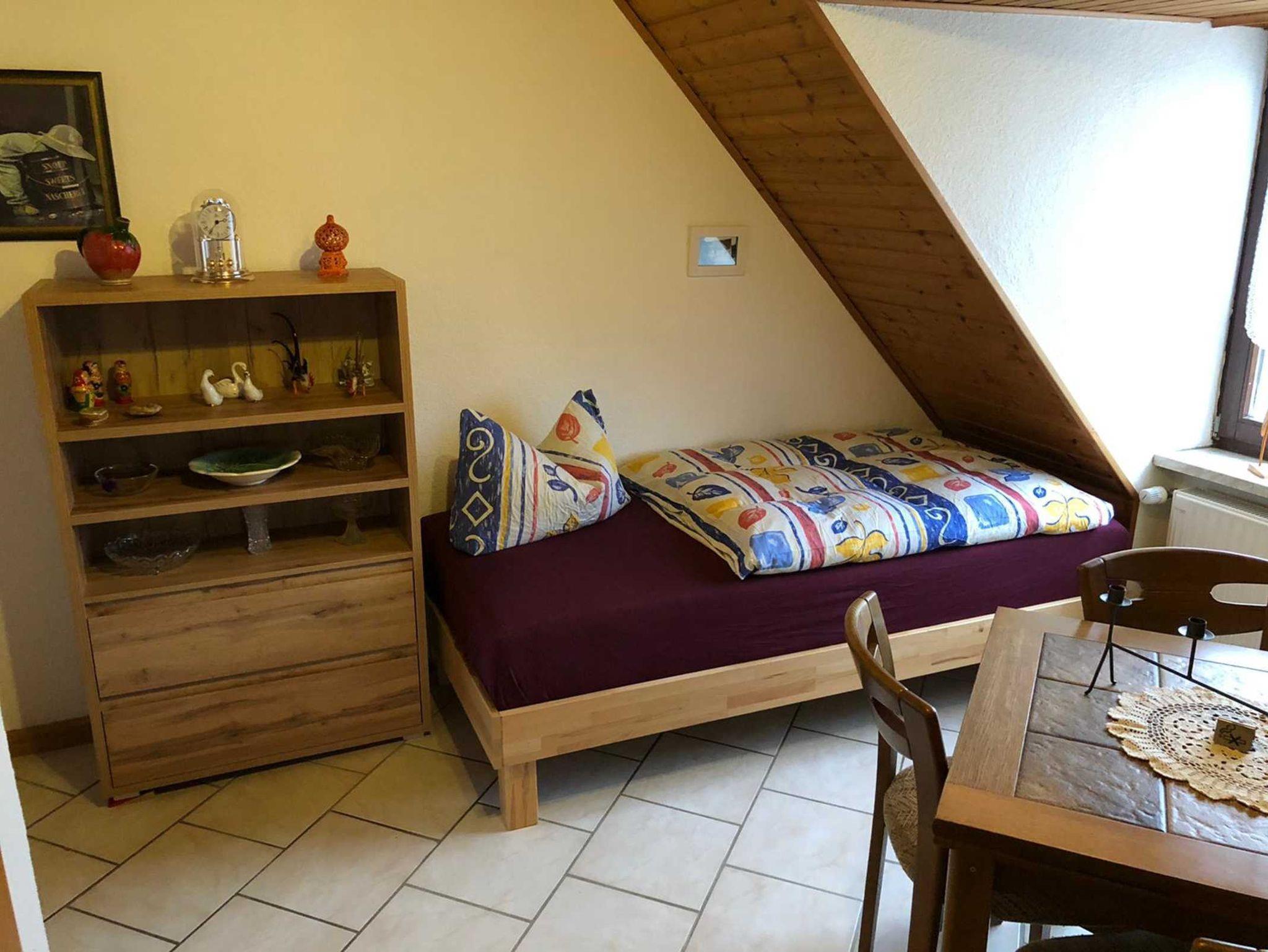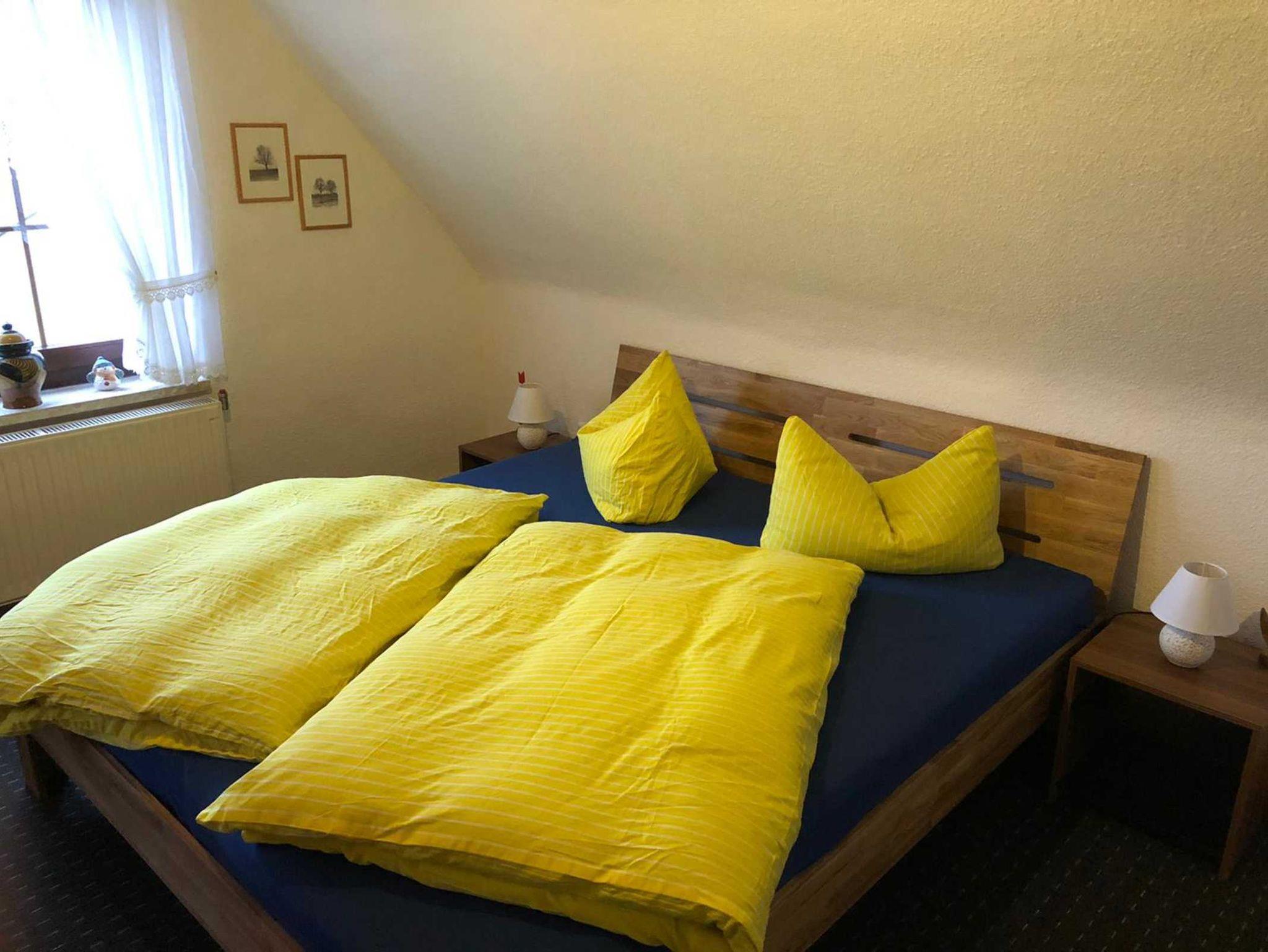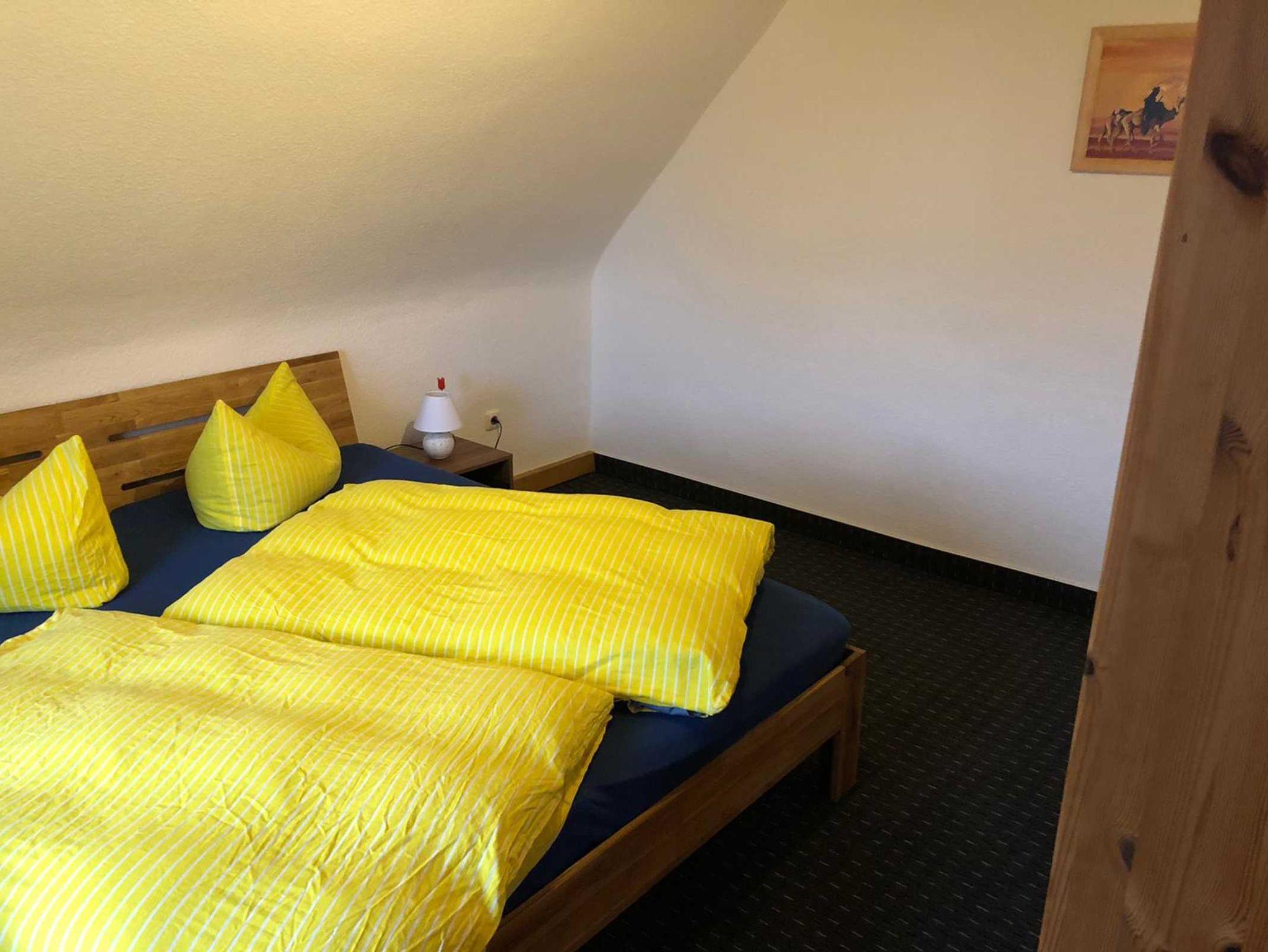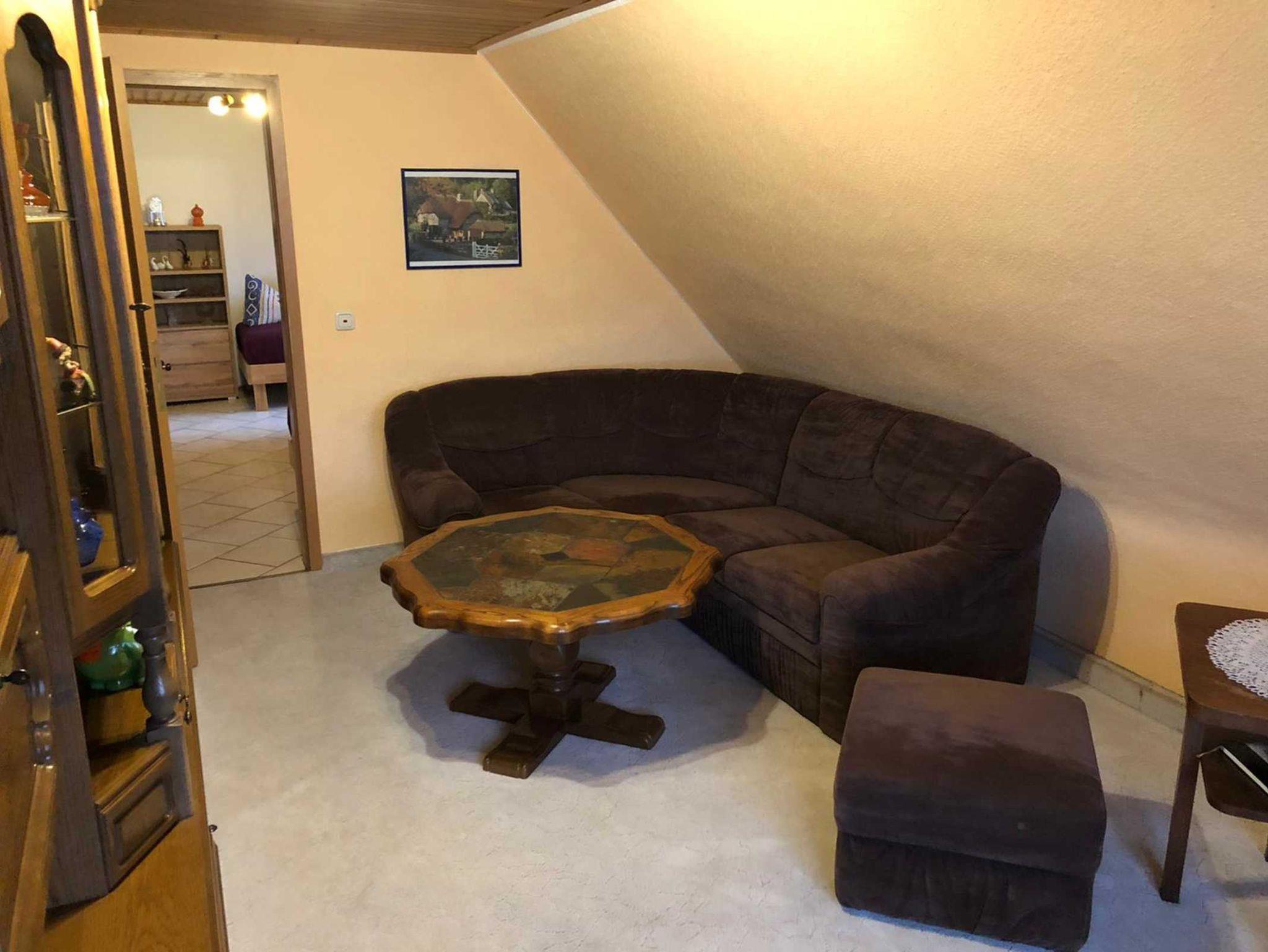 Die Ferienwohnung befindet sich in der oberen Etage im Haus des Vermieters. Sie ist 57 m² groß und familiengerecht eingerichtet. Sie besteht aus einem Wohnraum mit Sitzgruppe, Radio, TV, einem Schlafraum mit Doppelbett, einer Küche mit Sitzgruppe und einem Bad mit WC und Dusche. Eine Terrasse mit Grill und Gartenmöbel stehen zur Verfügung. Auf dem Hof befindet sich ein Pool (7mx4m, 1,20m tief), der genutzt werden kann. 1 Hund (Risthöhe 40 cm) ist erlaubt für 4,00 Euro pro Tag. Bettwäsche und Handtücher sind vorhanden. Fahrräder können für 4,00 Euro pro Tag ausgeliehen werden. Anreise ab 16.00 Uhr, Abreise bis 10.00 Uhr.