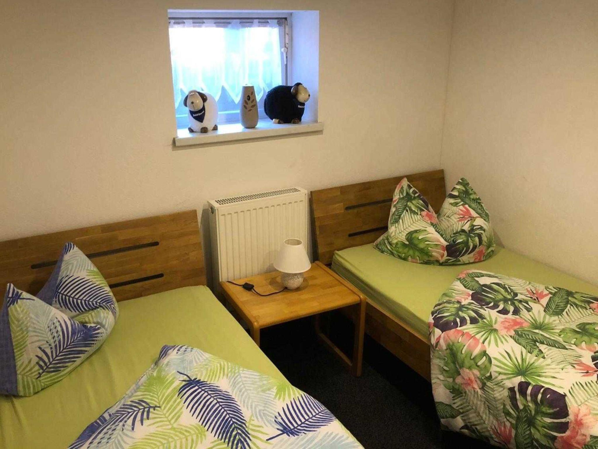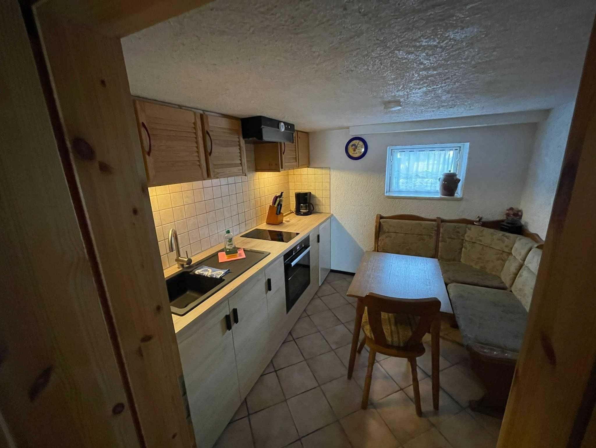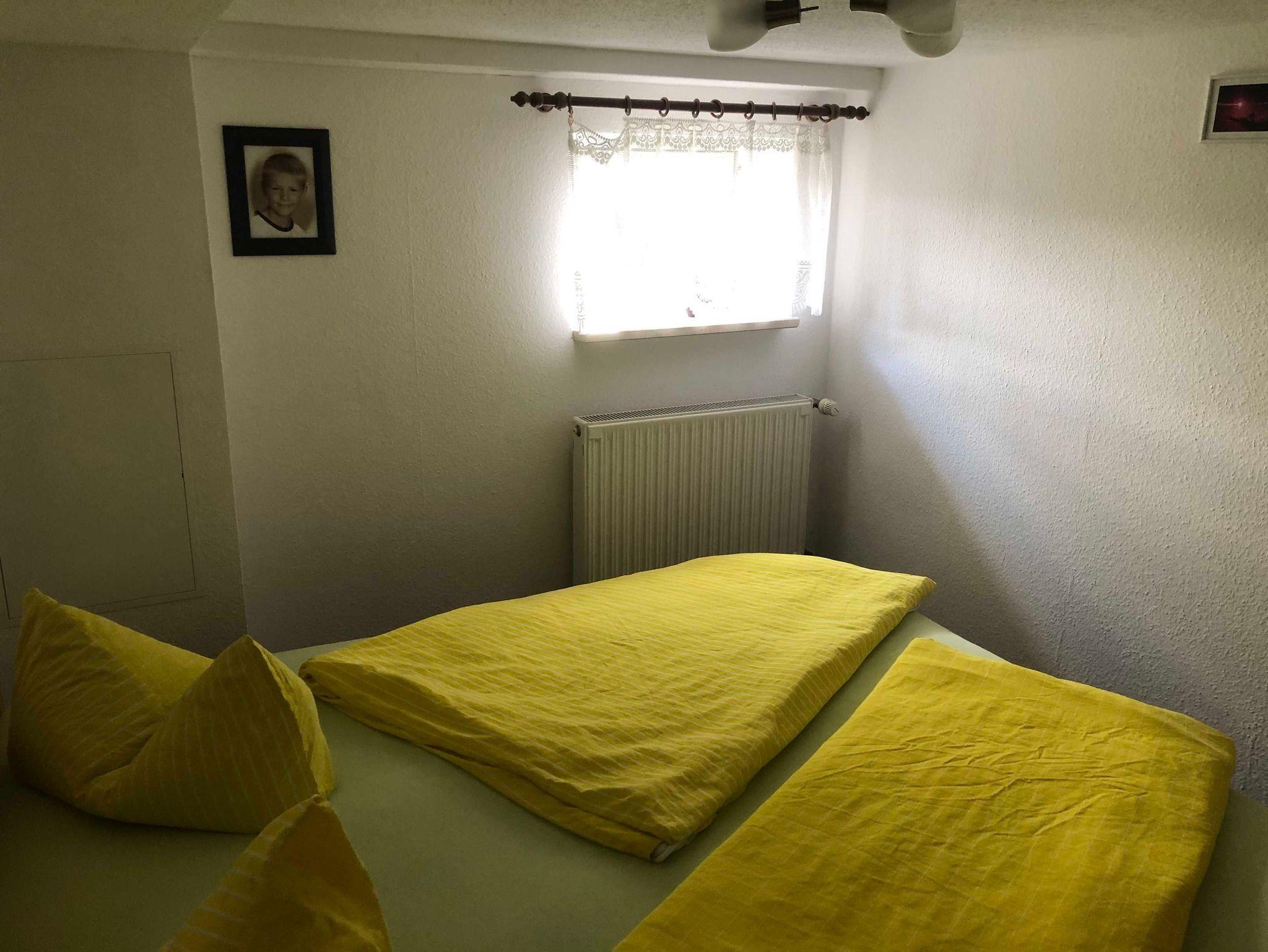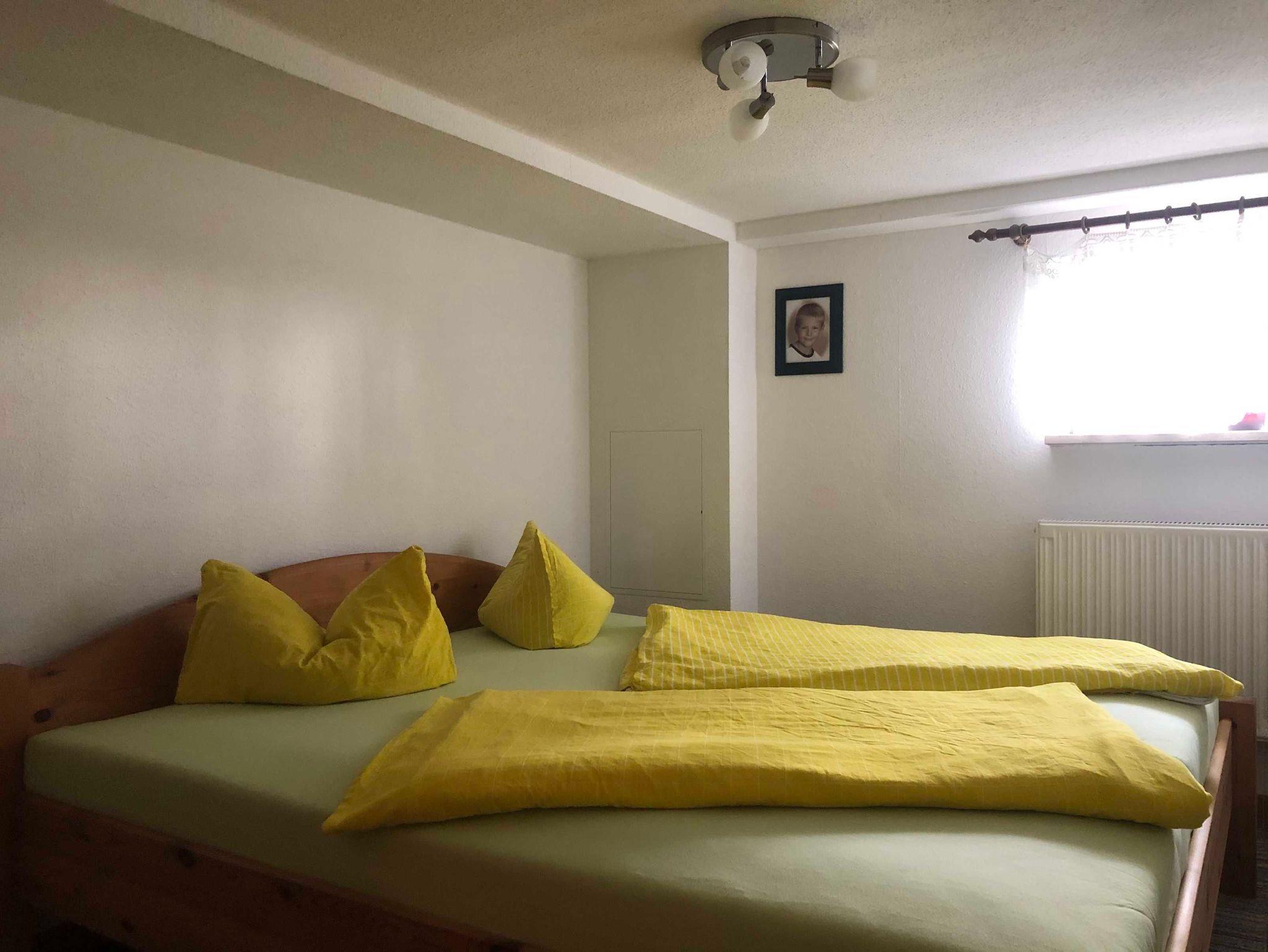 Die Ferienwohnung befindet sich im ausgebauten Keller des Wohnhauses des Vermieters und bietet auf ca. 48 m² ein familiengerechtes Urlaubsquartier mit praktischer Raumaufteilung. Sie verfügen über einen gemütlichen Wohnraum mit Sitzgruppe, TV und Radio - gut geeignet für entspannte Abende. Zwei separate Schlafzimmer sorgen für angenehme Rückzugsmöglichkeiten: eines mit Doppelbett und eines mit zwei Einzelbetten. In der Küche mit Sitzgruppe können Sie Mahlzeiten bequem einnehmen und Ihren Urlaubstag flexibel gestalten. Das Badezimmer ist mit Dusche und WC ausgestattet.