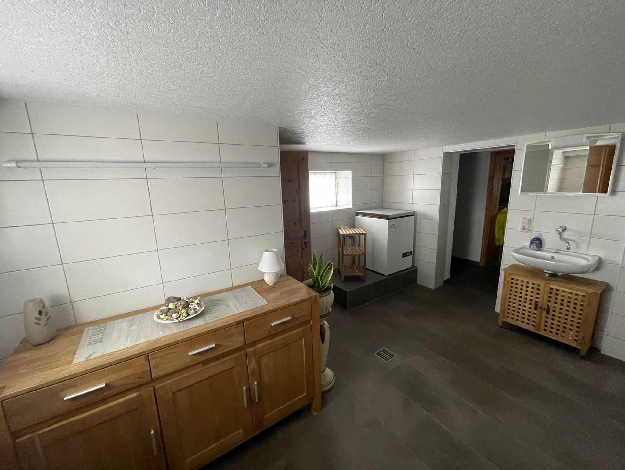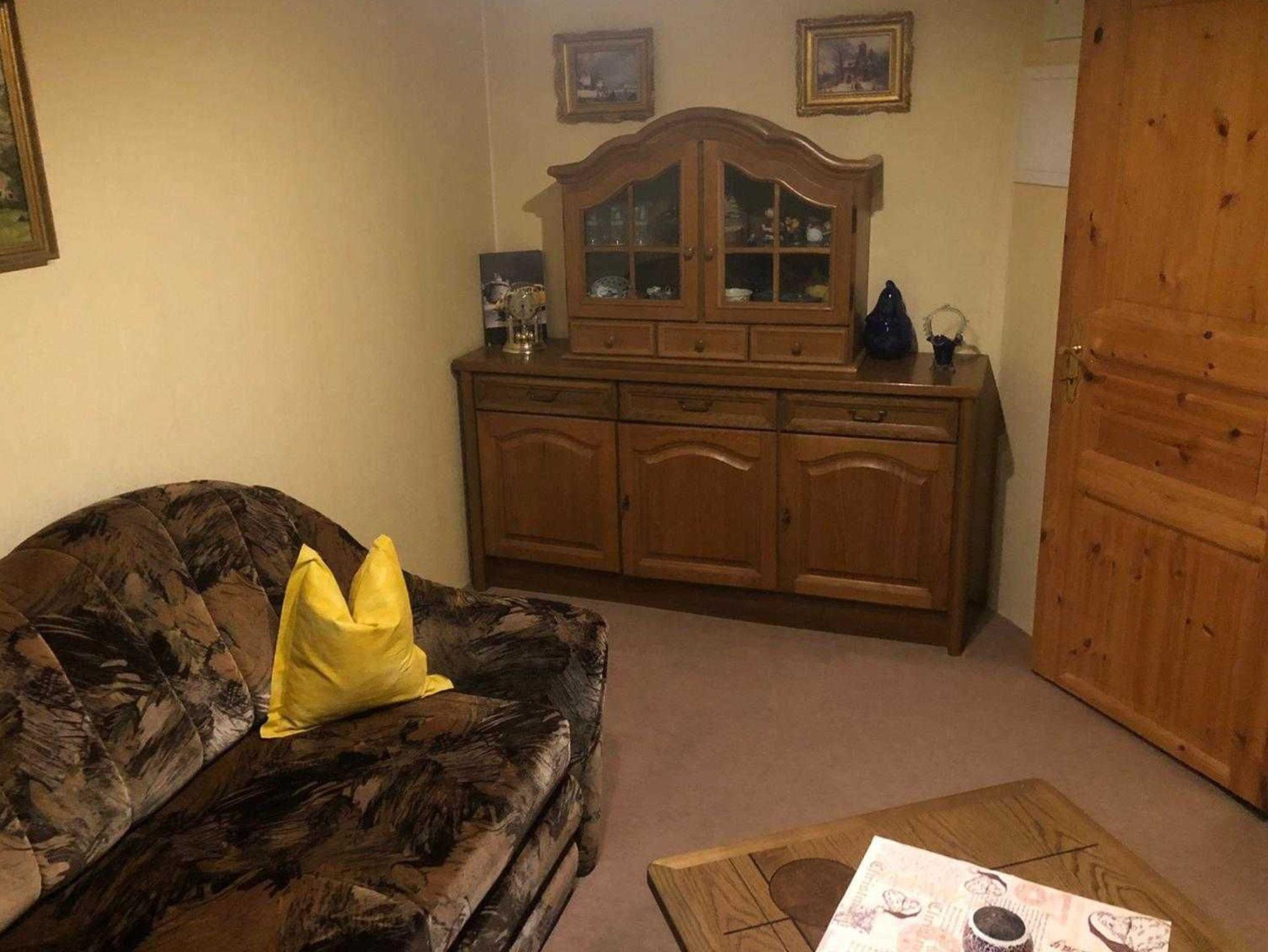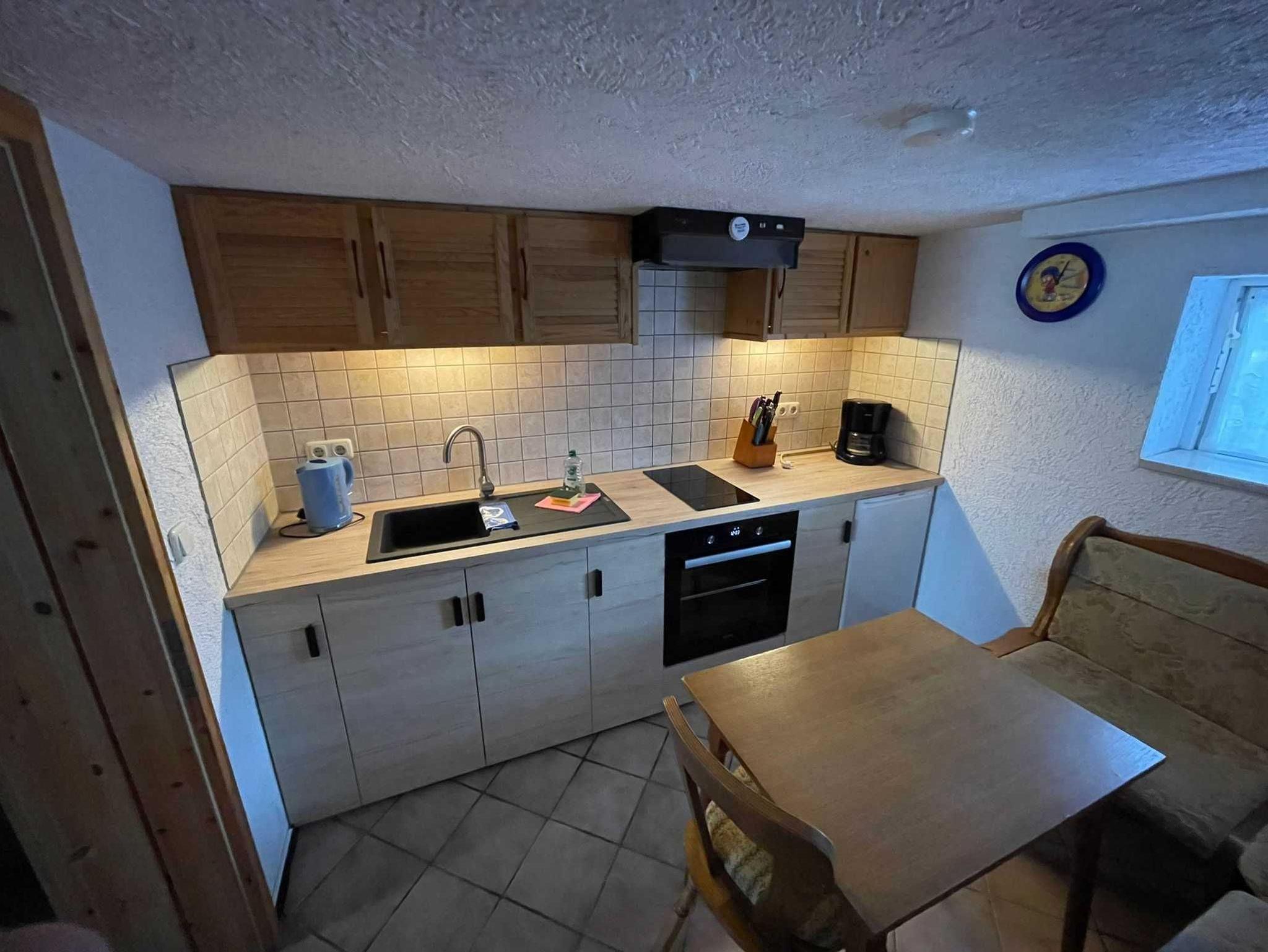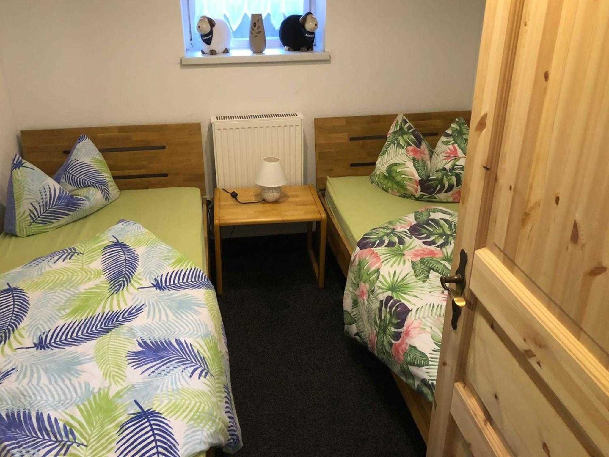 Die Ferienwohnung befindet sich im ausgebauten Keller des Wohnhauses des Vermieters und bietet auf ca. 48 m² ein familiengerechtes Urlaubsquartier mit praktischer Raumaufteilung. Sie verfügen über einen gemütlichen Wohnraum mit Sitzgruppe, TV und Radio - gut geeignet für entspannte Abende. Zwei separate Schlafzimmer sorgen für angenehme Rückzugsmöglichkeiten: eines mit Doppelbett und eines mit zwei Einzelbetten. In der Küche mit Sitzgruppe können Sie Mahlzeiten bequem einnehmen und Ihren Urlaubstag flexibel gestalten. Das Badezimmer ist mit Dusche und WC ausgestattet.