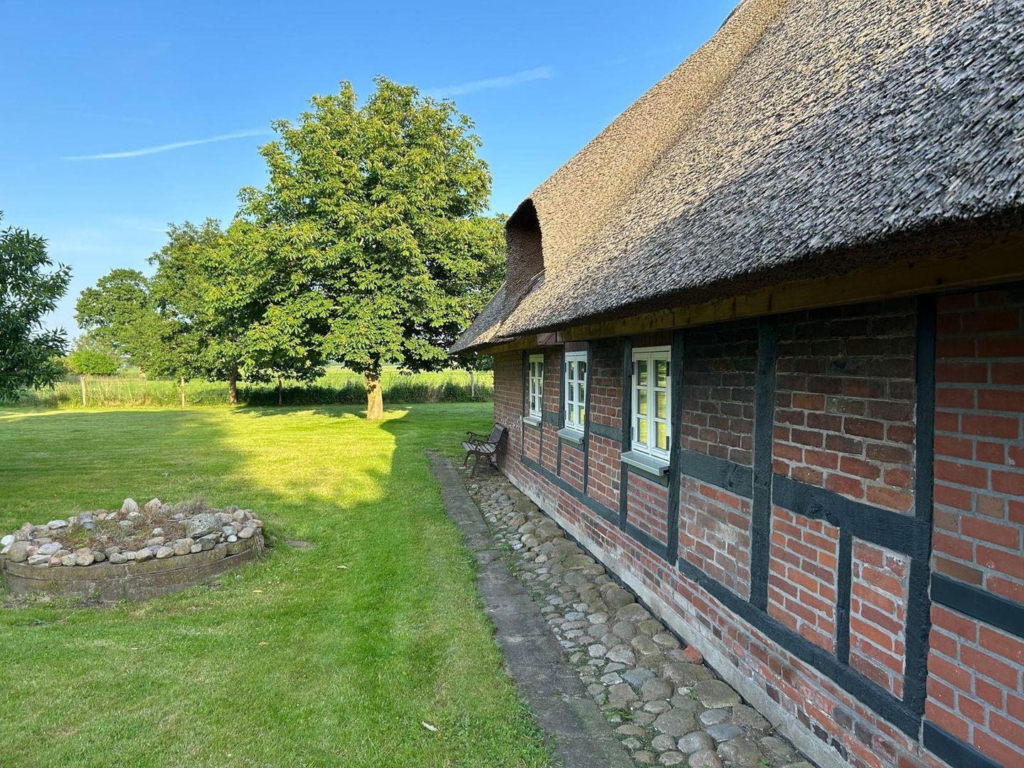 Romantisches Cottage unter Reet inmitten der Natur