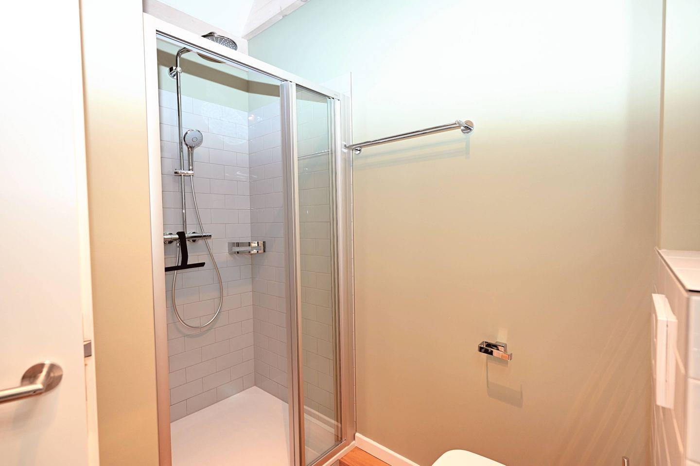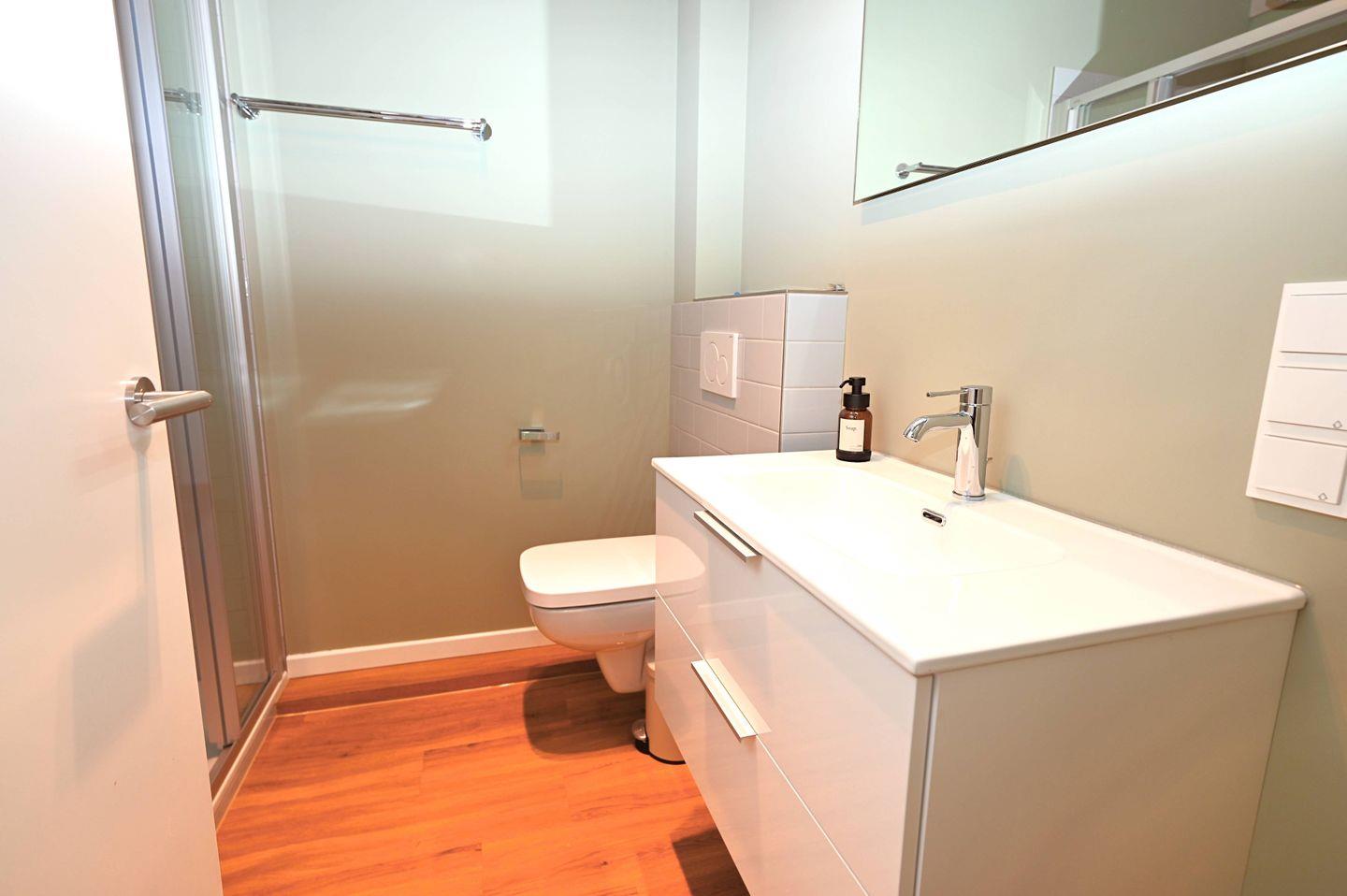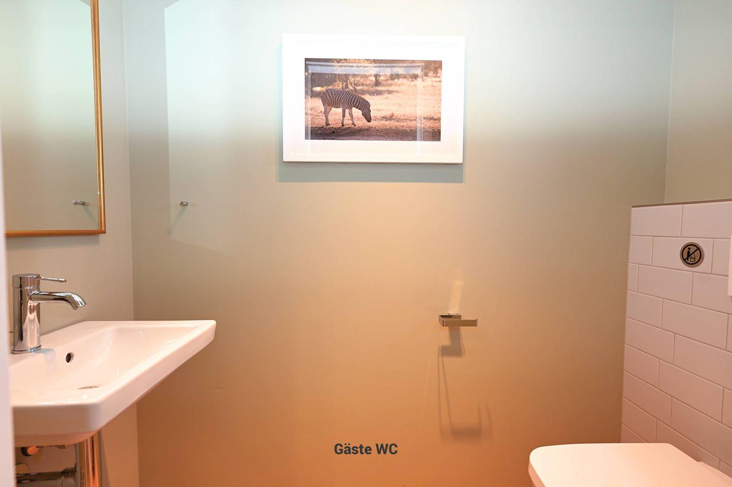 Das Badezimmer ist mit einer bodengleichen Dusche, Waschbecken, WC, Spiegel und Haartrockner ausgestattet. Warmes Wasser ist selbstverständlich vorhanden. Zusätzlich bietet das Gäste-WC mehr Komfort, insbesondere bei einer Belegung mit mehreren Personen. Eine Waschmaschine zur Eigennutzung, Wäscheständer, Staubsauger sowie weitere praktische Ausstattungsmerkmale erleichtern auch längere Aufenthalte.
