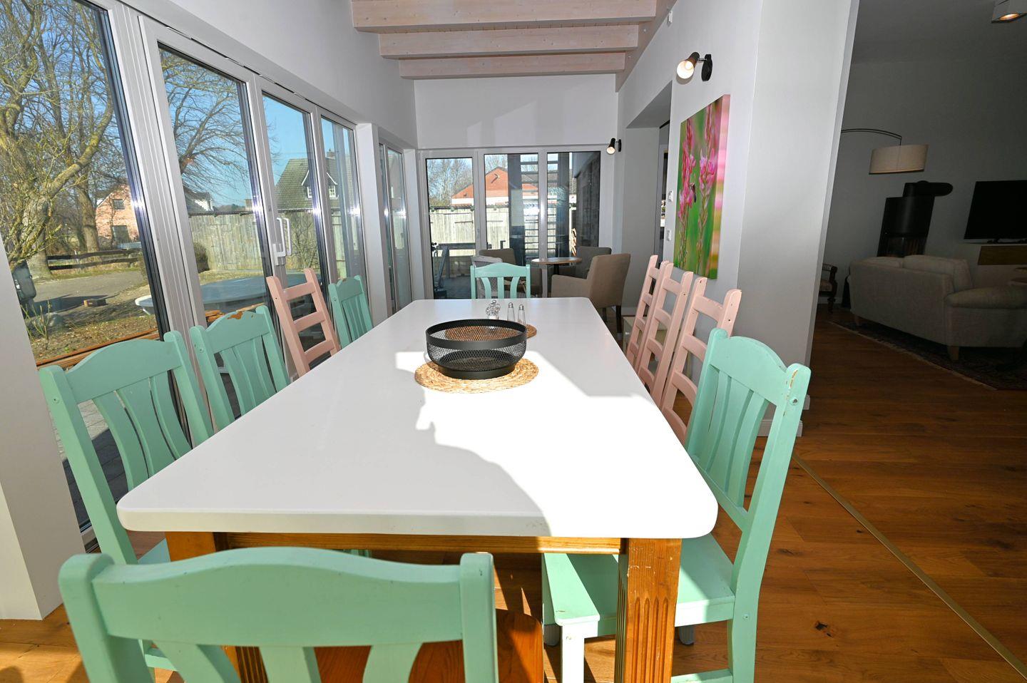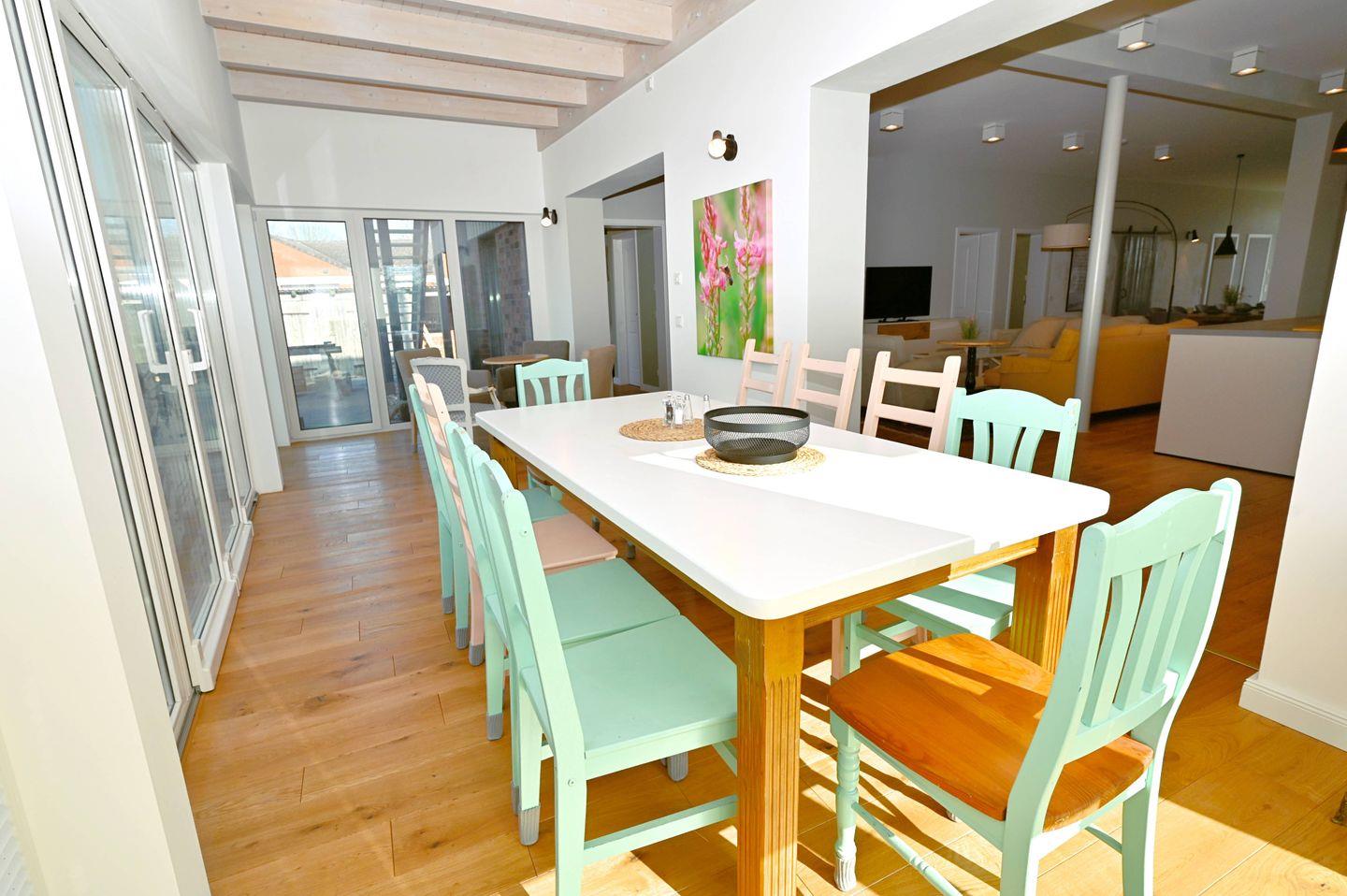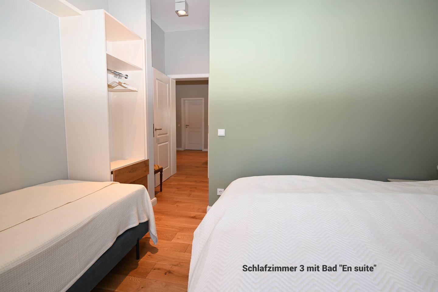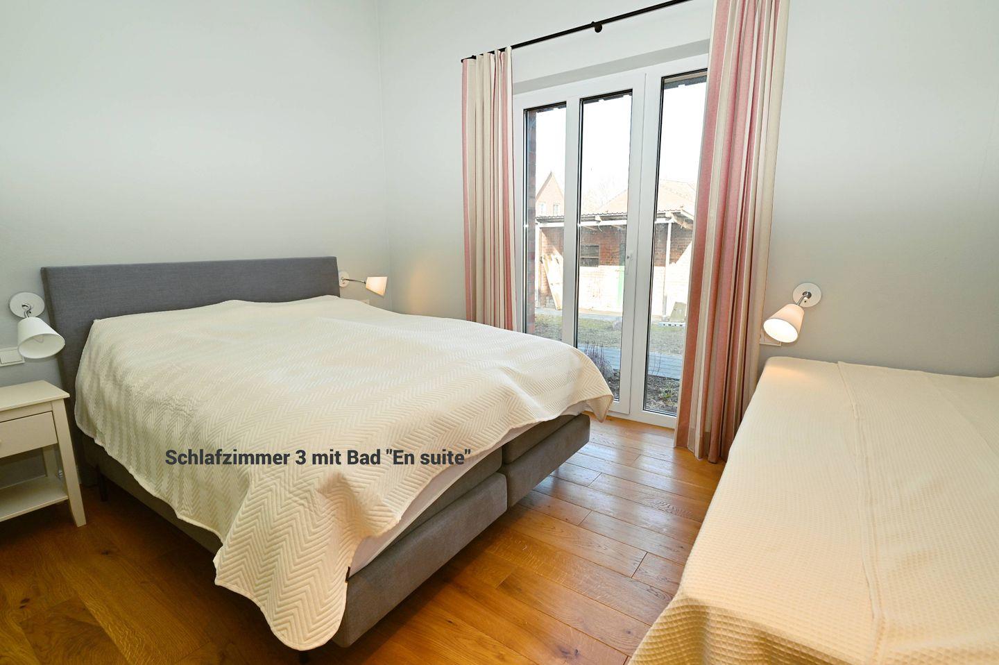 Die großzügige Residenz R1 App 5 bietet auf 350 m² viel Platz für bis zu 8 Gäste. 4 Schlafzimmer, 4 Badezimmer und ein Gäste-WC sorgen für hohen Komfort. Offene Küche zum Wohnzimmer, Terrasse, Garten mit Gartenmöbeln und Gasgrill sowie Kaminofen schaffen ein angenehmes Wohngefühl. Nur 1200 m bis zum Sandstrand, mit 3 kostenlosen Privatparkplätzen, WLAN und E-Auto-Ladestation.
