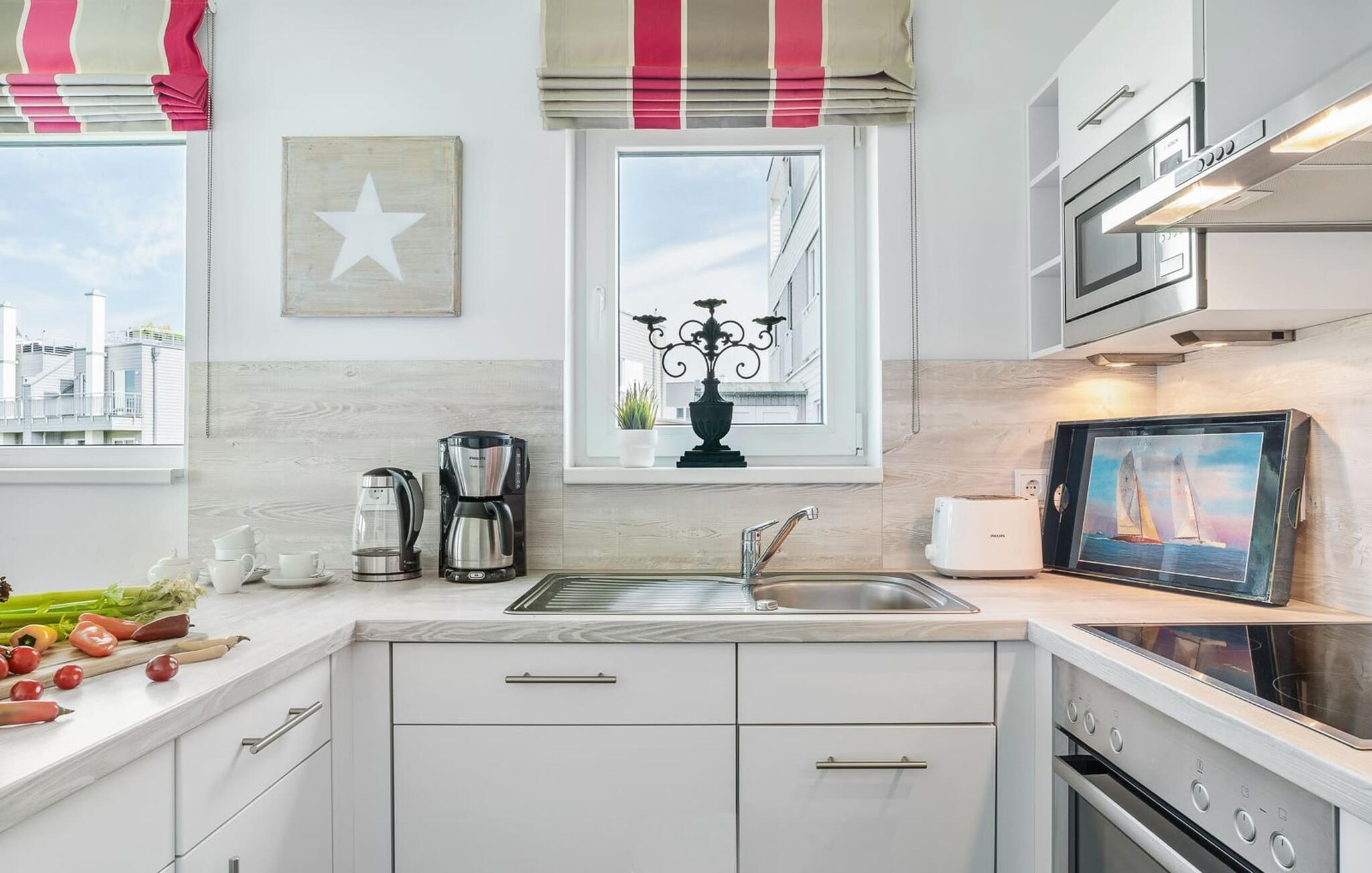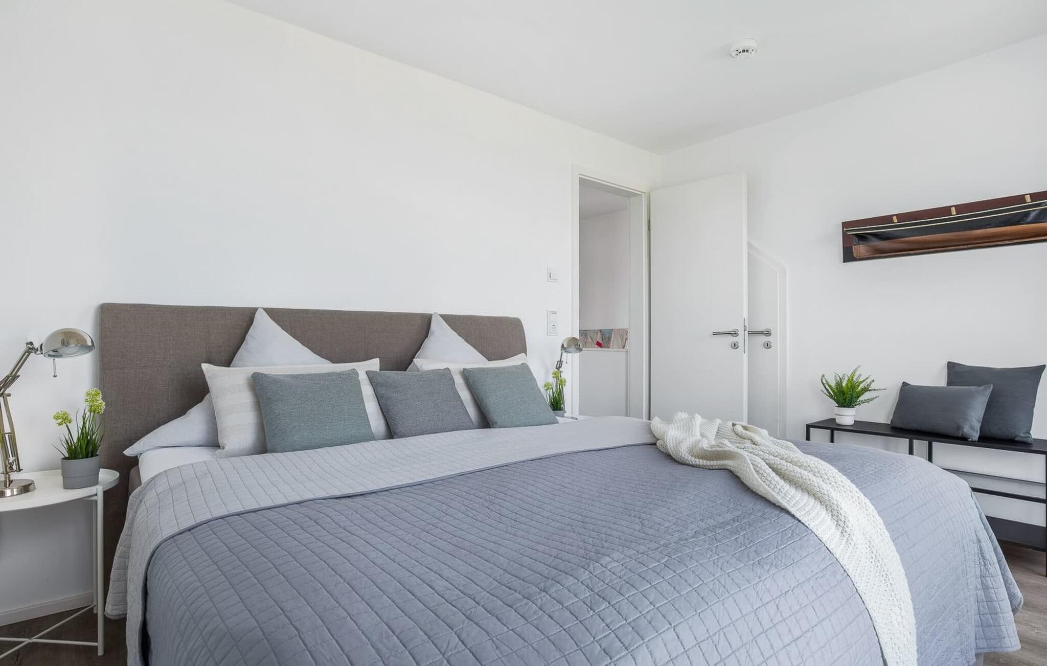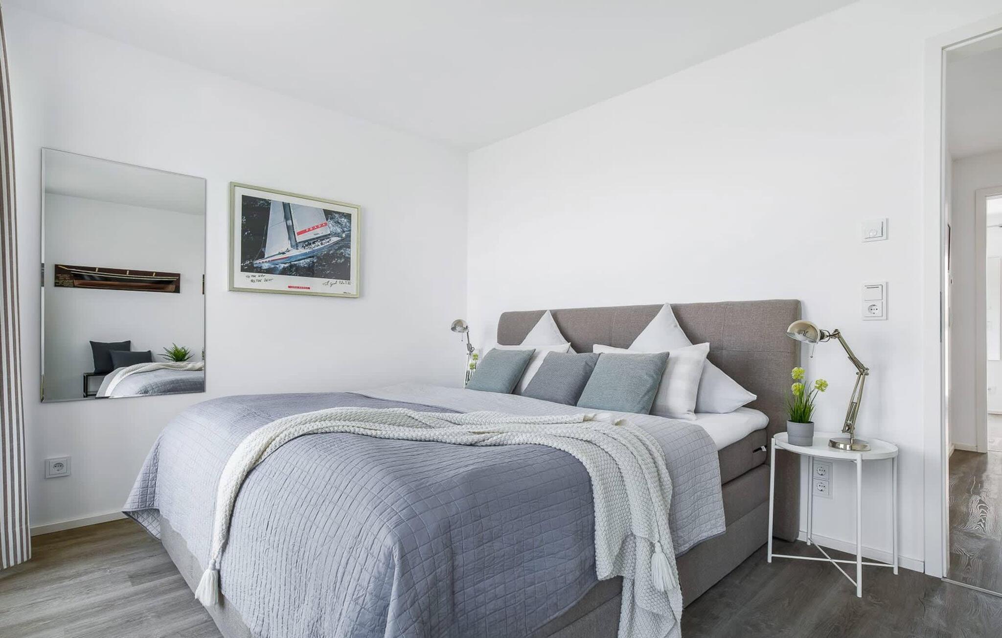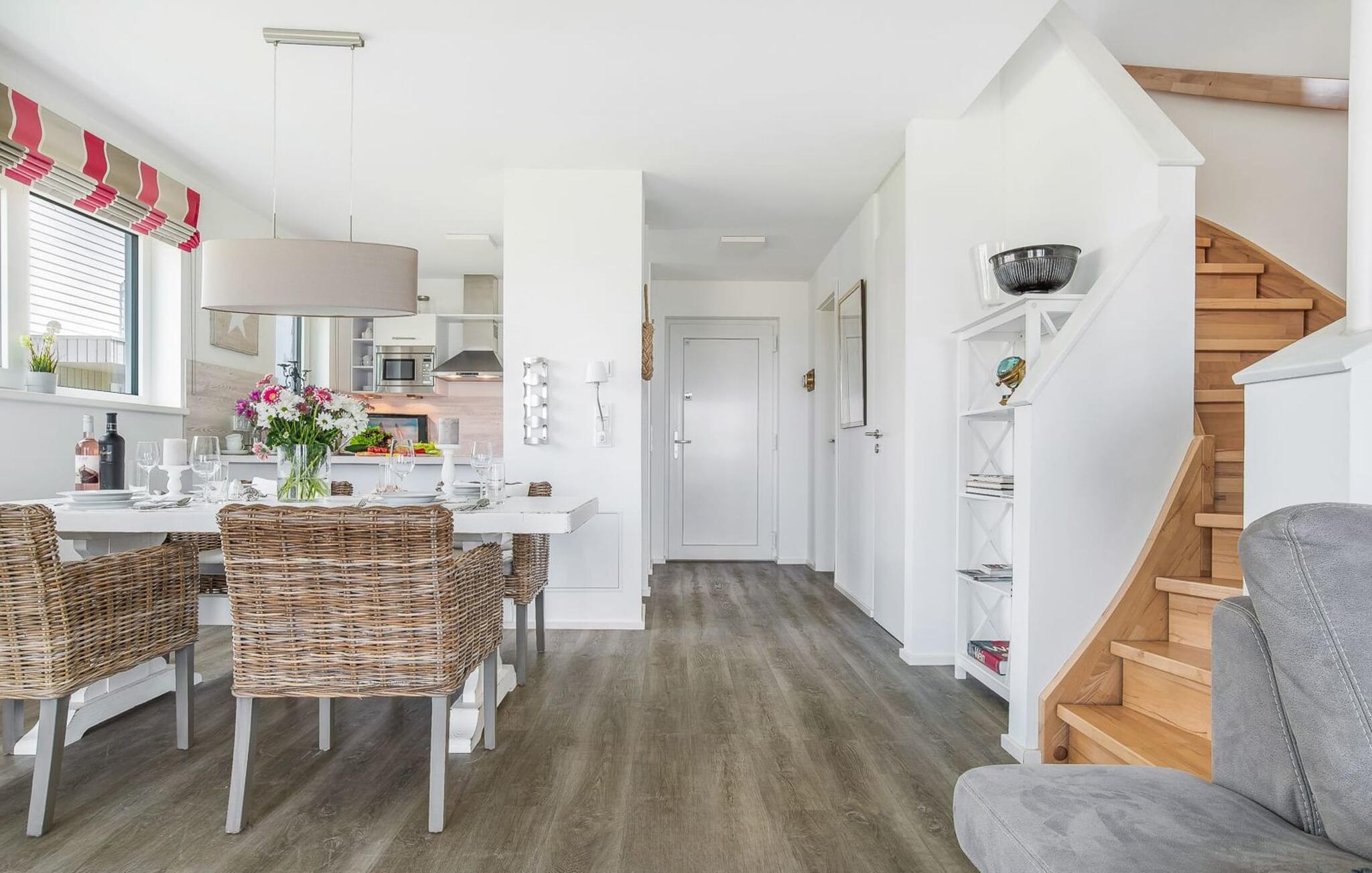 Offen gestaltet befindet sich die Küche direkt angrenzend an den Wohnbereich und lässt dank umfangreicher Ausstattung keine Wünsche offen. Im Obergeschoss werden Träume wahr, denn im Hauptschlafzimmer darf der Gast aufwachen und einschlafen bei atemberaubendem Schleiblick. Morgens bietet das Schleiufer ein wahres Naturspektakel. Wenn die Enten und Schwäne aufwachen, lässt sich der Tag auf der an das Schlafzimmer angrenzenden Terrasse beginnen. Ein weiteres Schlafzimmer bietet Platz für zwei weitere Erwachsene.