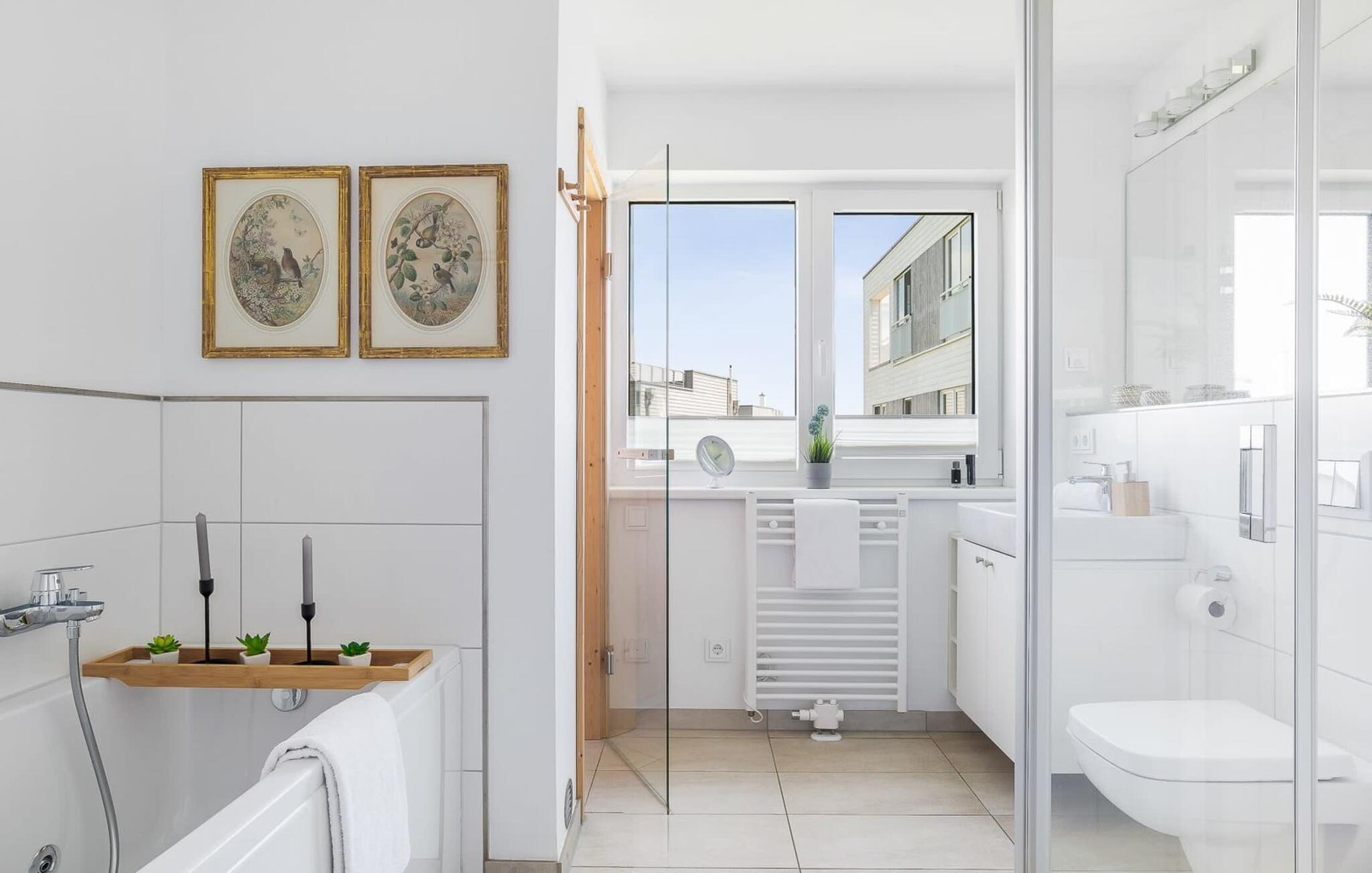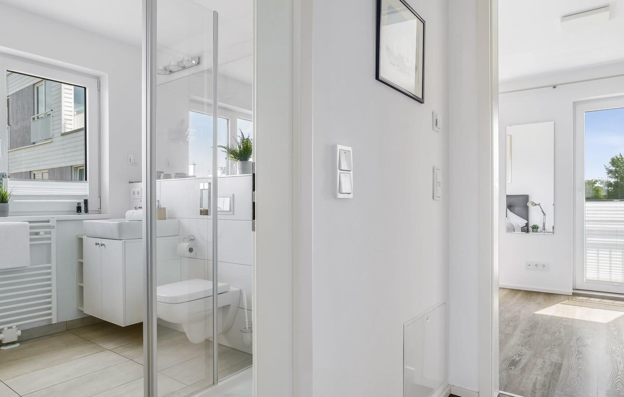machen dieses Bad zum privaten Wohlfühlbereich. Für zusätzlichen Komfort sorgt ein weiteres Duschbad im Erdgeschoss.