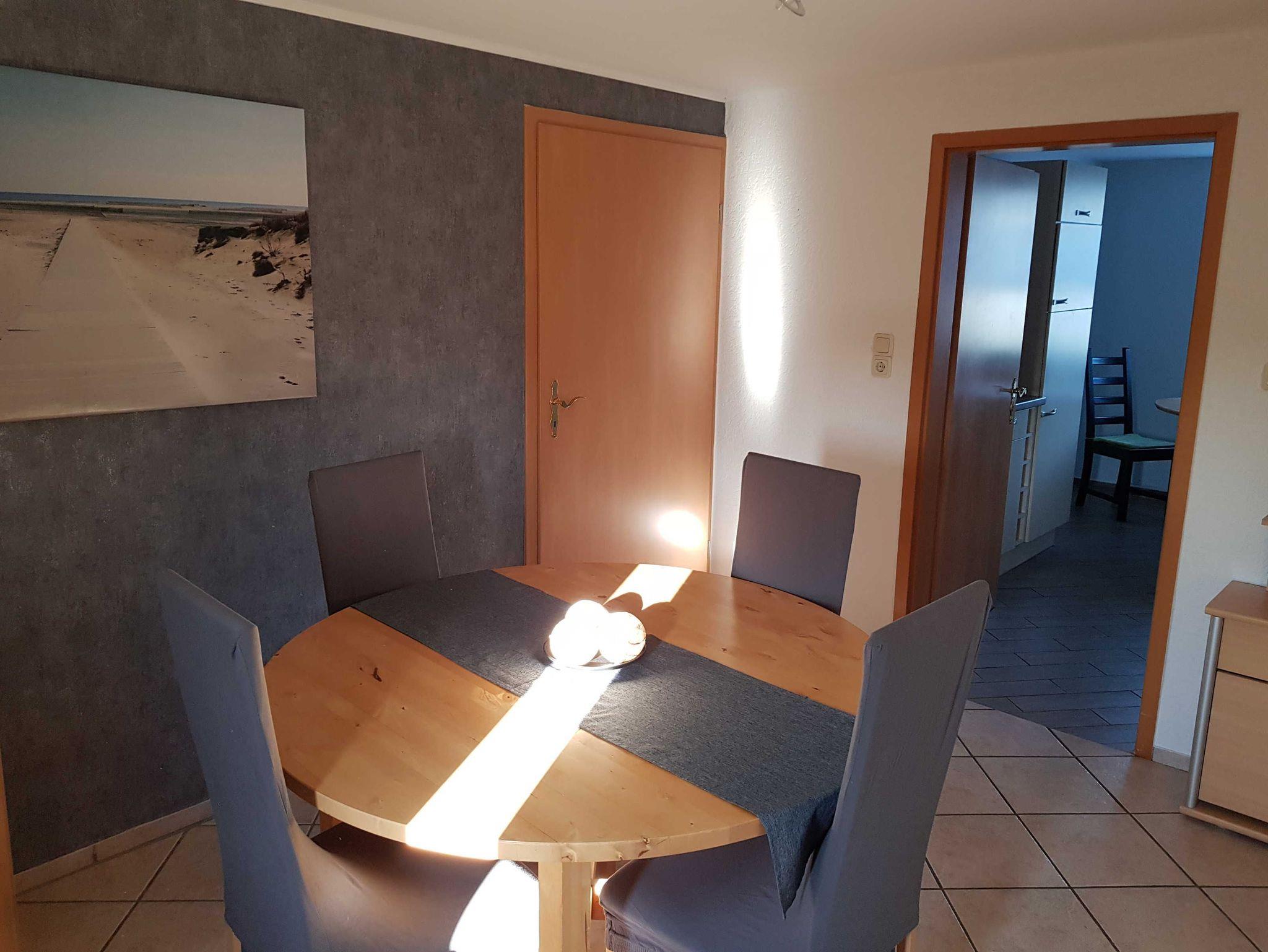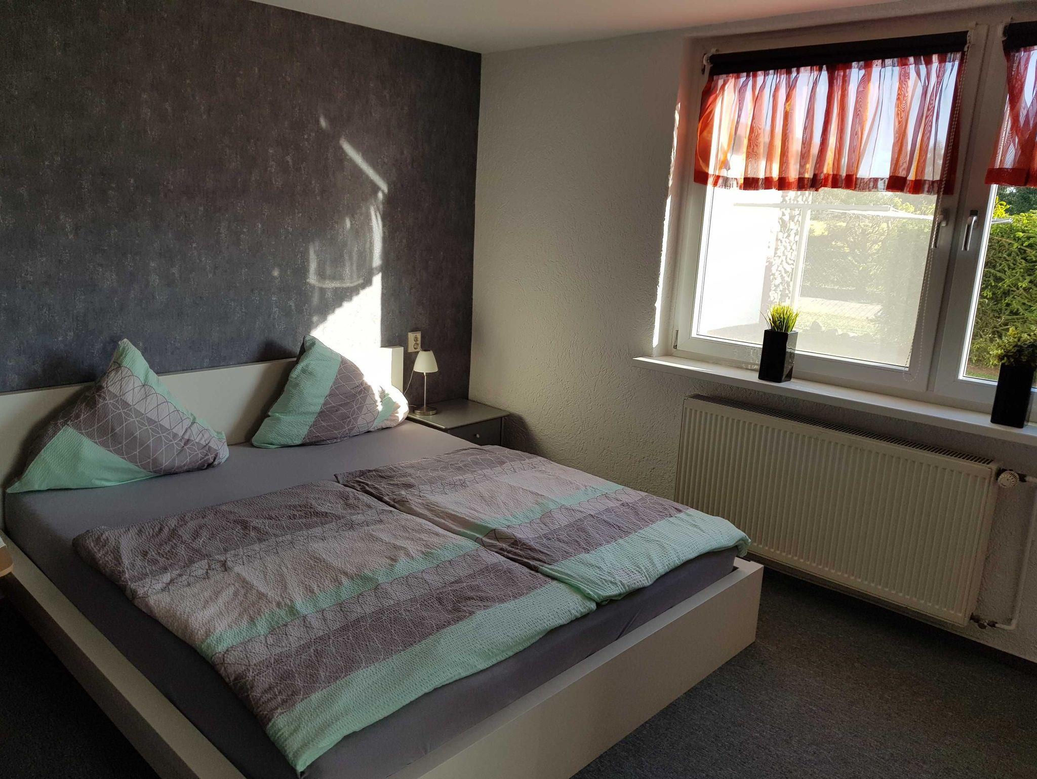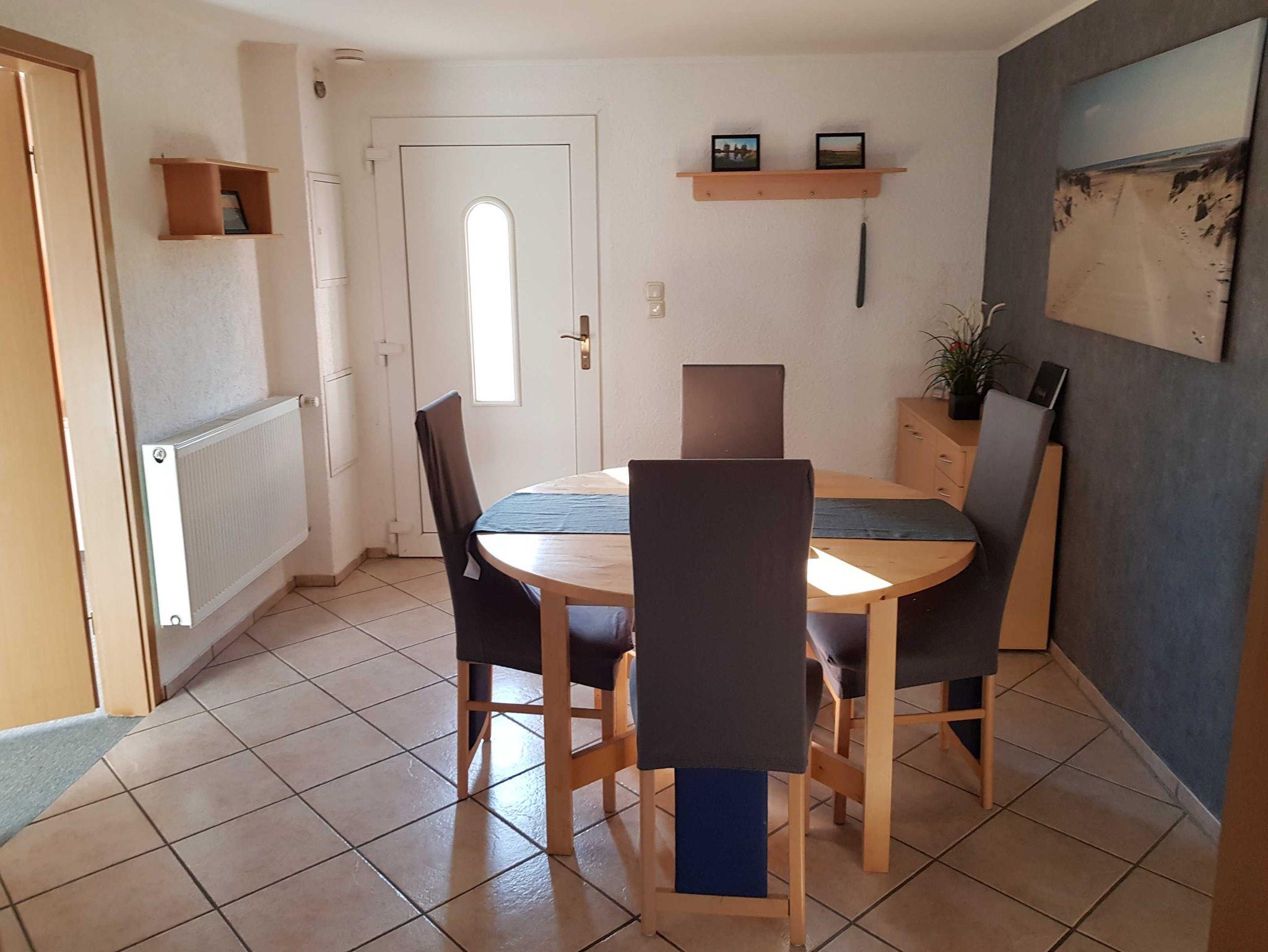 Die 64 m² große Ferienwohnung befindet sich im Erdgeschoss als Einliegerwohnung im Haus des Vermieters und bietet flexible Schlafmöglichkeiten für 1 bis 5 Personen. Durch die praktische Aufteilung eignet sie sich sowohl für Familien als auch für berufliche Aufenthalte. Die Wohnung umfasst zwei separate Räume, einen großen Flur mit Sitzecke, eine große Einbauküche mit Sitzbereich sowie ein Badezimmer.