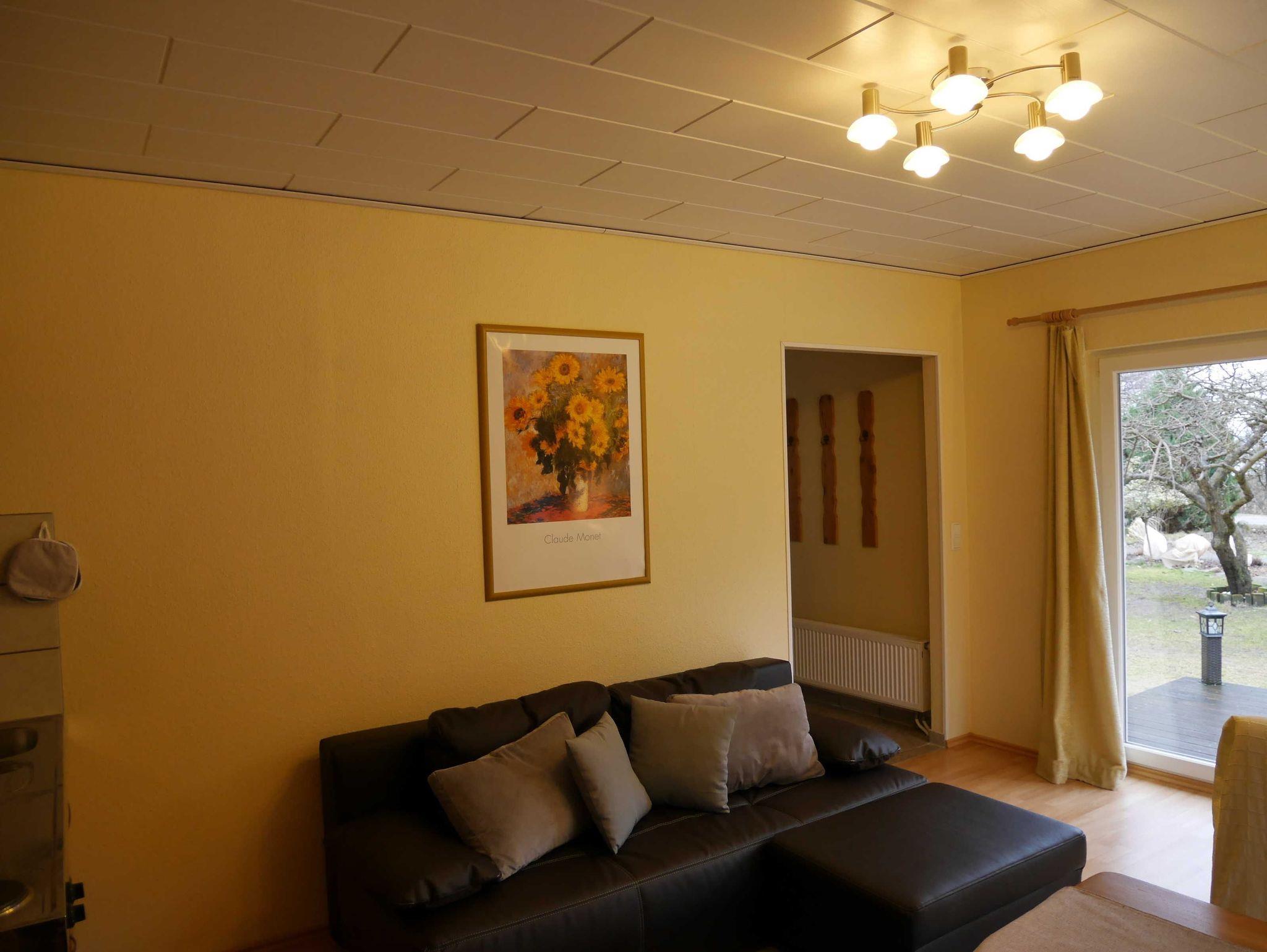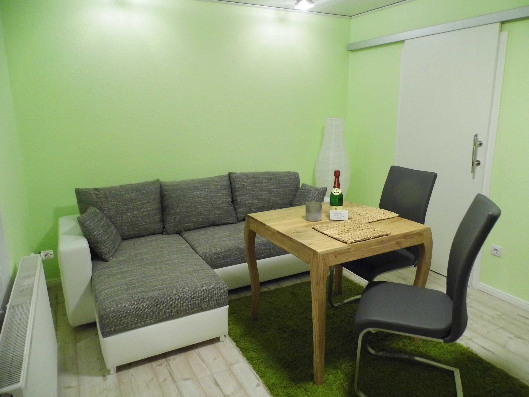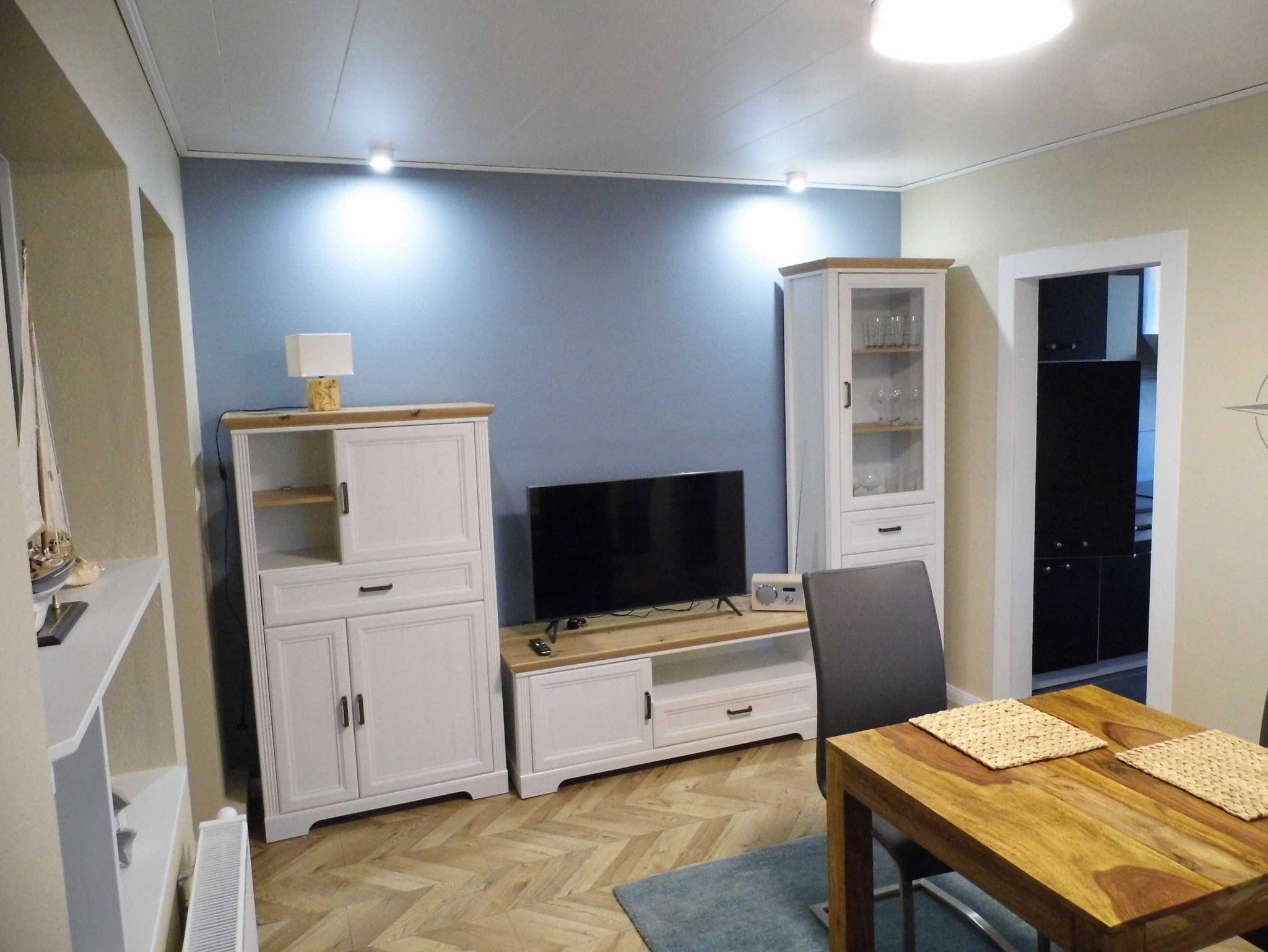 Moderner Wohnraum ausgestattet mit Sat/TV/DAB-Radio, W-LAN, sowie Schlafcouch.