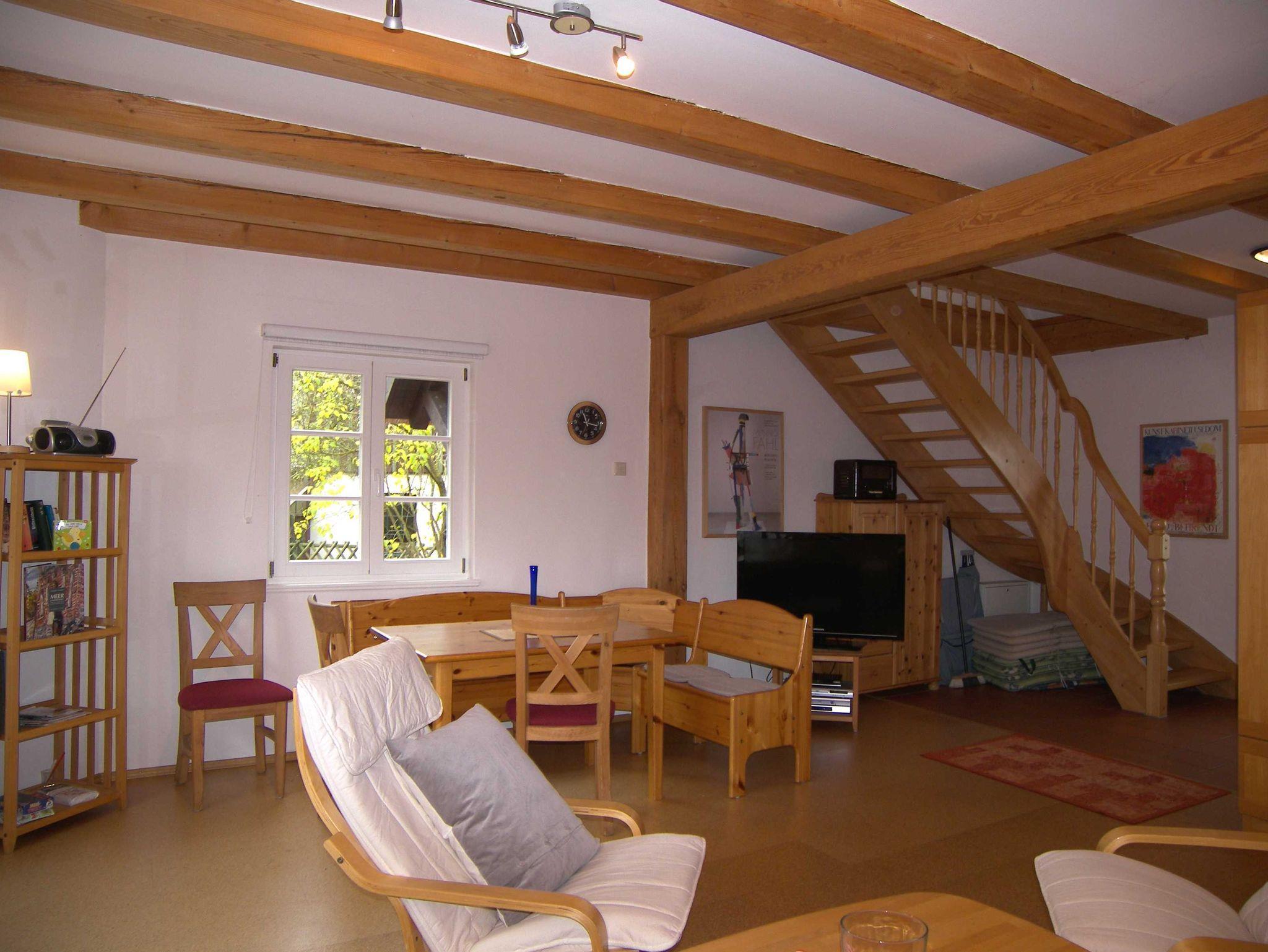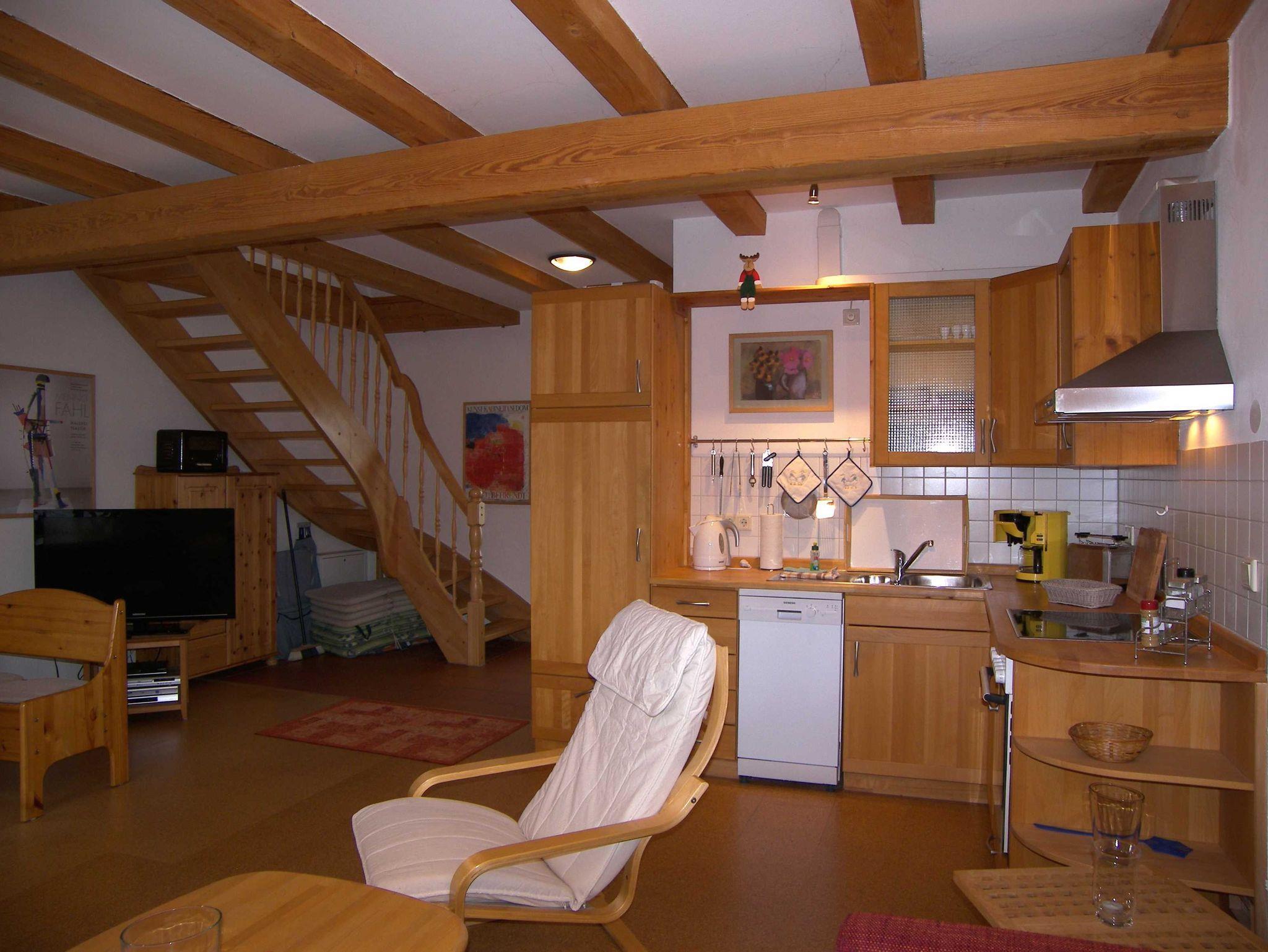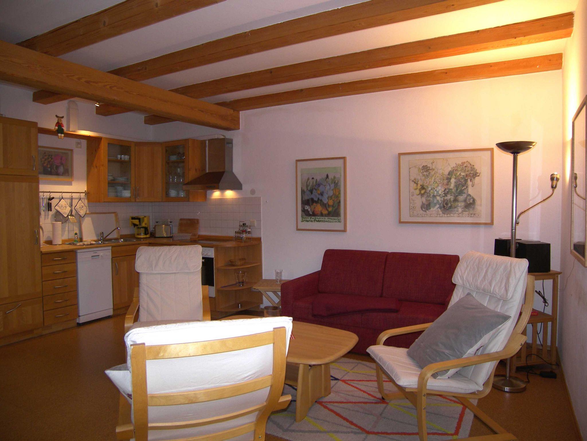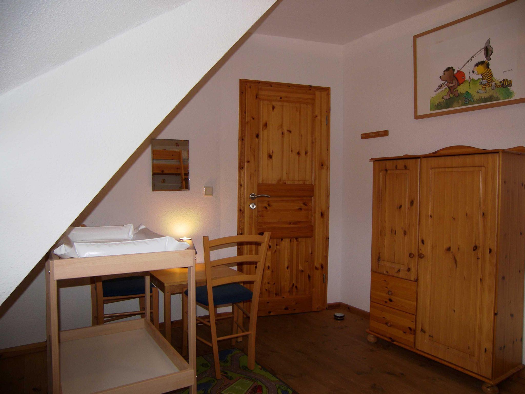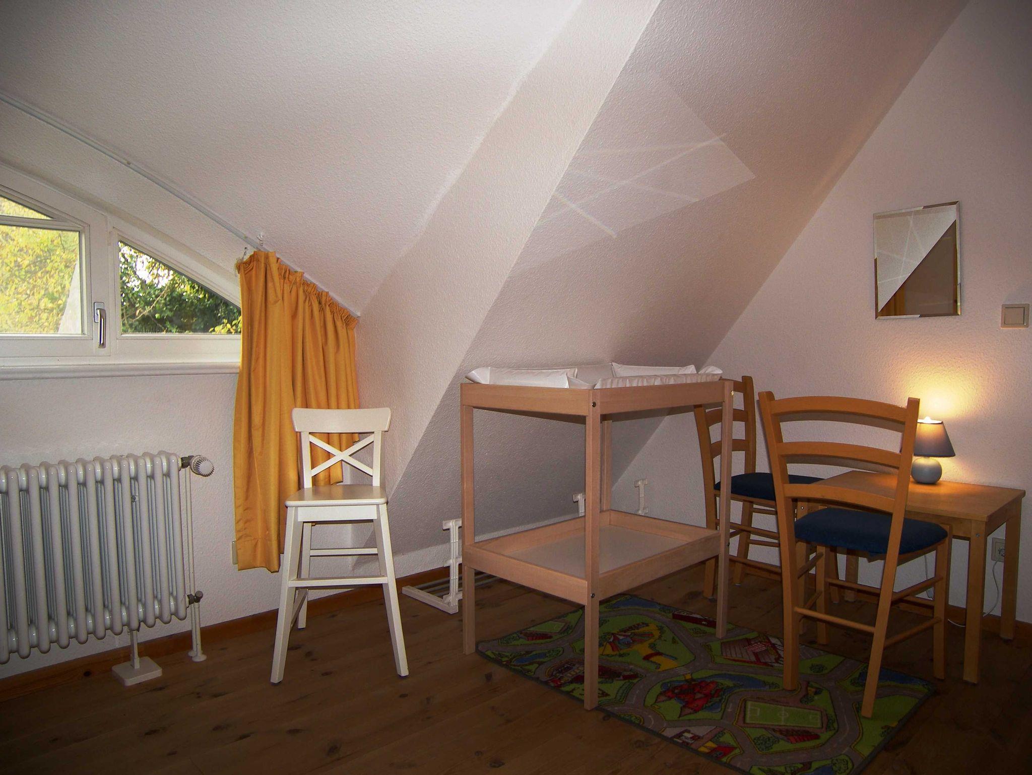 Die geschmackvoll eingerichtete Haushälfte bietet Ihnen ein komfortables Urlaubsziel. Im Erdgeschoss finden Sie den Wohnbereich mit einer komplett ausgestatteten Küchenzeile mit Backofen, Spülmaschine, Kühlschrank mit Gefrierfach, Mikrowelle, Kaffeemaschine, Wasserkocher und Toaster sowie das Badezimmer mit Dusche und WC. Vom Wohnbereich gelangen Sie auf die Terrasse. Das Schlafzimmer mit Doppelbett, ein schönes Kinderzimmer mit Etagenbett und ein separates Gäste-WC befinden sich im Obergeschoss. Als Aufbettungsmöglichkeit steht im Wohnzimmer eine bequeme Schlafcouch für die 5. Person bereit. Ein Kinderreisebett passt zusätzlich ins Schlafzimmer. Wickeltisch, Hochstuhl und Reisebettchen können bei Bedarf zur Verfügung gestellt werden.