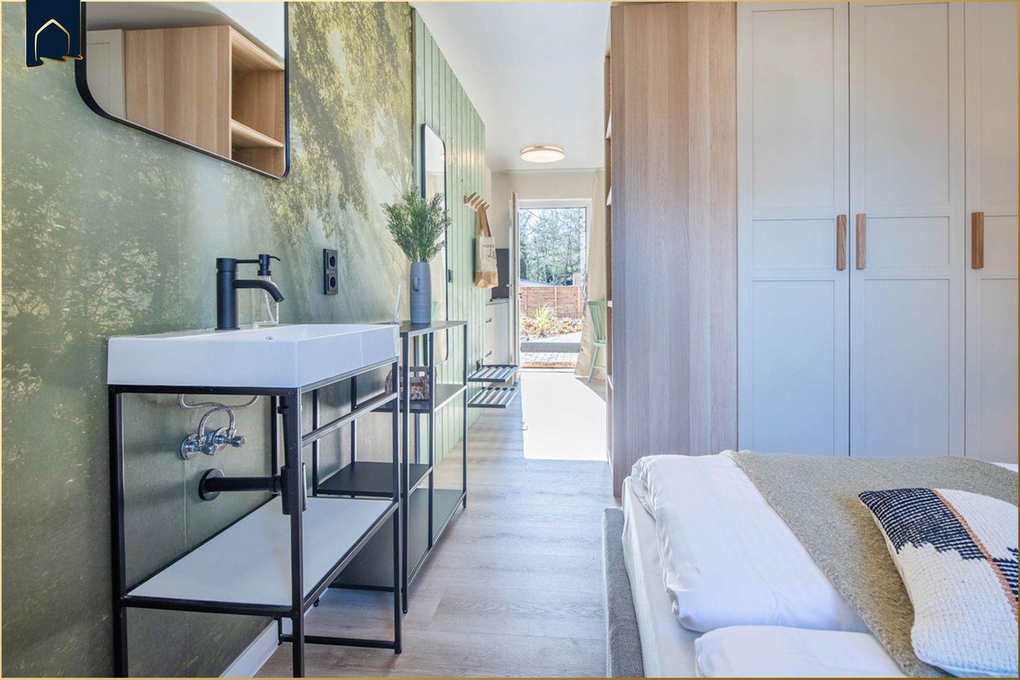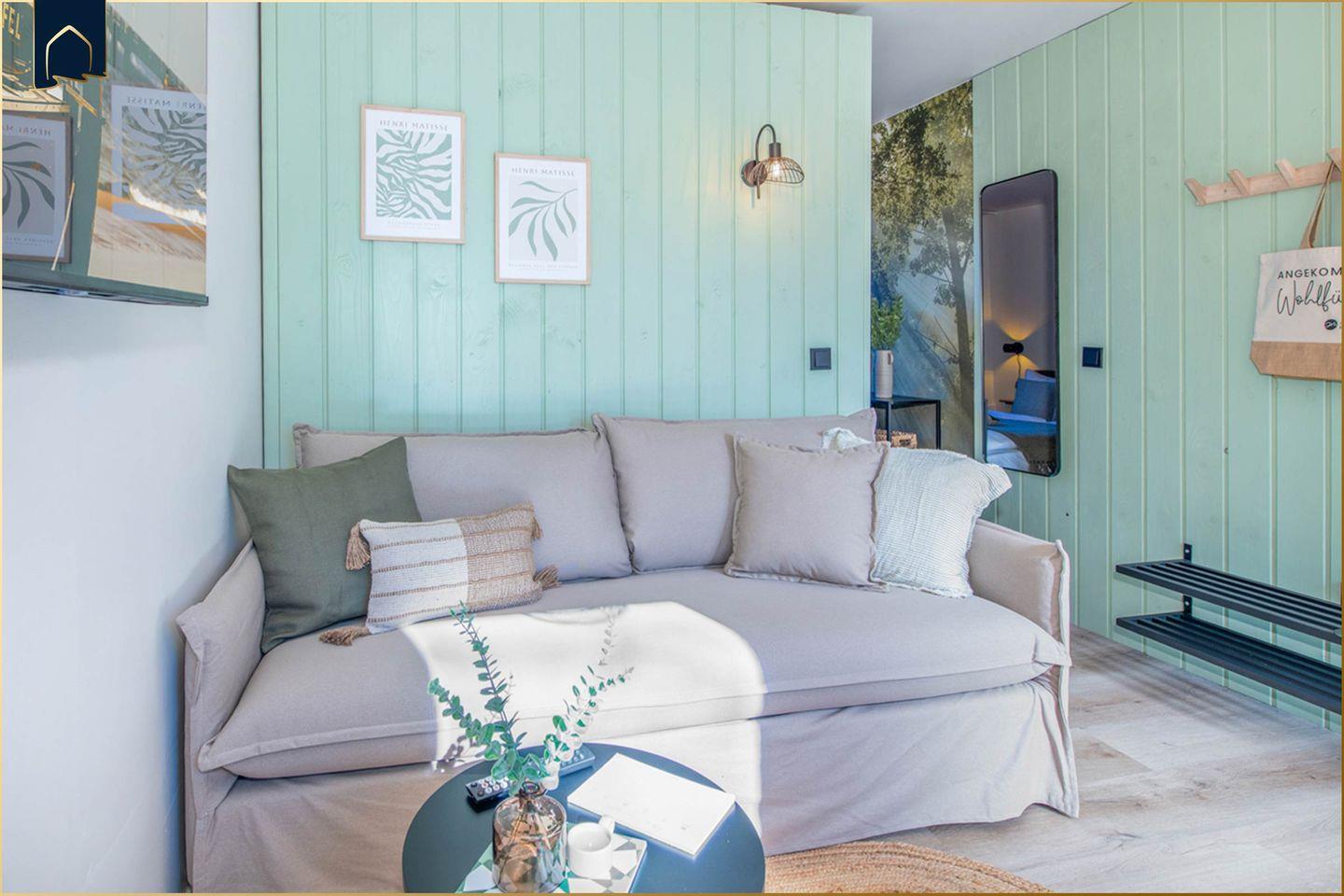 Green Village kleine Koje Benz bietet Ihnen auf 30 m² eine komfortable Unterkunft im Erdgeschoss mit offenem Wohn- und Küchenbereich, überdachter Terrasse und Garten. Zur Ausstattung zählen WLAN, Spülmaschine und moderner TV. Kinder sowie ein Haustier sind willkommen. Ein Privatparkplatz steht zur Verfügung, die Umgebung lädt zu zahlreichen Freizeitaktivitäten ein.