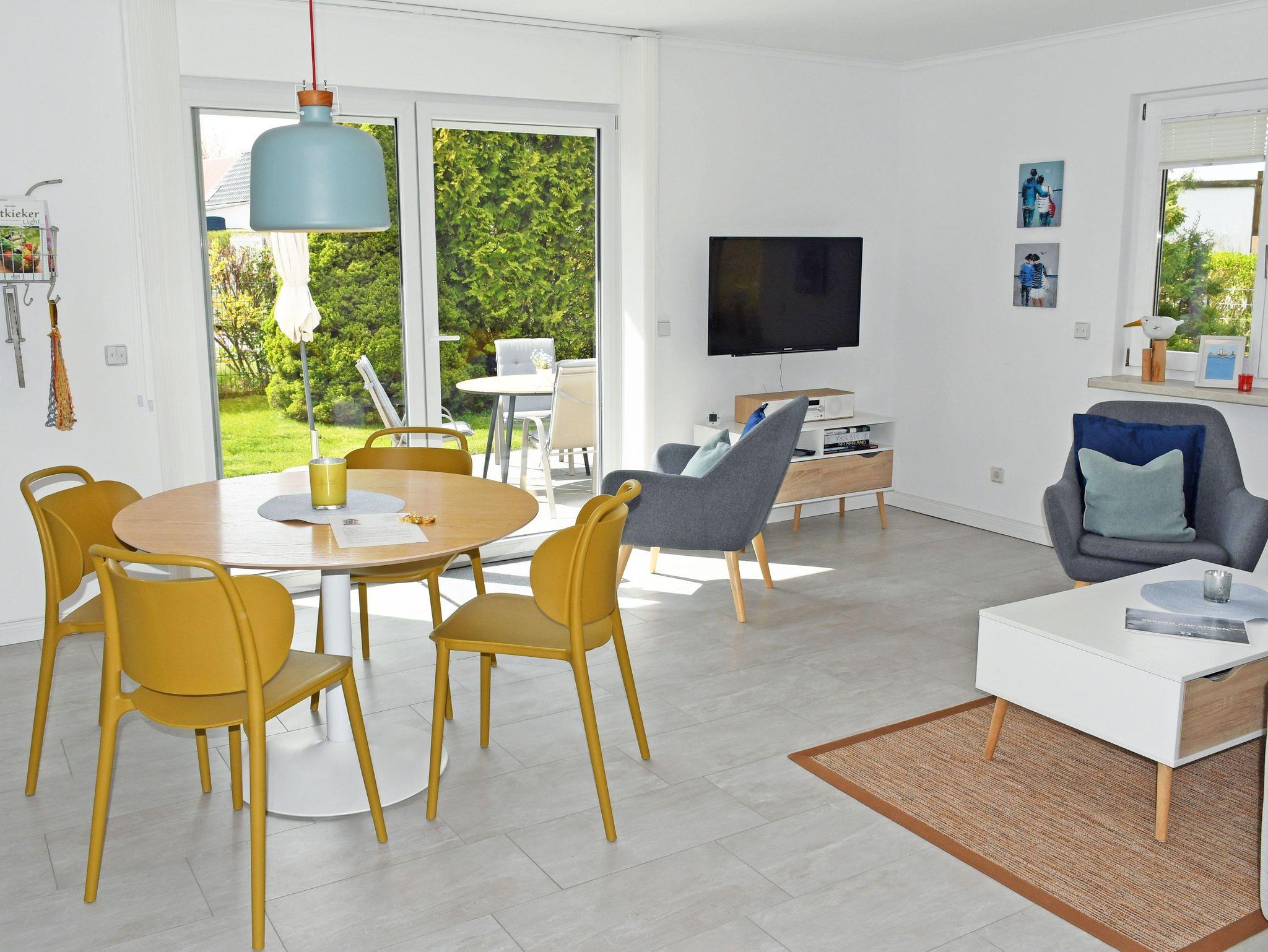 Modernes Ferienhaus mit Sauna und Terrasse im ruhigen Zentrum von Rügen, ideal für Erholung und Aktivitäten.
